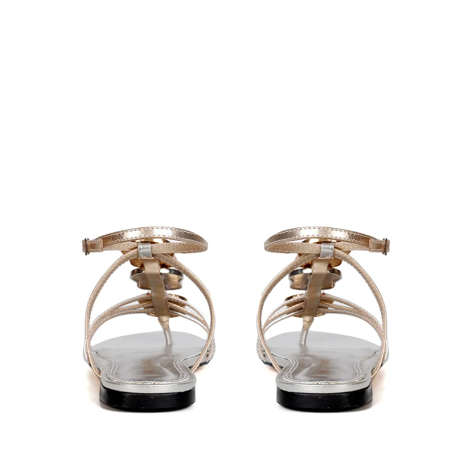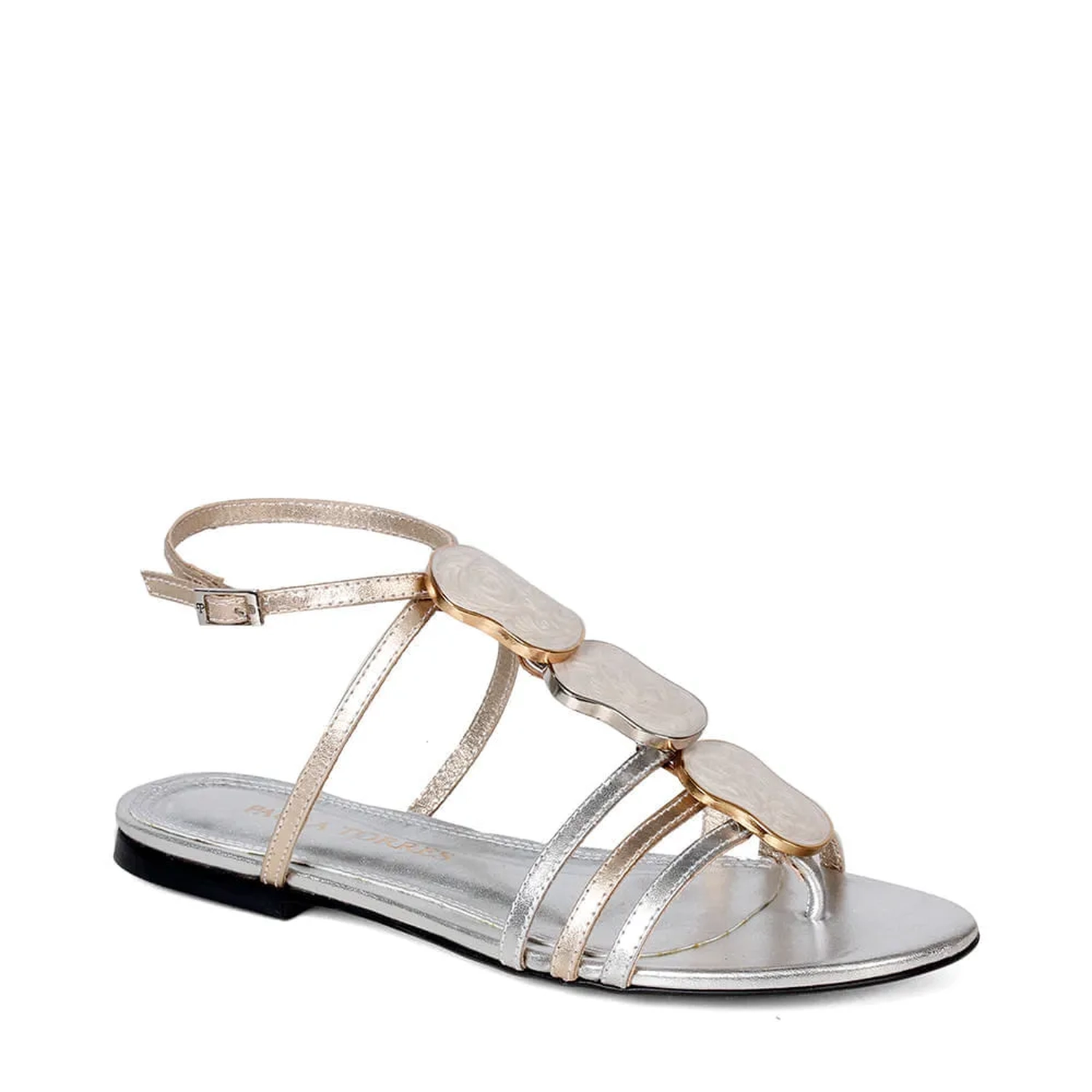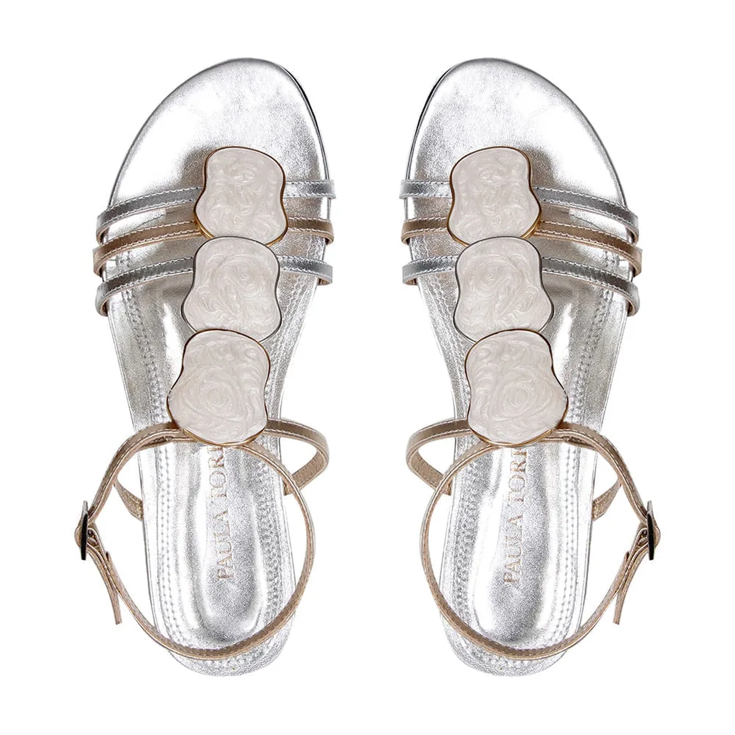 A Rasteira Alissa é uma peça deslumbrante e sofisticada, feita com napa de alta qualidade que garante conforto e durabilidade. O bico redondo da rasteira confere um toque de elegância clássica, tornando-a uma escolha versátil para diversas ocasiões. O cabedal da Rasteira Alissa é um verdadeiro espetáculo visual. Composto por tiras finas que intercalam entre as cores prata e saturno, o cabedal cria um efeito cativante e estiloso. O destaque dessa peça é a aplica de três deslumbrantes madrepérolas, que acrescenta um brilho suave e um toque de proteção ao calçado.