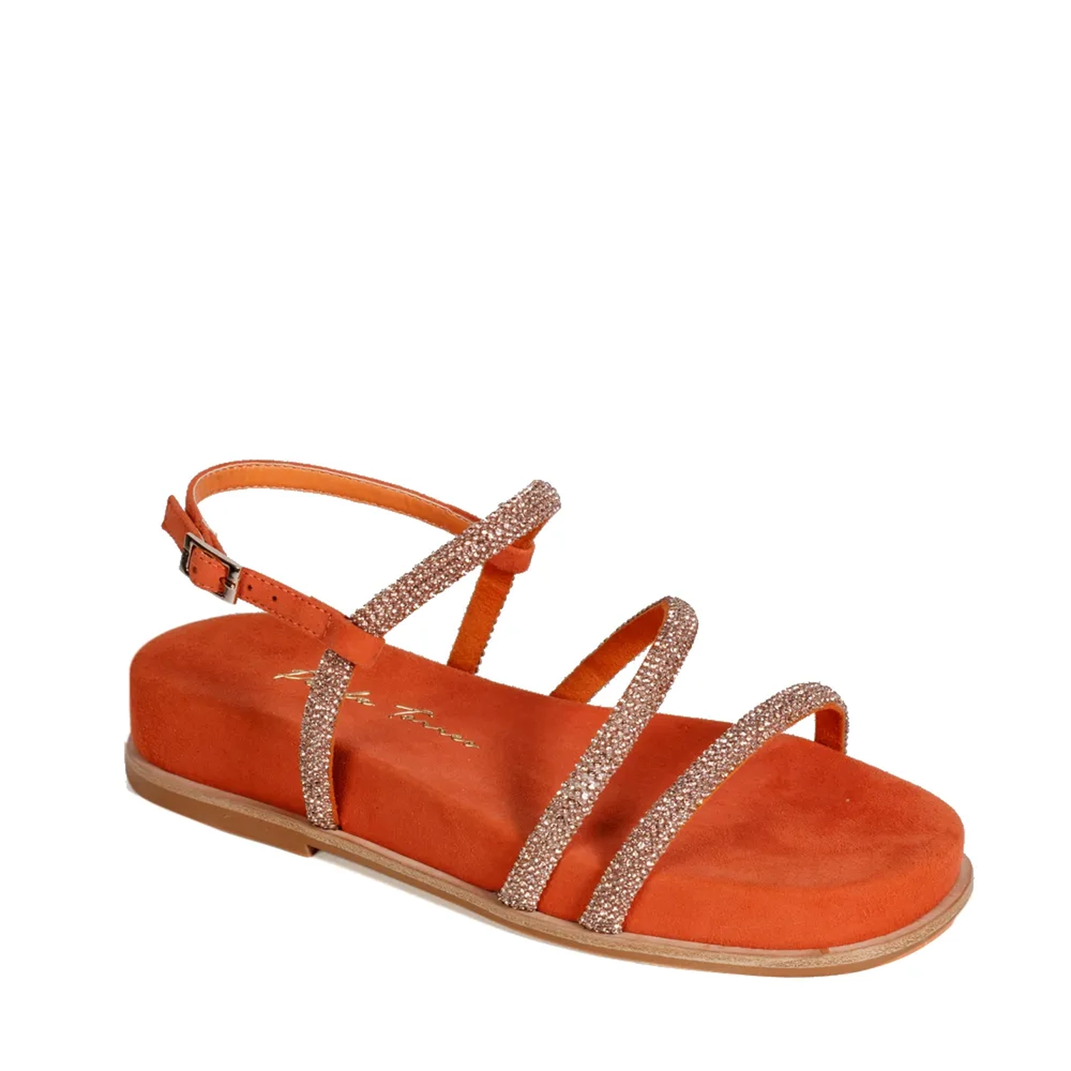 A Rasteira Annie é confeccionada em camurça. Modelagem em bico quadrado e de fácil calce. O diferencial deste modelo são as três tiras acolchoadas com cristais embutidos. Fechamento lateral por fivela. As texturas da camurça e dos critais criam um aspecto único Paula Torres, tornando o modelo confortável e sofisticado. Qualidade única Paula Torres, com muito glamor e praticidade.