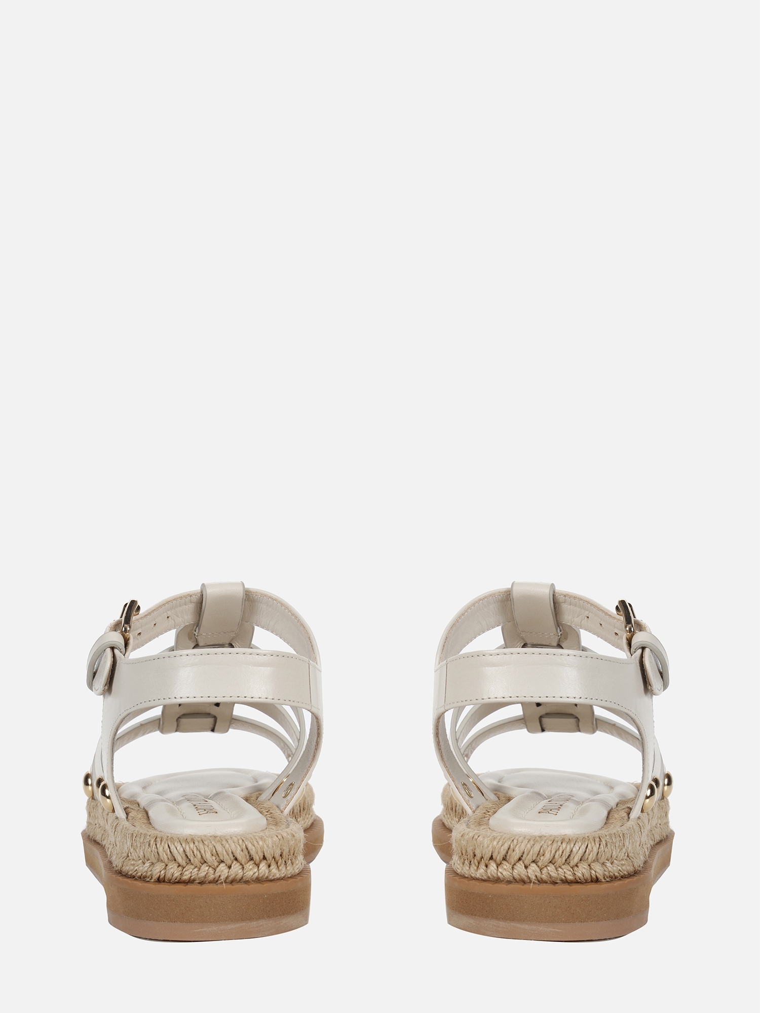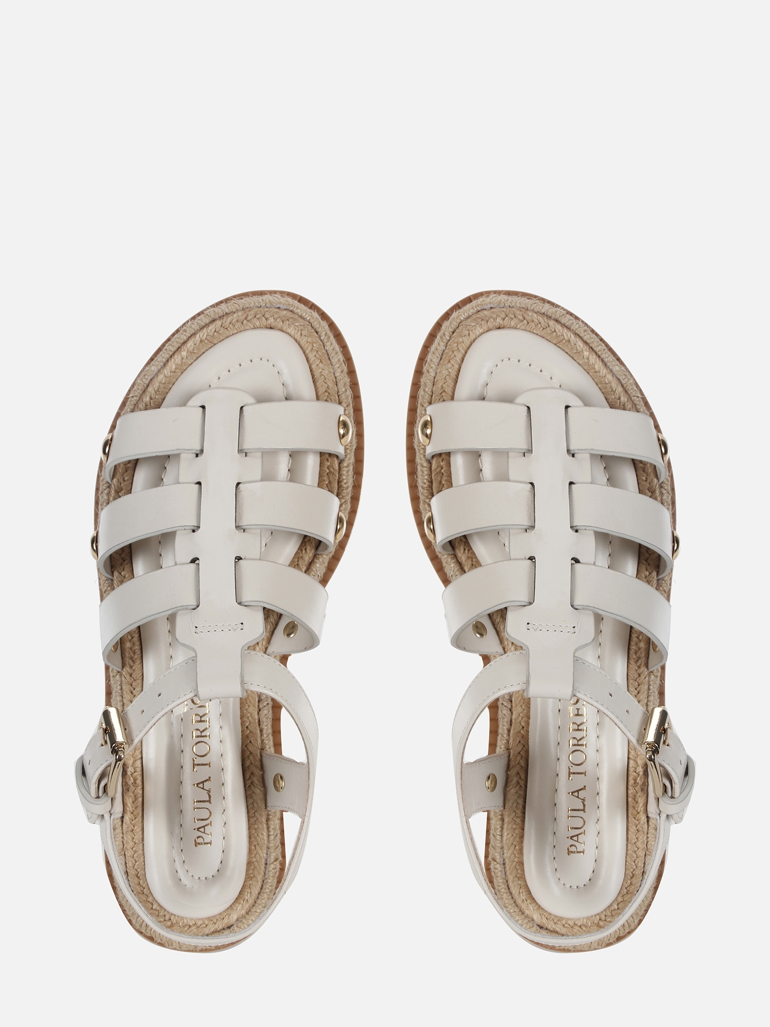 Essa rasteira em couro possui a estrutura revestida em cordas, enquanto a camada de EVA na base oferece um discreto ganho de altura, tornando o calçado ainda mais confortável para o dia a dia.