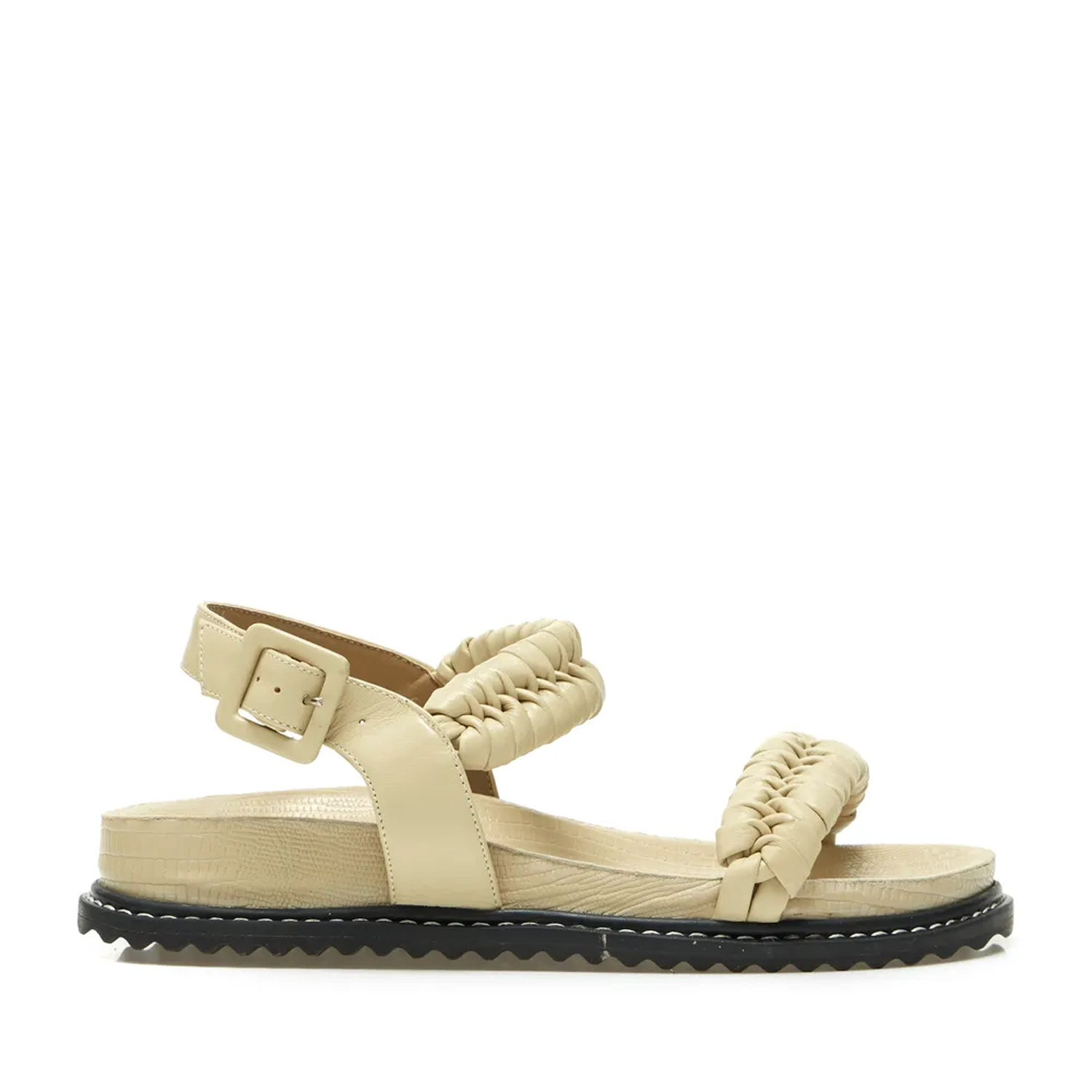 RASTEIRA CANNES VANILLA A rasteira Cannes é confeccionada em couro. Seguindo o DNA handmade e vanguardista que a marca carrega, o modelo apresenta o macramê como protagonista, técnica secular que figura como uma referência forte de moda. O trabalho totalmente artesanal ganha mais personalidade aplicado na tiras do cabedal conferindo o contraponto ao peso do solado tratorado. O foco do modelo está no conforto apresentado por meio de sua palmilha anatônica com acabamento em couro lezard e o solado flat de borracha com detalhe pespostado, seu fechamento é feito por fivela lateral forrada. A principal trend da estação chega a Winter Collection 21' Paula Torres cheia de informação de moda e com riqueza de detalhes.