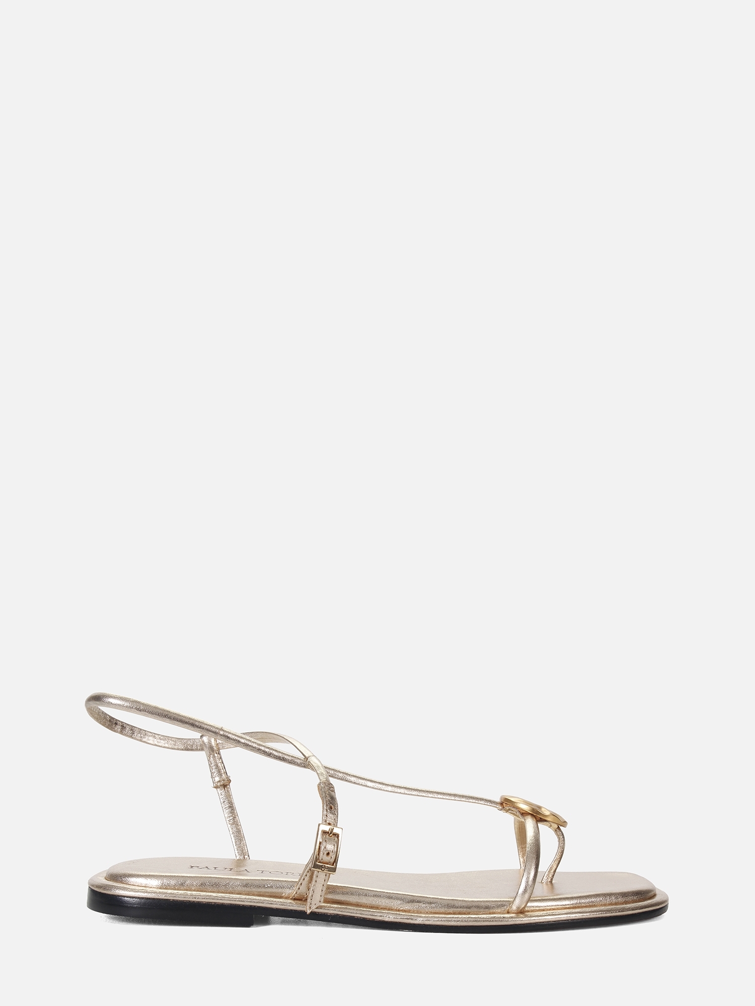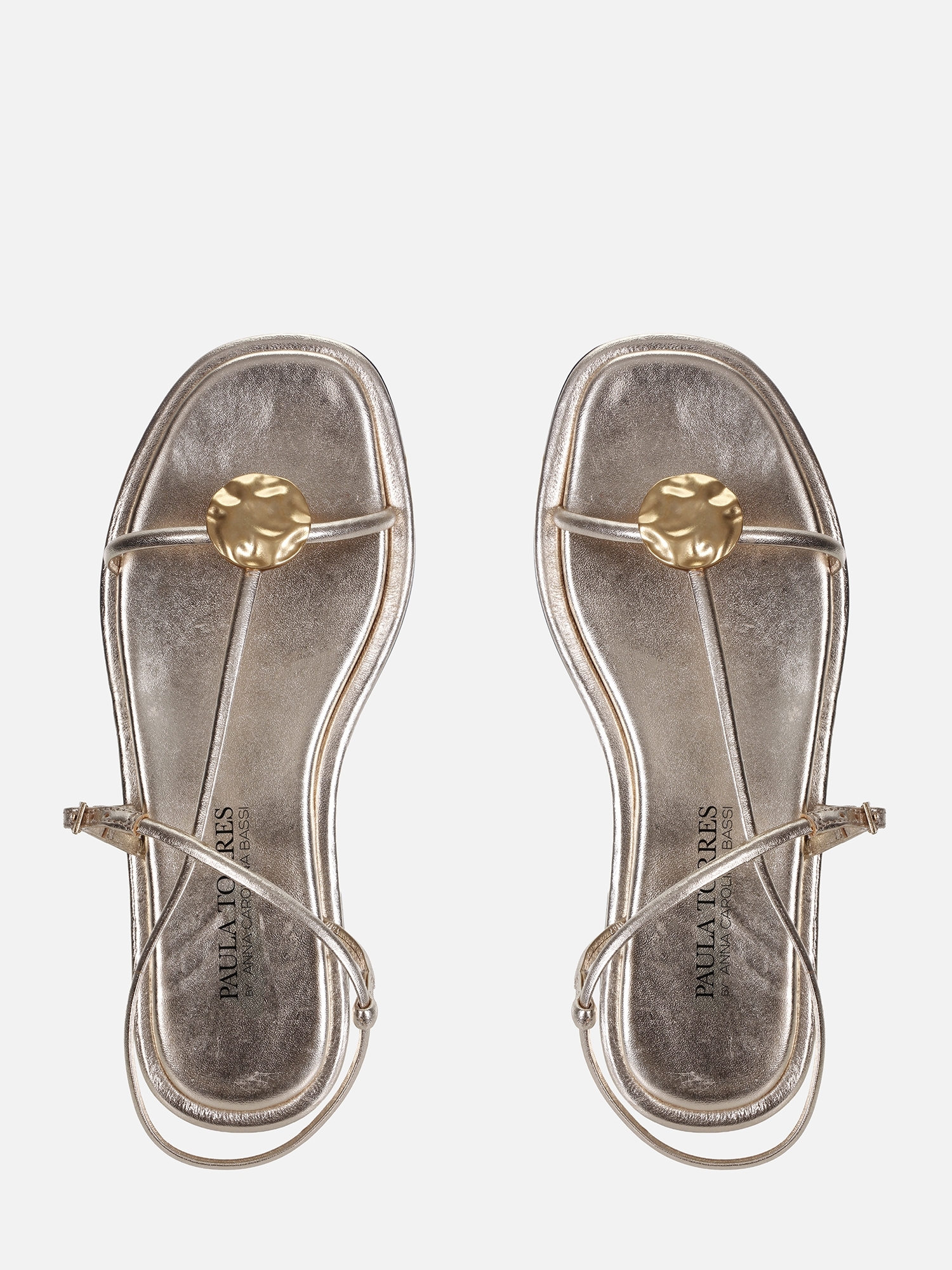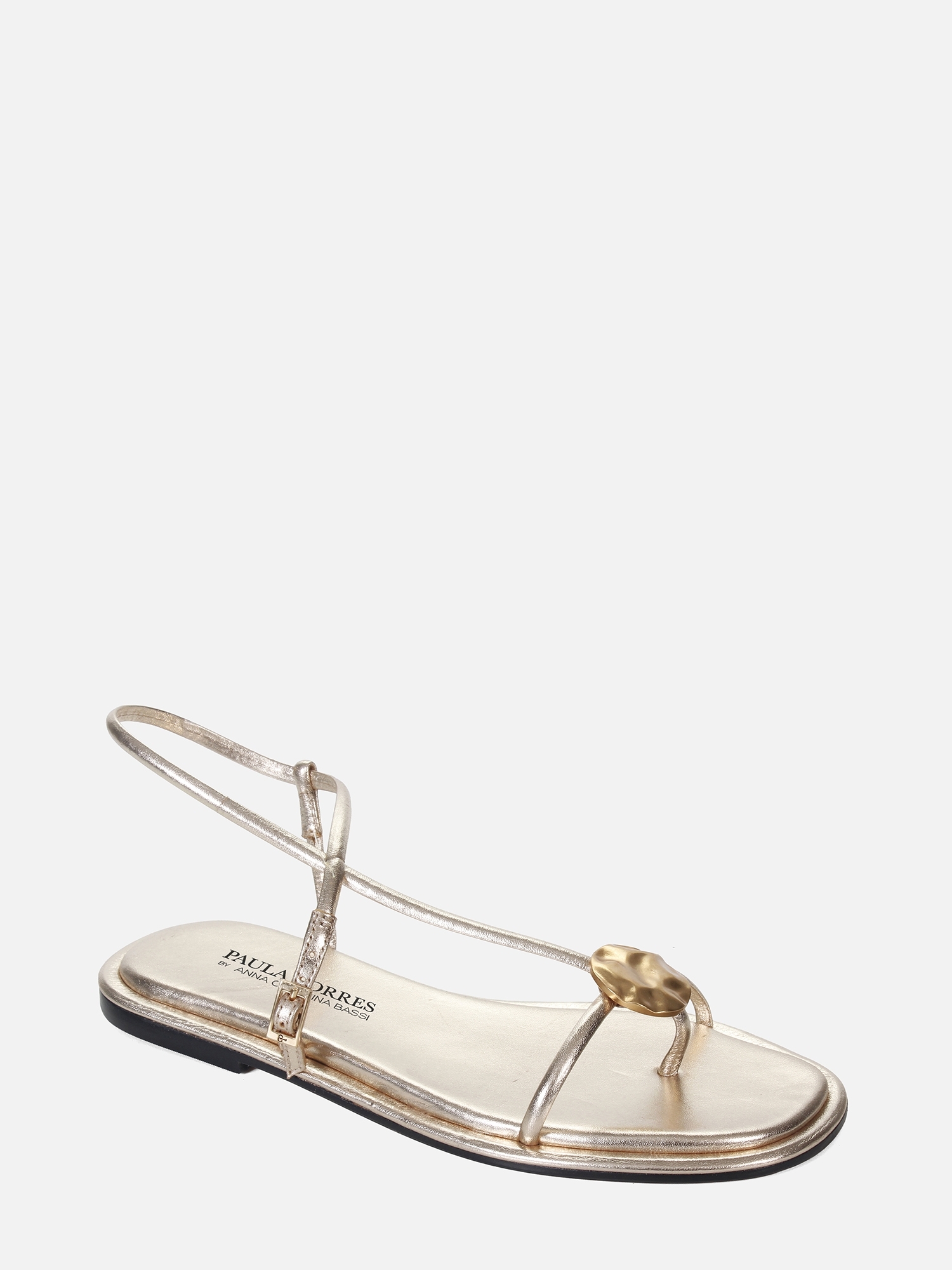 A Rasteira Carol Saturno é confeccionada em couro metalizado e apresenta um design minimalista com um toque de sofisticação. Seu principal diferencial é a aplicação central com acabamento orgânico, que adiciona modernidade ao visual. As tiras finas com fechamento ajustável garantem leveza, criando um modelo versátil para diversas composições.