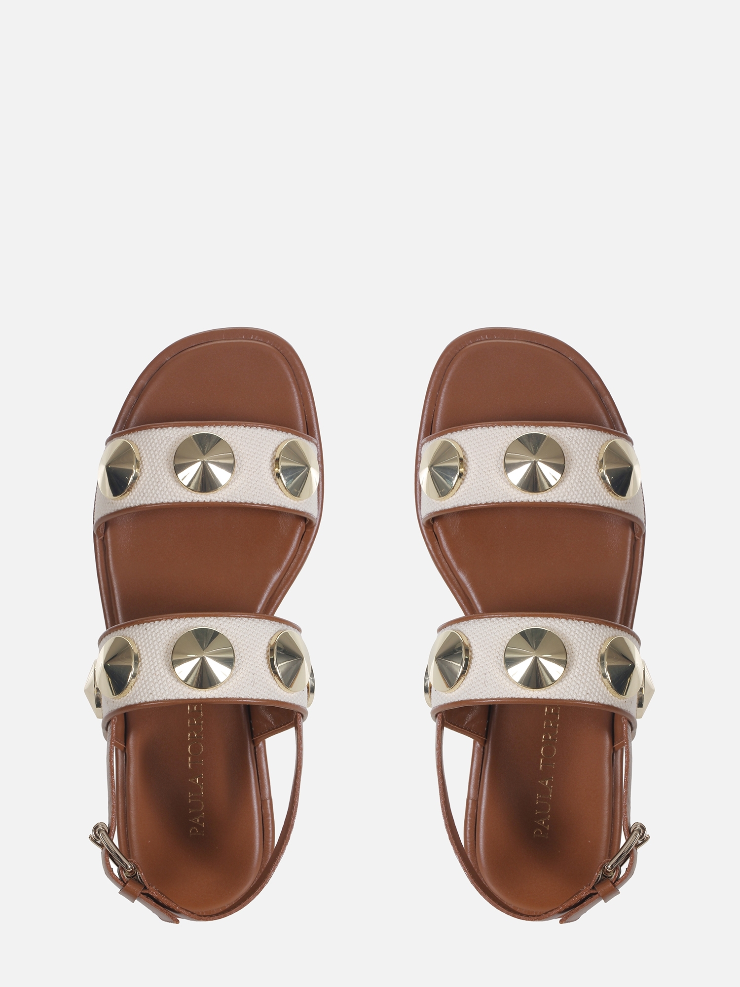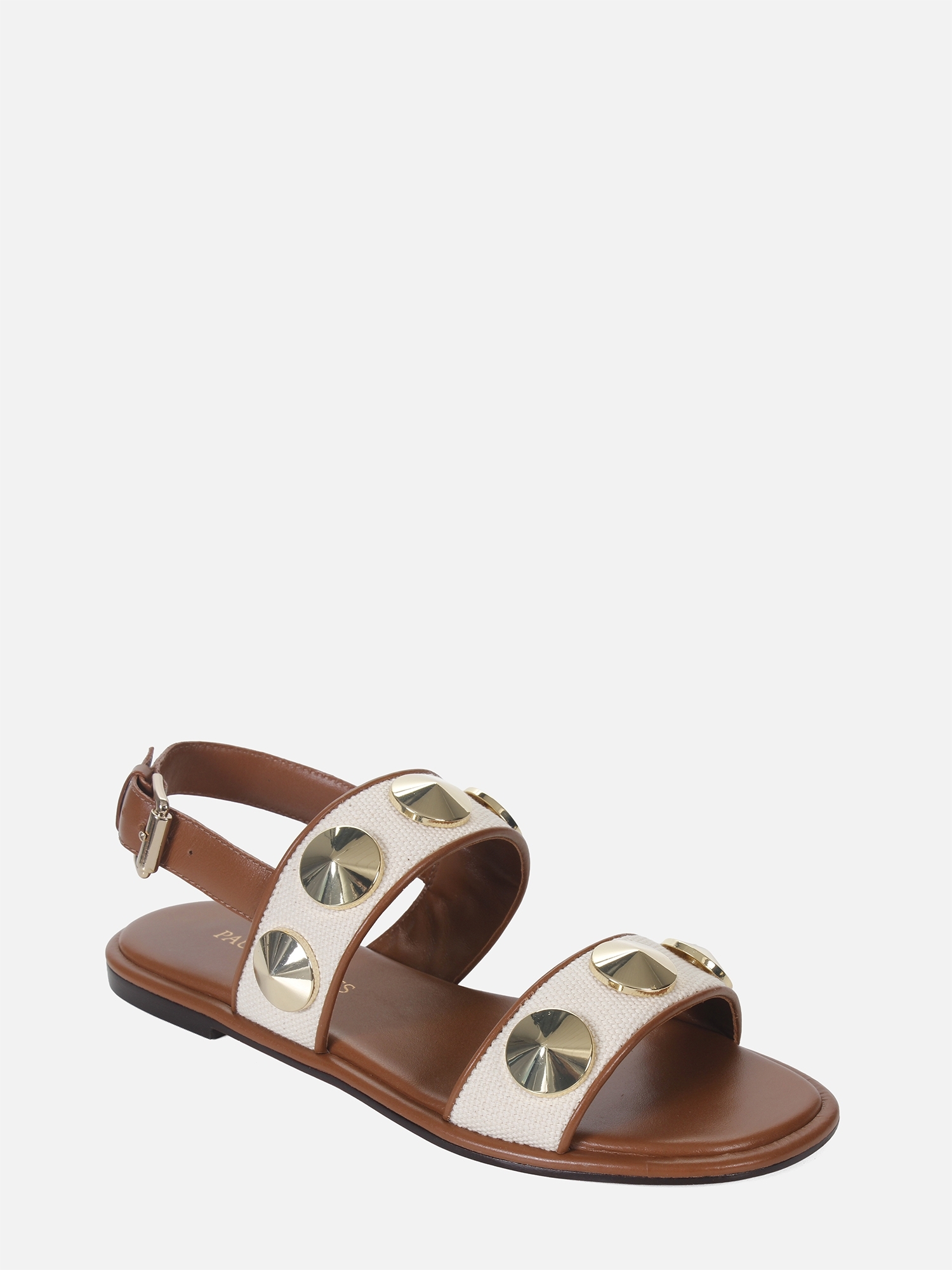 A Rasteira Cecília Apple feita em linho tem aplicações metálicas douradas que se destacam no design, adicionando personalidade e um toque sofisticado à peça. O fechamento ajustável por fivela no calcanhar garante um melhor encaixe aos pés, oferecendo mais segurança e conforto ao caminhar, sem abrir mão do estilo.