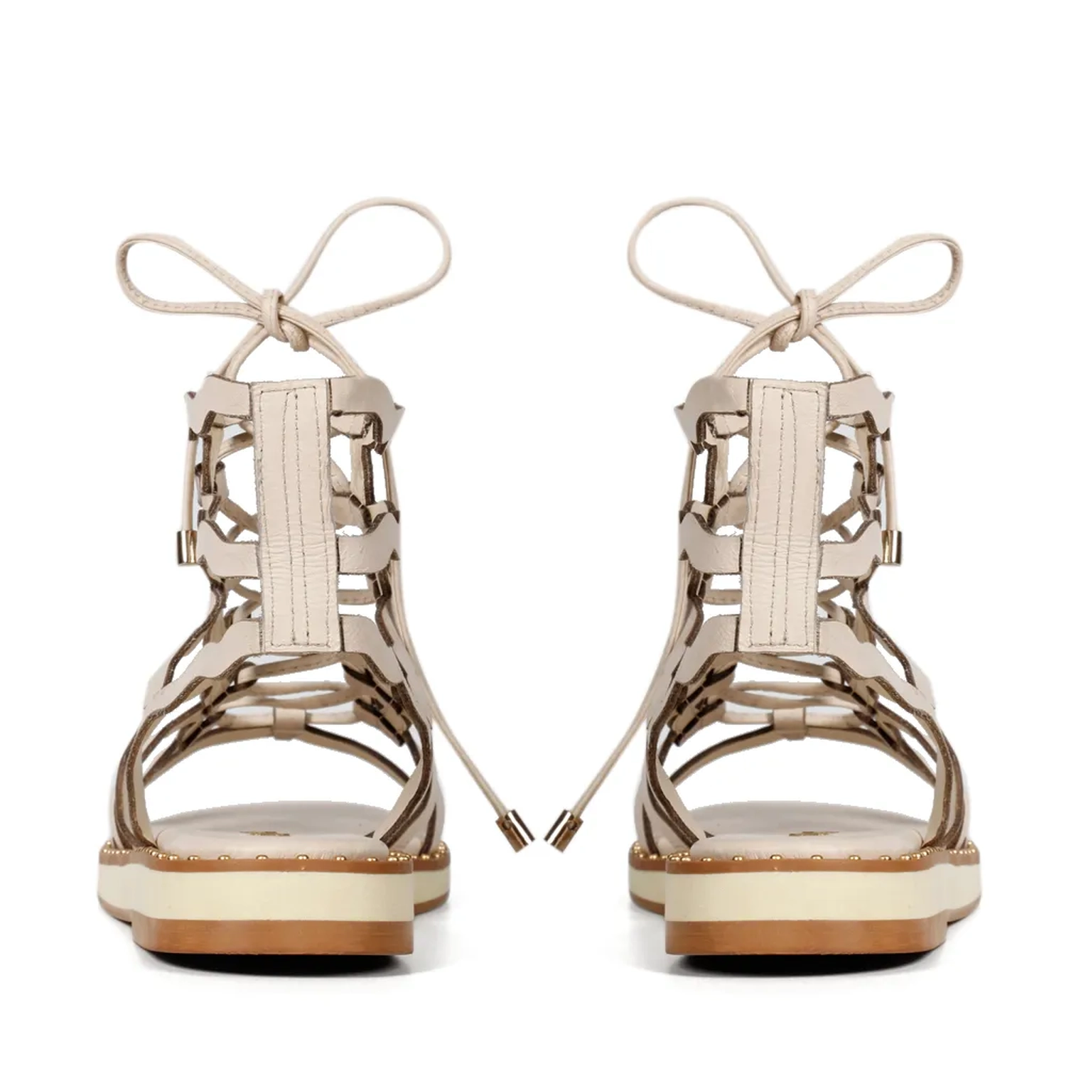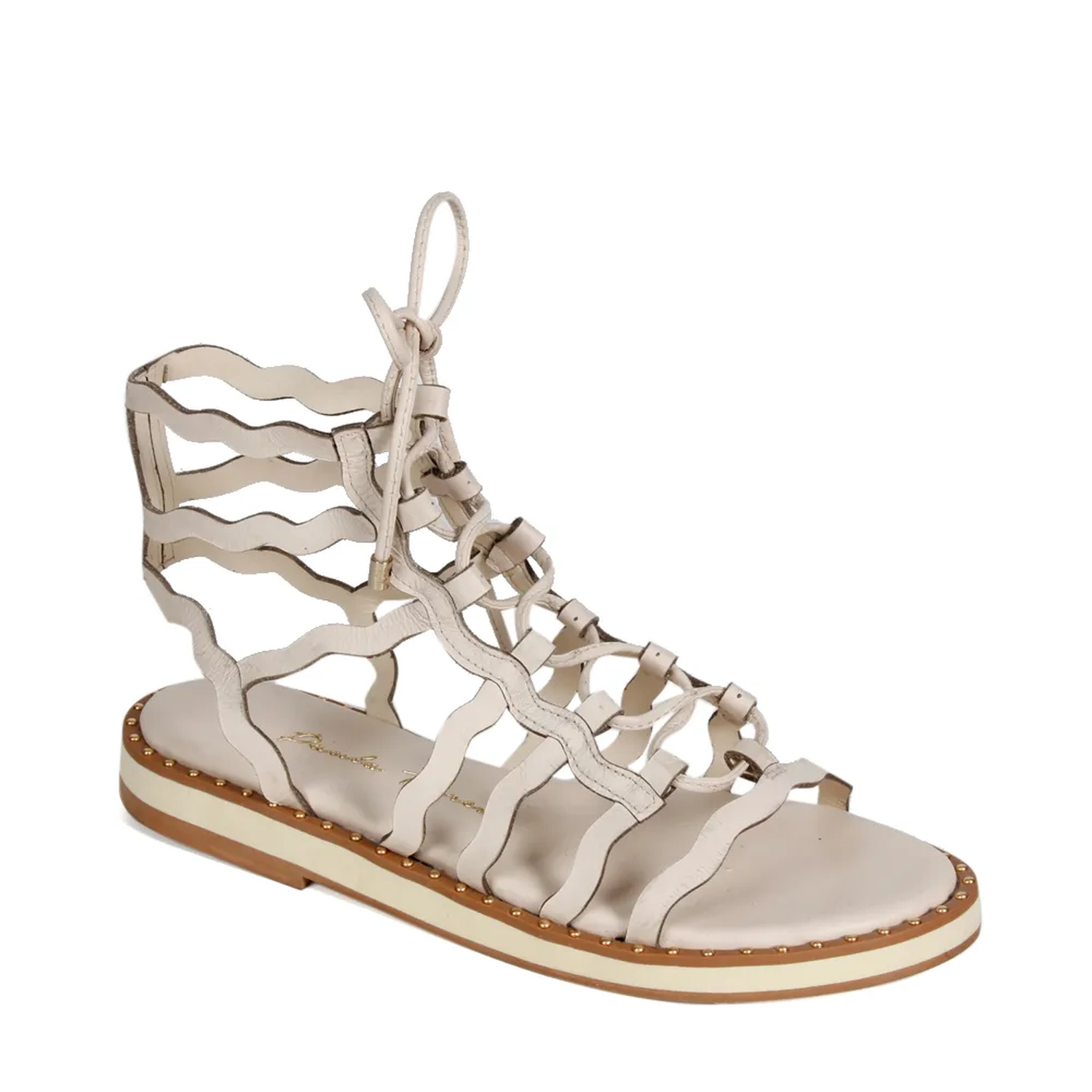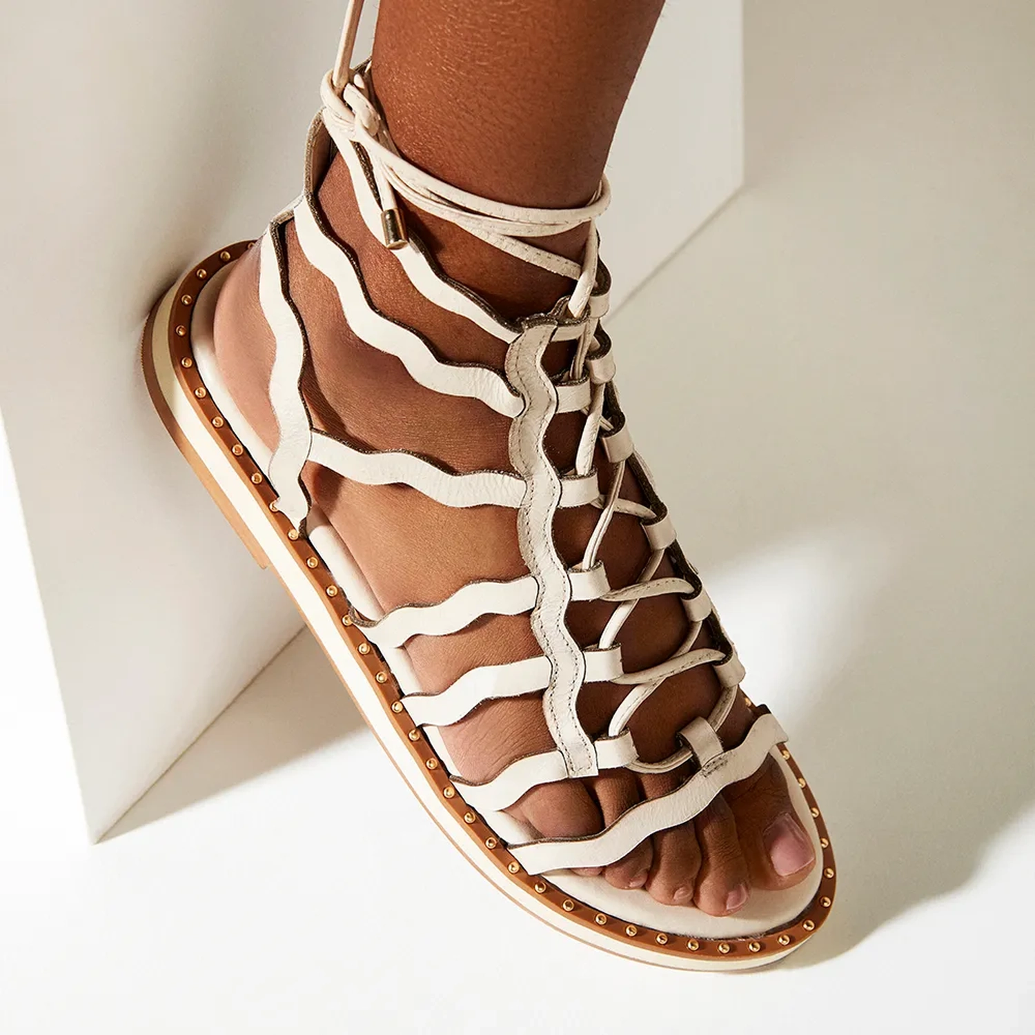 Repaginando as clássicas gladiadoras, a Rasteira Eloá veio para dar frescor ao Verão 22 Paula Torres. Produzida em couro, o modelo tem em suas laterais tiras finas onduladas, sendo finalizadas por amarração. Flatform com tachas metalizadas ao redor de toda palmilha. Uma peça moderna, com muito estilo.