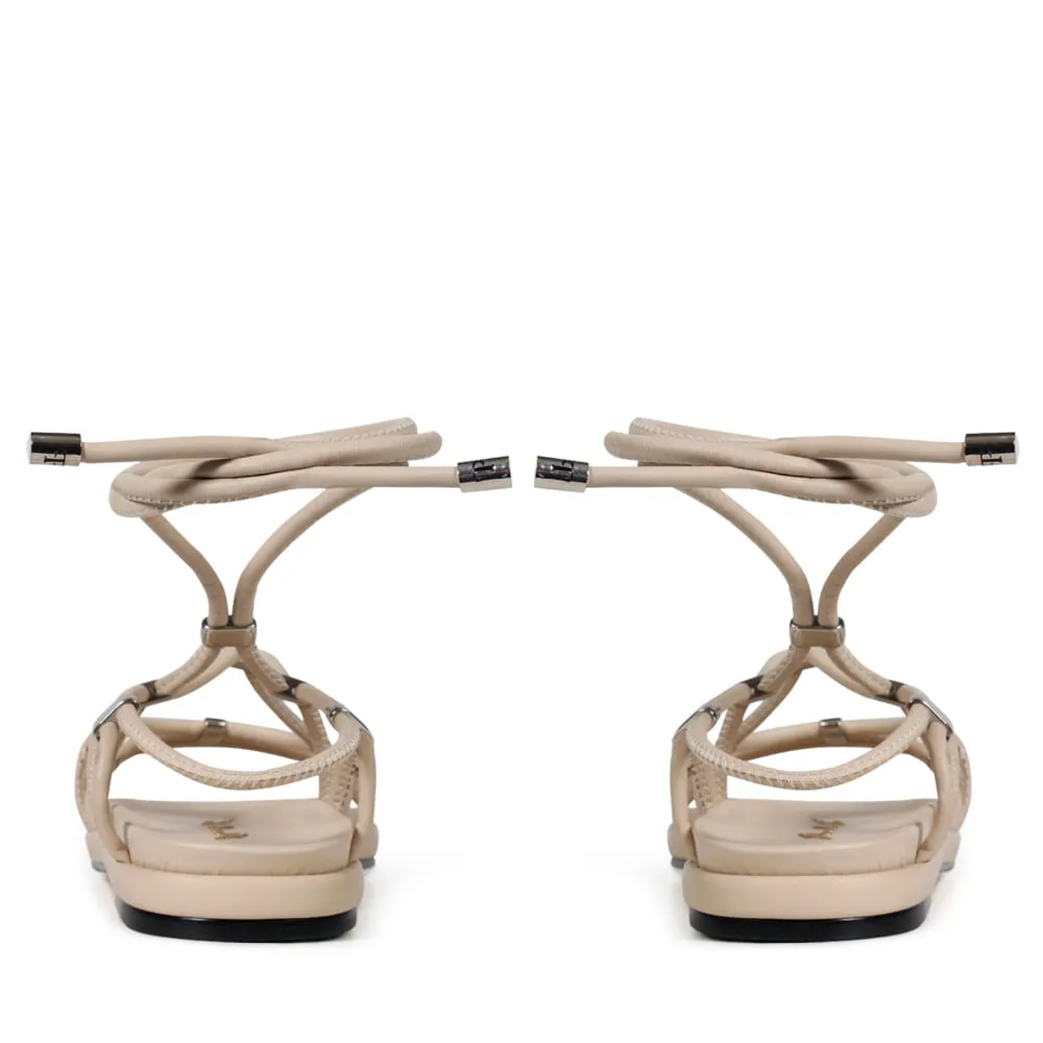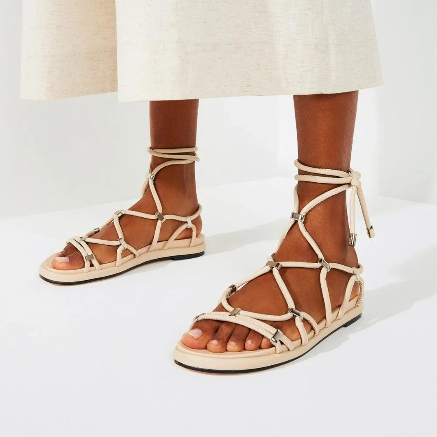 A Rasteira Havana é confeccionada em couro. De modelagem confortável conta com a palmilha anatômica, bico levemente arredondado e solado flat, dando maior sustentação e equilíbrio no calce. O cabedal formado por tiras finas de couro, que se unem por elos de metal deixam o modelo moderno e atual, e o seu fechamento é feito por amarração arremata a peça.