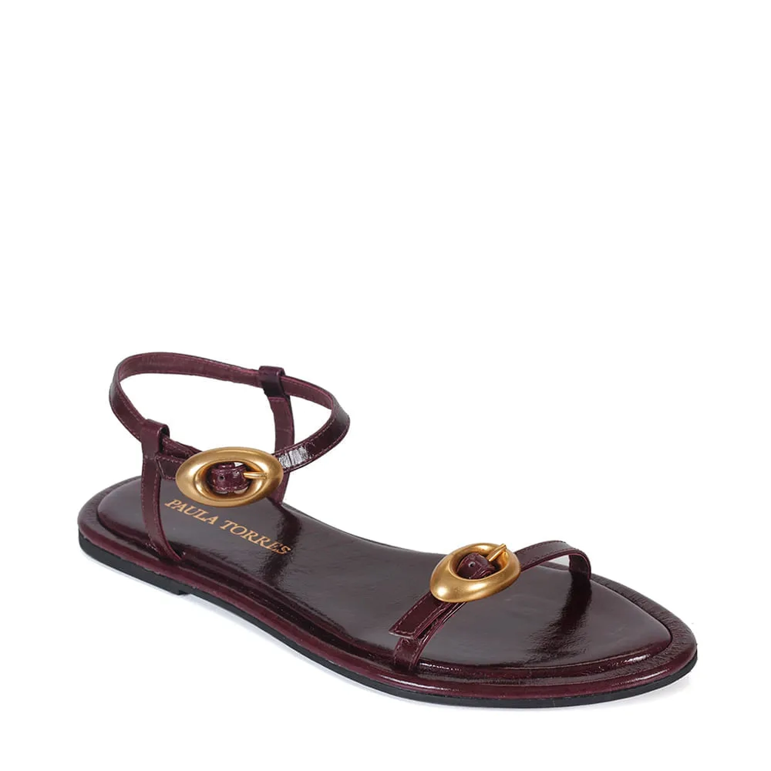 A Rasteira Julia é produzida em couro macio com um toque de brilho. O modelo flat possui bico amendoado e vira forrada em couro que contorna toda a palmilha, adicionando um acabamento refinado. O design conta com uma tira sobre os dedos e outra no tornozelo, ambas adornadas com uma elegante fivela dourada, que garantem ajuste e fechamento. O solado em borracha proporciona aderência e praticidade ao calçado.