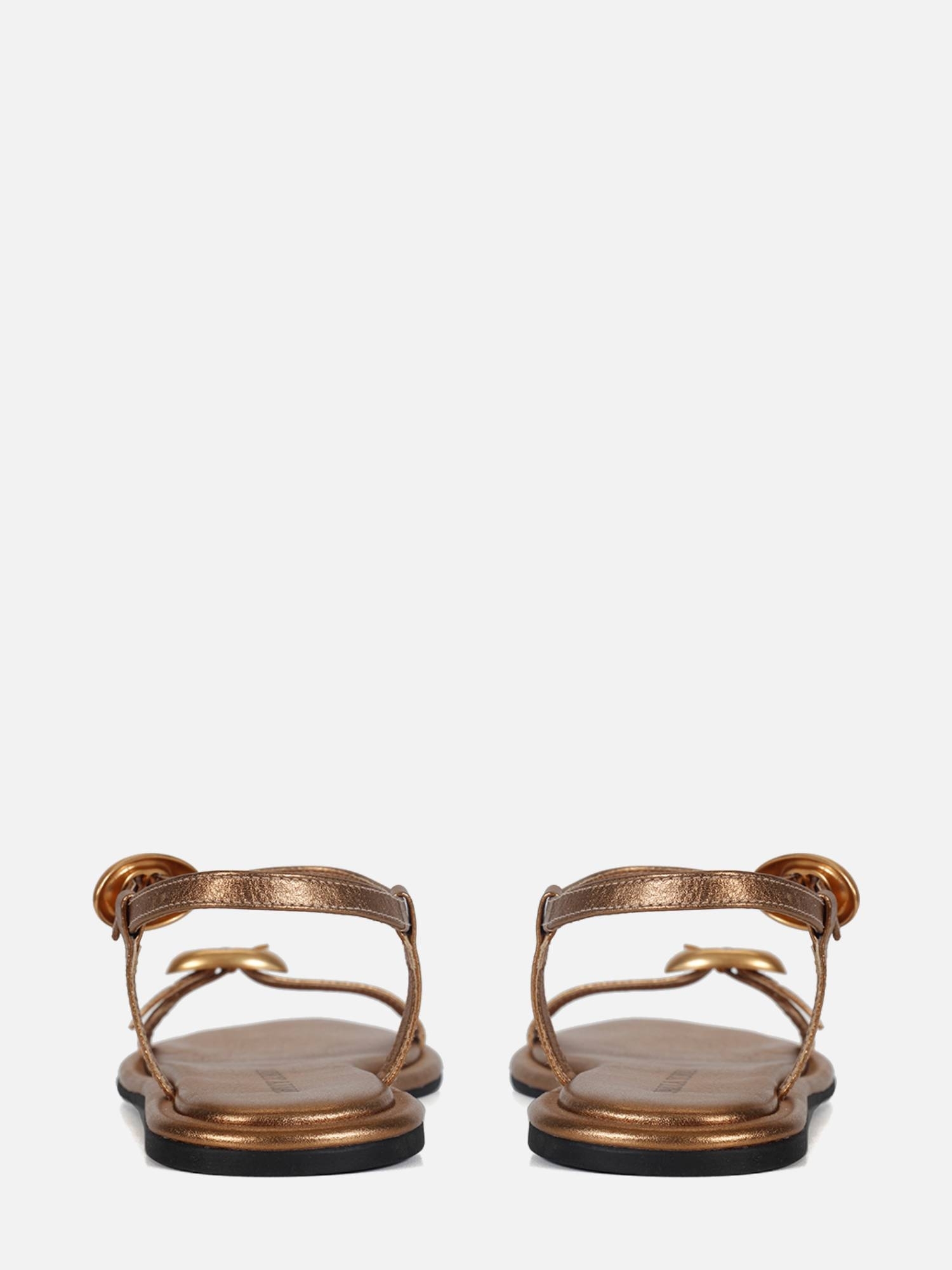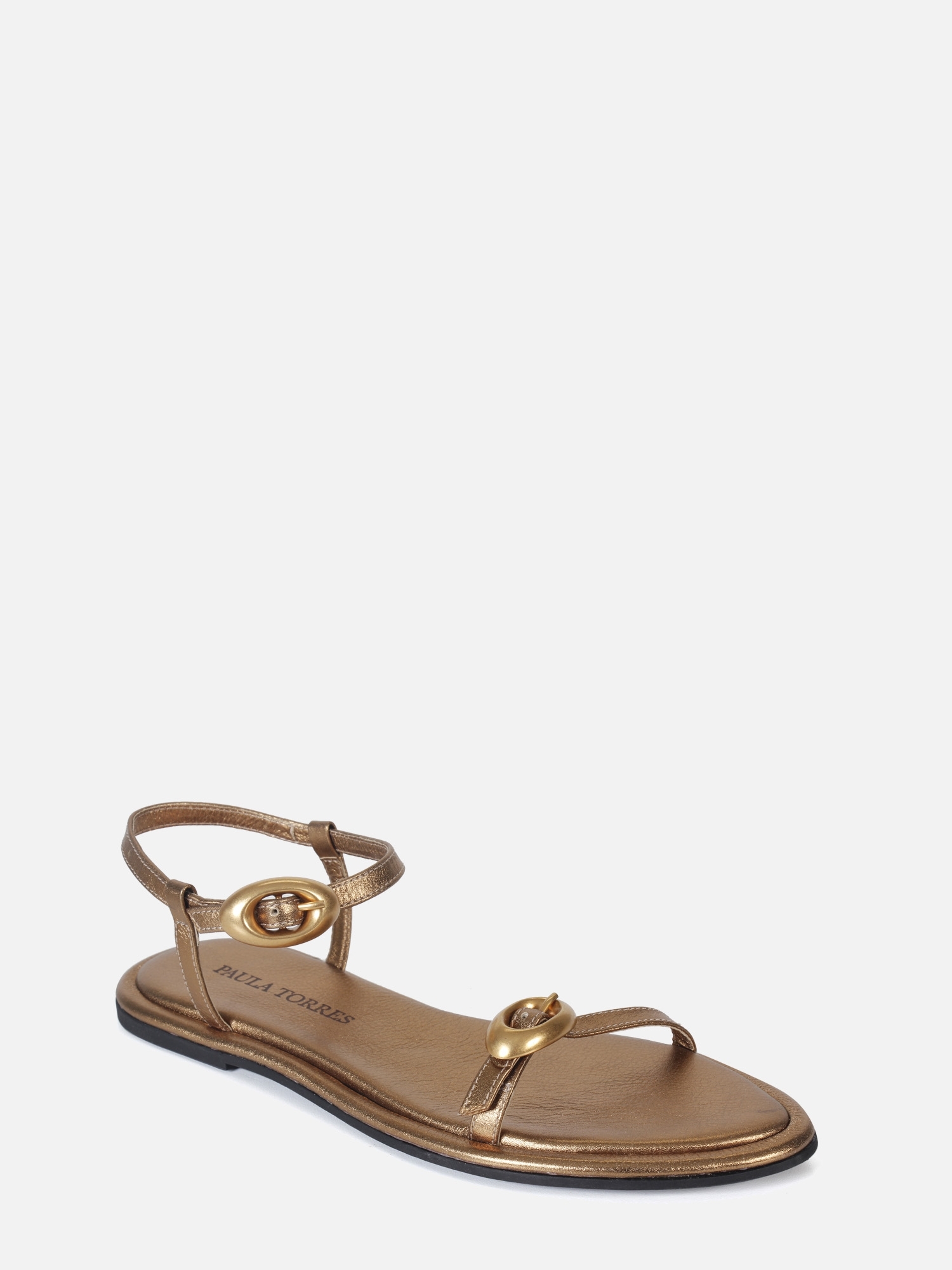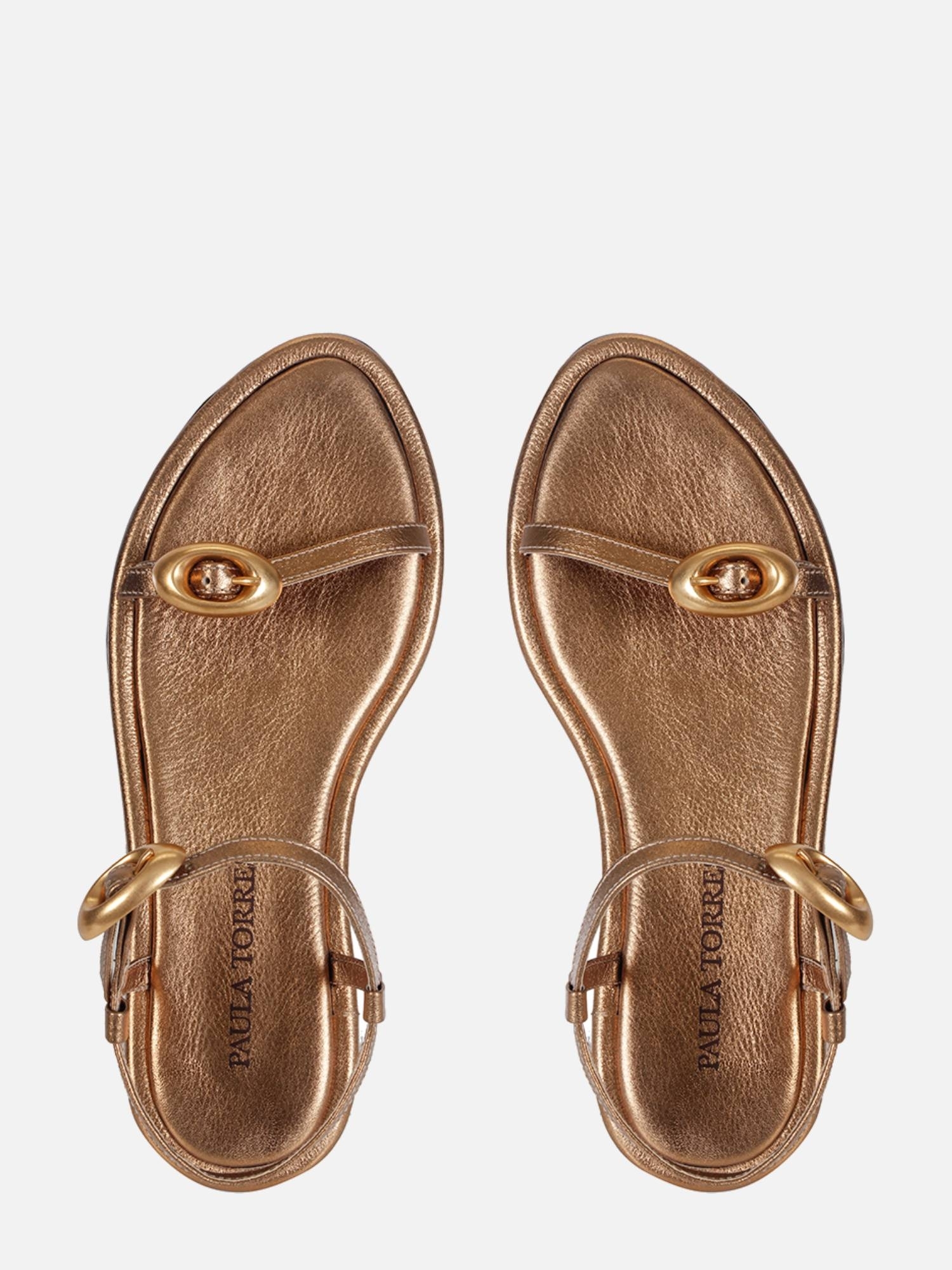 A Rasteira Julia é produzida em couro macio com um toque de brilho. O modelo flat possui bico amendoado e vira forrada em couro que contorna toda a palmilha, adicionando um acabamento refinado. O design conta com uma tira sobre os dedos e outra no tornozelo, ambas adornadas com uma elegante fivela dourada, que garantem ajuste e fechamento. O solado em borracha proporciona aderência e praticidade ao calçado.