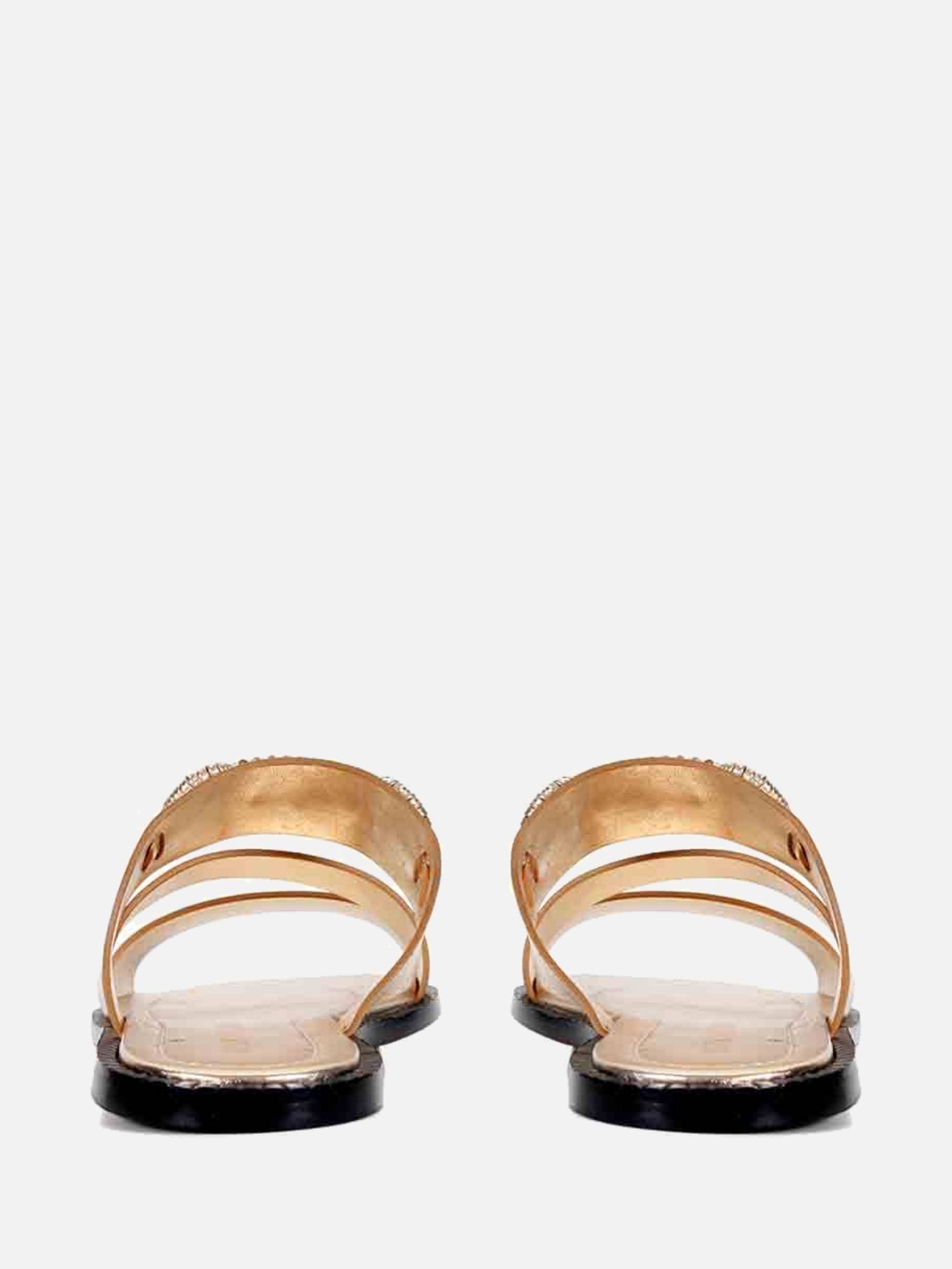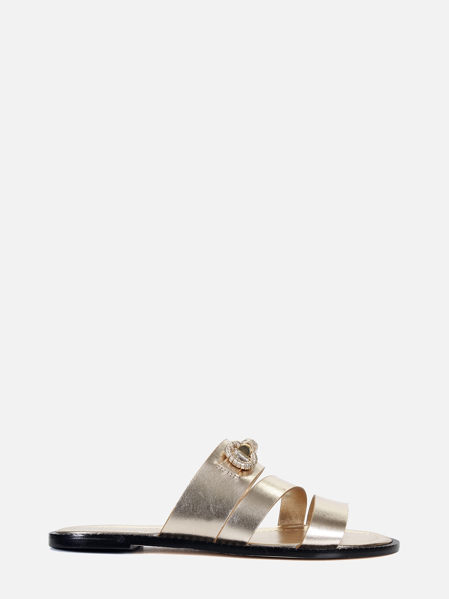 A Rasteira Kiara é produzida em couro metalizado de alta qualidade. Seu design conta com tiras largas que sobre os dedos e o peito do pé, além de uma tira mais estreita posicionada na diagonal. O ponto focal do modelo é o bridão em metal revestido de forma manual em couro aplicado sobre a tira superior. O bridão em metal, é revestido manualmente em couro, aplicado sobre a tira superior. A palmilha é acolchoada com costura, enquanto a vira é rajada e o solado é feito de couro, garantindo maior conforto e durabilidade.