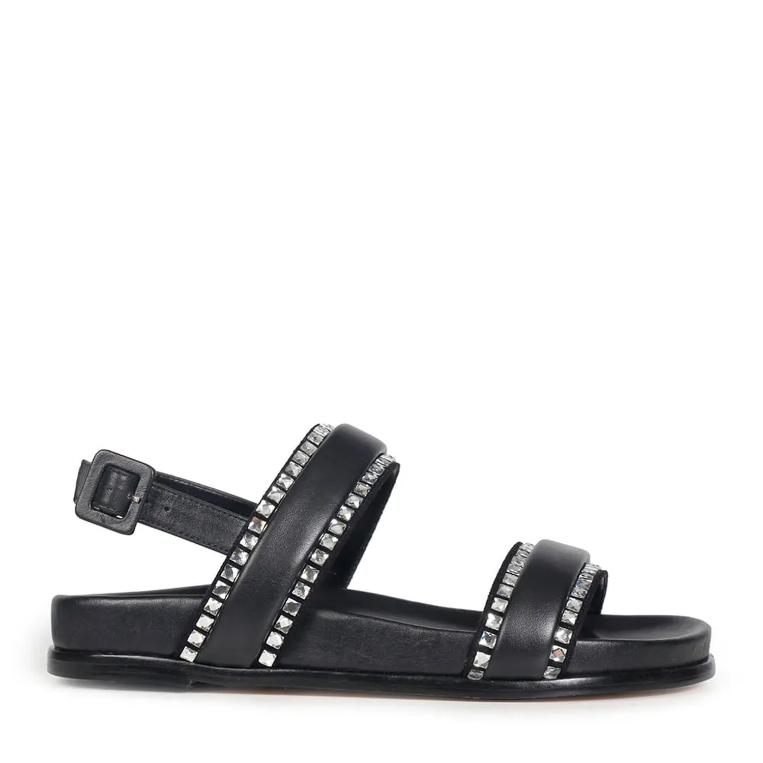 A Rasteira Lana é confeccionada em couro. Modelagem que traz muito conforto e segurança ao calce, através da palmilha anatômica e fechamento ajustável por fivela. O diferencial da peça são os cristais embutidos nas extremidades das tiras que compõem o cabedal, conferindo glamour e estilo.