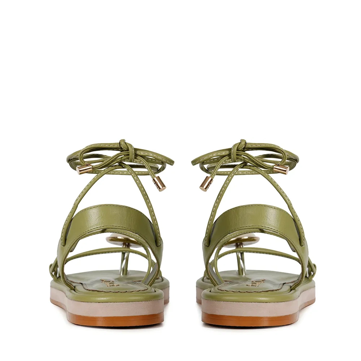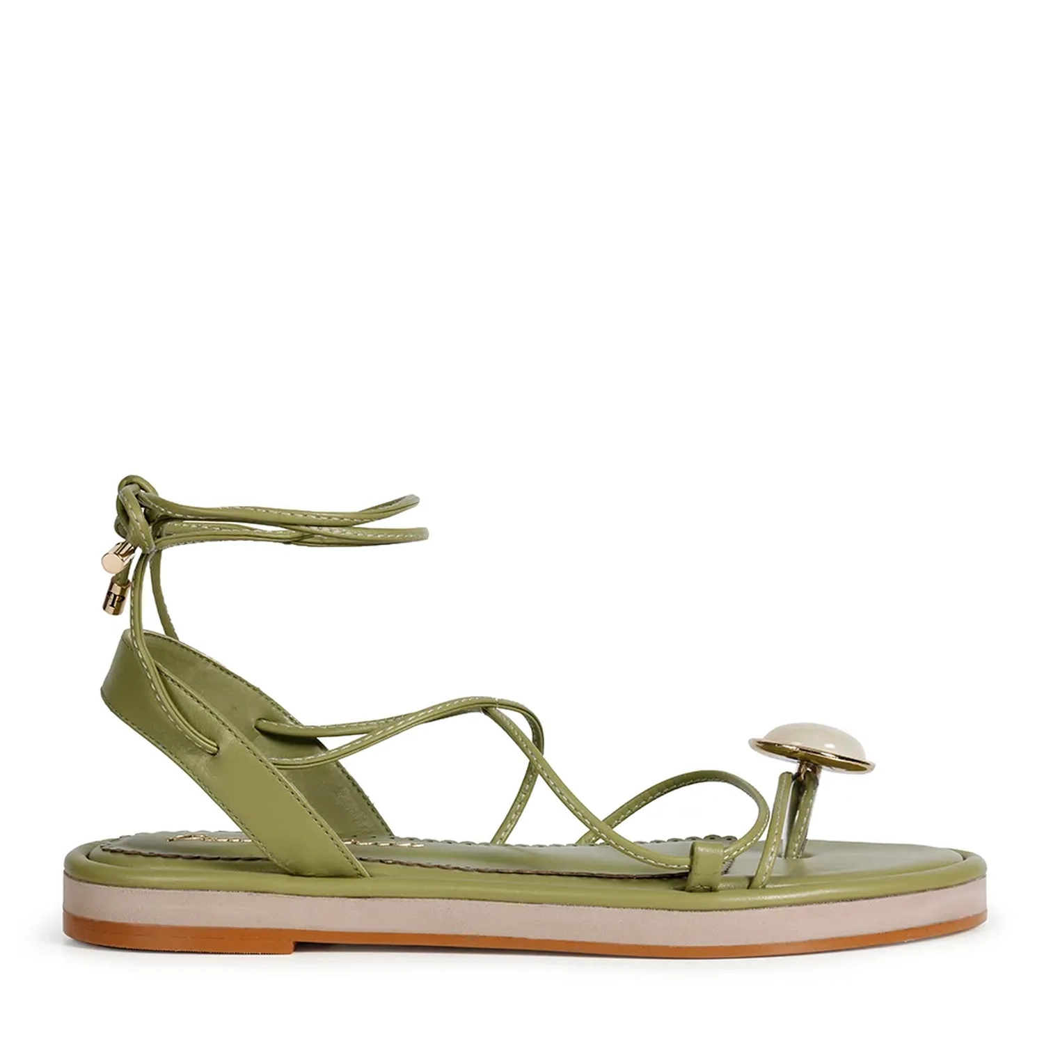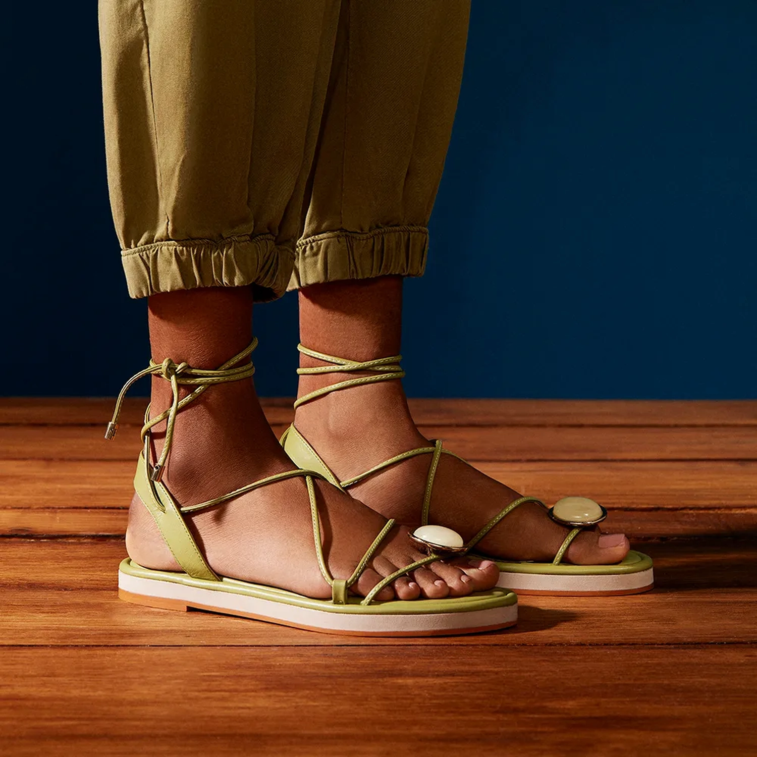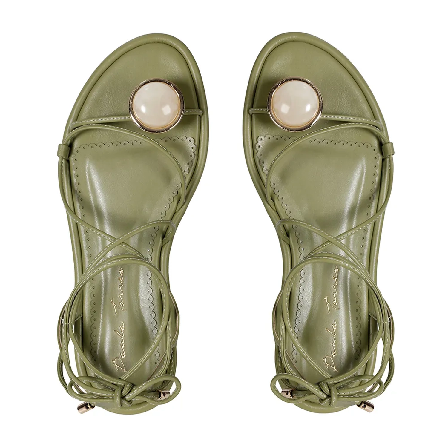 A Rasteira Lara é confeccionada em couro. O modelo possui bico arredondado que combina com o destaque da peça: aplicação de pedra em formato circular na parte da frente do cabedal. A amarração é feita por tiras em couro, finalizadas com ponteiras de metal. O material e a aplicação tornam o modelo super confortável, elegante. Totalmente Verão 22, com qualidade Paula Torres!