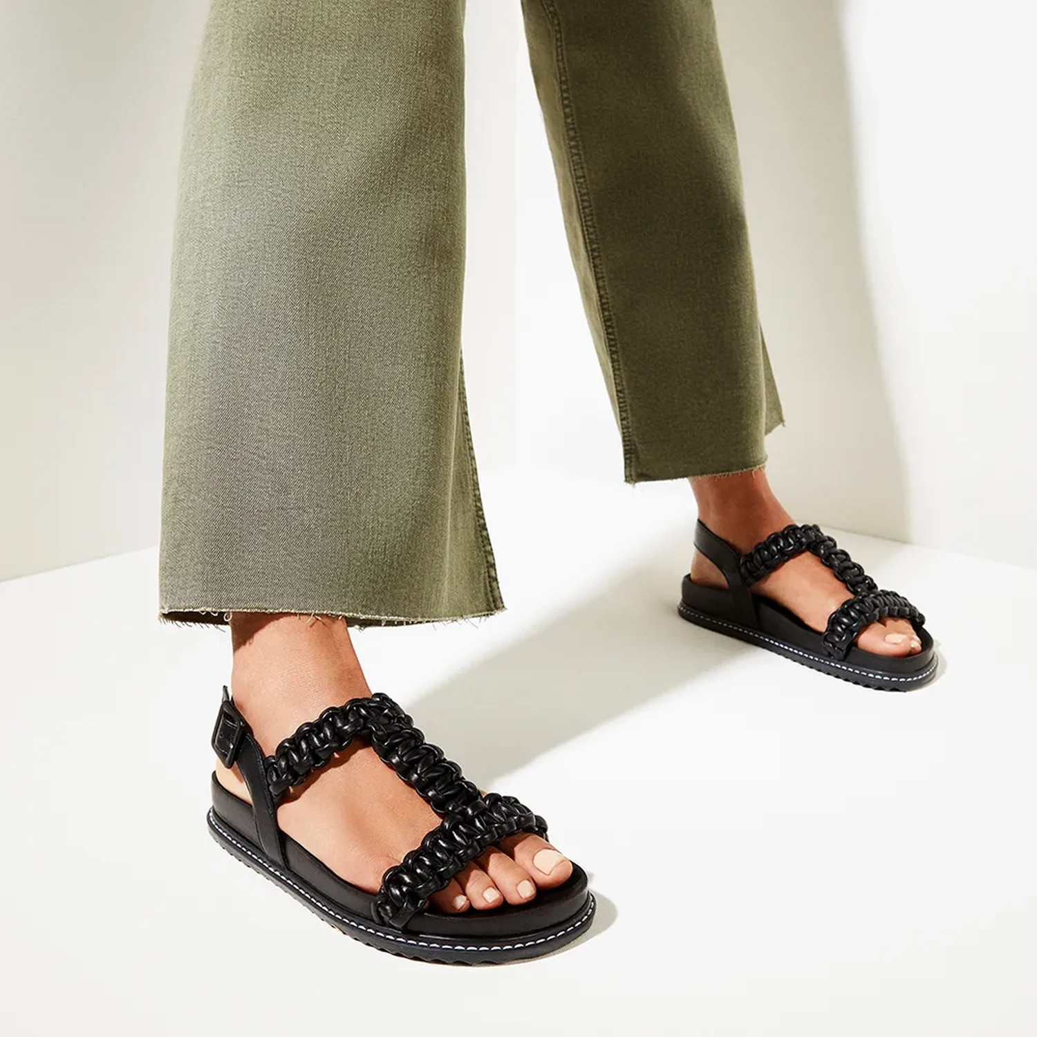Trazendo mais um vez o DNA handmade Paula Torres, A Rasteira Lira carrega o macramê como protagonista. O modelo em couro, é totalmente focado no conforto, é produzida com palmilha anatômica forrada em couro e o solado flat em borracha com vira pespontada. Fechamento feito por fivela lateral forrada. Um modelo artesanal que traduz a essência e propósito da marca.