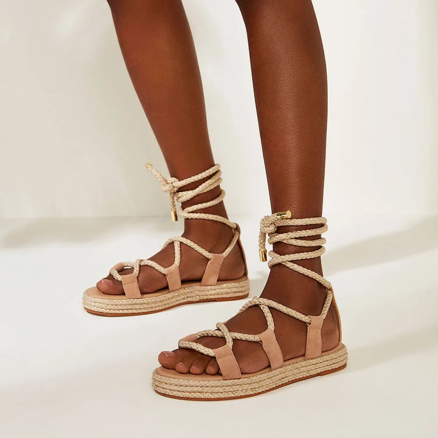 A Rasteira Liz é confeccionada em camurça. Modelagem em bico fino e solado de borracha. A plataforma é revestida em corda e a palmilha em couro. Cabedal em tiras grossas de camurça nas laterais e entrelassamento das cordas que se cruzam sobre o peito do pé. Fechamento por amarração das cordas, finalizadas com pingentes metalizados nas pontas. Confortável e totalmente Verão 22. Aposte neste modelo exclusivo Paula Torres!