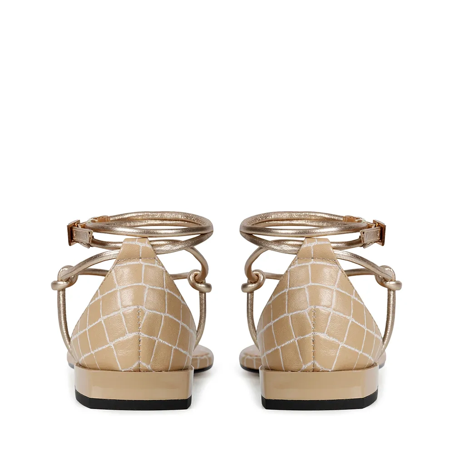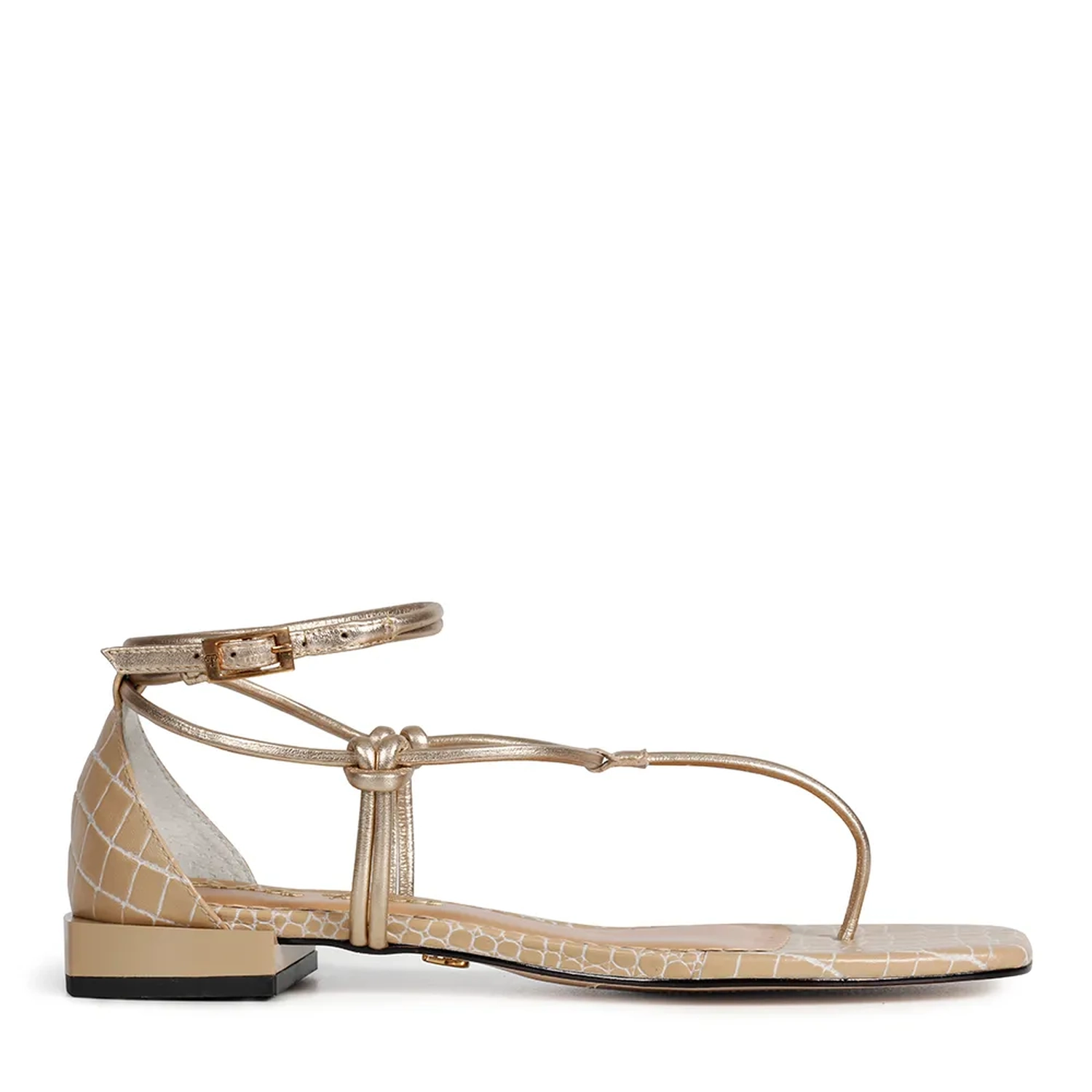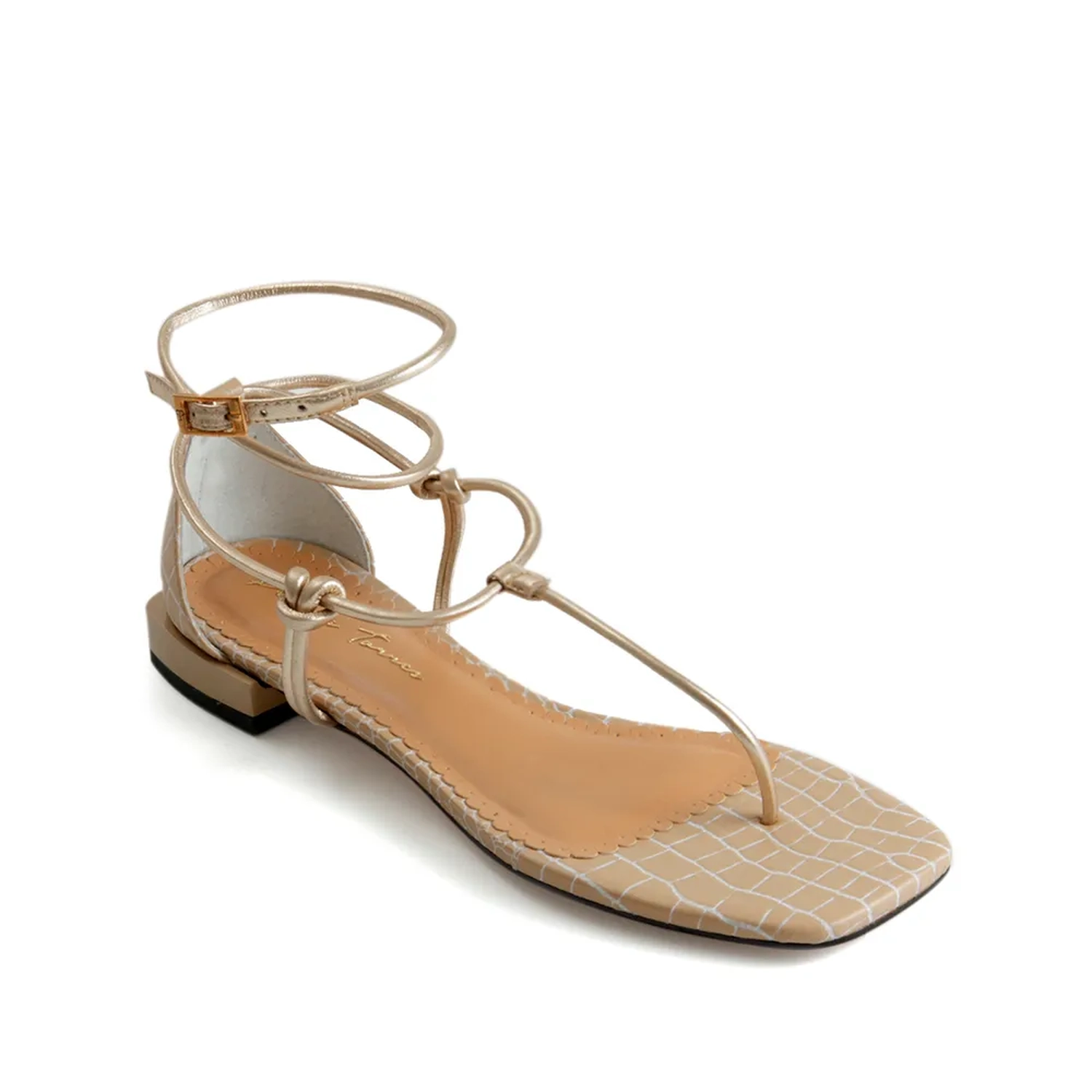 A Rasteira Mia é confeccionada em couro. Modelagem em bico e salto quadrado, que combinam com a estampa mini lezard da palmilha. Além dos detalhes quadrados, a calcanheira e a tira enrolada no tornozelo, tornam o modelo super charmoso. O cabedal é formado por tiras finas de couro, unidas por nós, ressaltando o trabalho handmade da marca. Fechamento por fivela no tornozelo. Modelo exclusivo Paula Torres, aposte para este Verão!