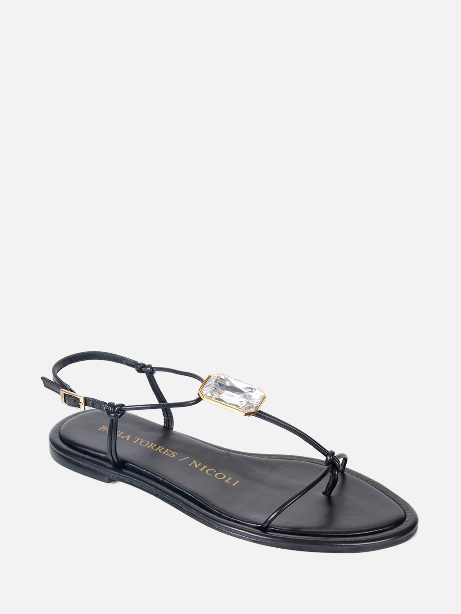 Em colaboração com a marca de calçados Nicoli, apresentamos a Rasteira Nicoli. O modelo é produzido em couro e conta com duas tiras: uma sobre os dedos e outra que surge entre o dedão, proporcionando firmeza e conforto. Sobre a tira, aplicação de um deslumbrante Cristal Swarovski, que acrescentam um toque de luxo e elegância. O fechamento com fivela lateral facilita o ajuste, enquanto o bico amendoado e o solado em couro oferecem conforto superior e um acabamento requintado.