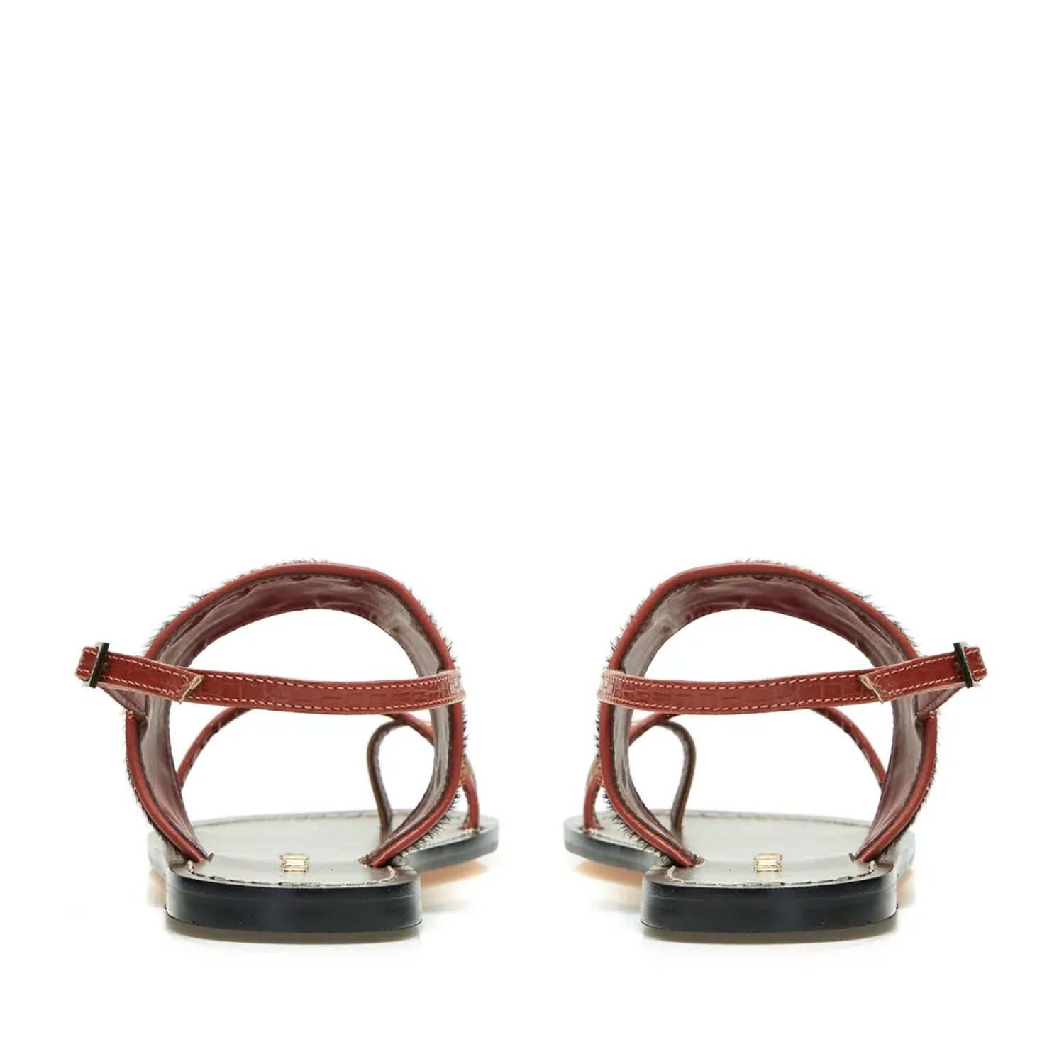 A Rasteira Osaka é confeccionada em couro. De modelagem flat o modelo de tiras conta com riqueza de detalhes e o destaque fica por conta do pesponto na palmilha e tira em pelos, além de garantir maior segurança ao calce com tira no dedo. O modelo tem fechamento lateral por fivela personalizada com o monograma da marca, além de todo conforto presente no DNA Paula Torres.