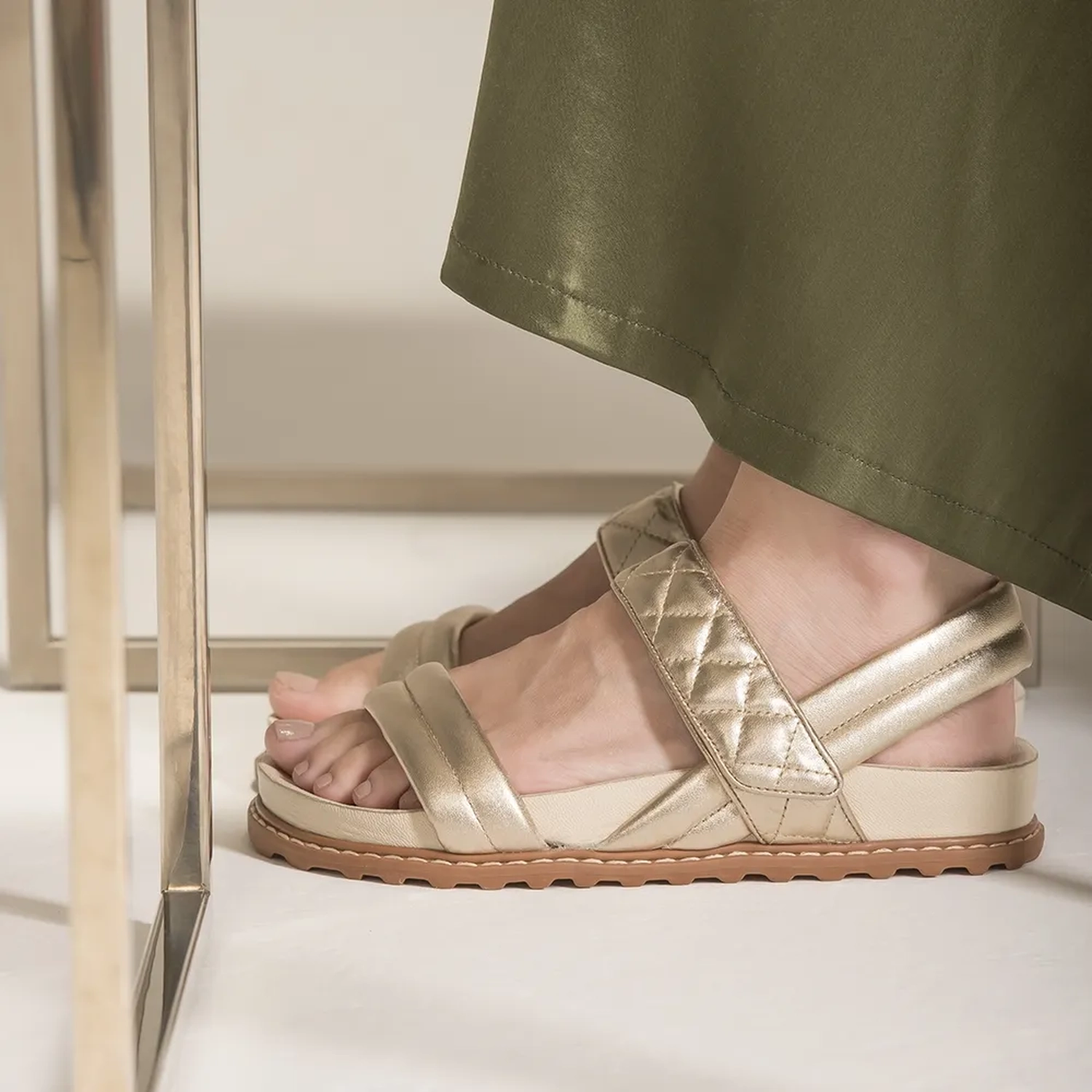 A rasteira Paris segue o mood comfy apresentado nos best seller da coleção Verão 21 Paula Torres. Confeccionada em couro metalizado. O modelo estilo papete possui tiras largas no cabedal com detalhe matelassado na tira de fechamento. O foco do modelo está no conforto apresentado por meio de sua palmilha anatônica e o solado flat de borracha, as tiras apresentam direnciais no acabamento acolchoado e no pespontado na tira dos dedos e calcanheira. A principal trend da estação chega a Winter Collection 21' Paula Torres cheia de informação de moda e com riqueza de detalhes.