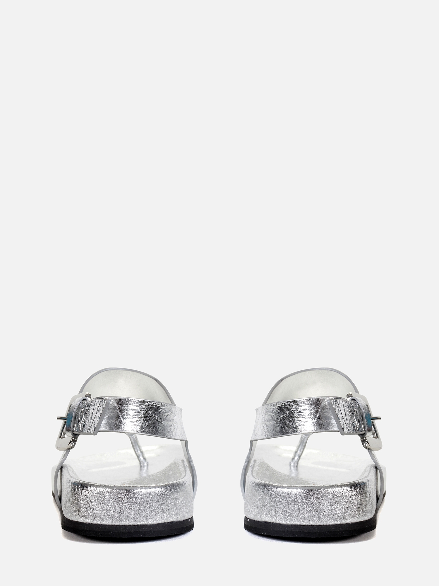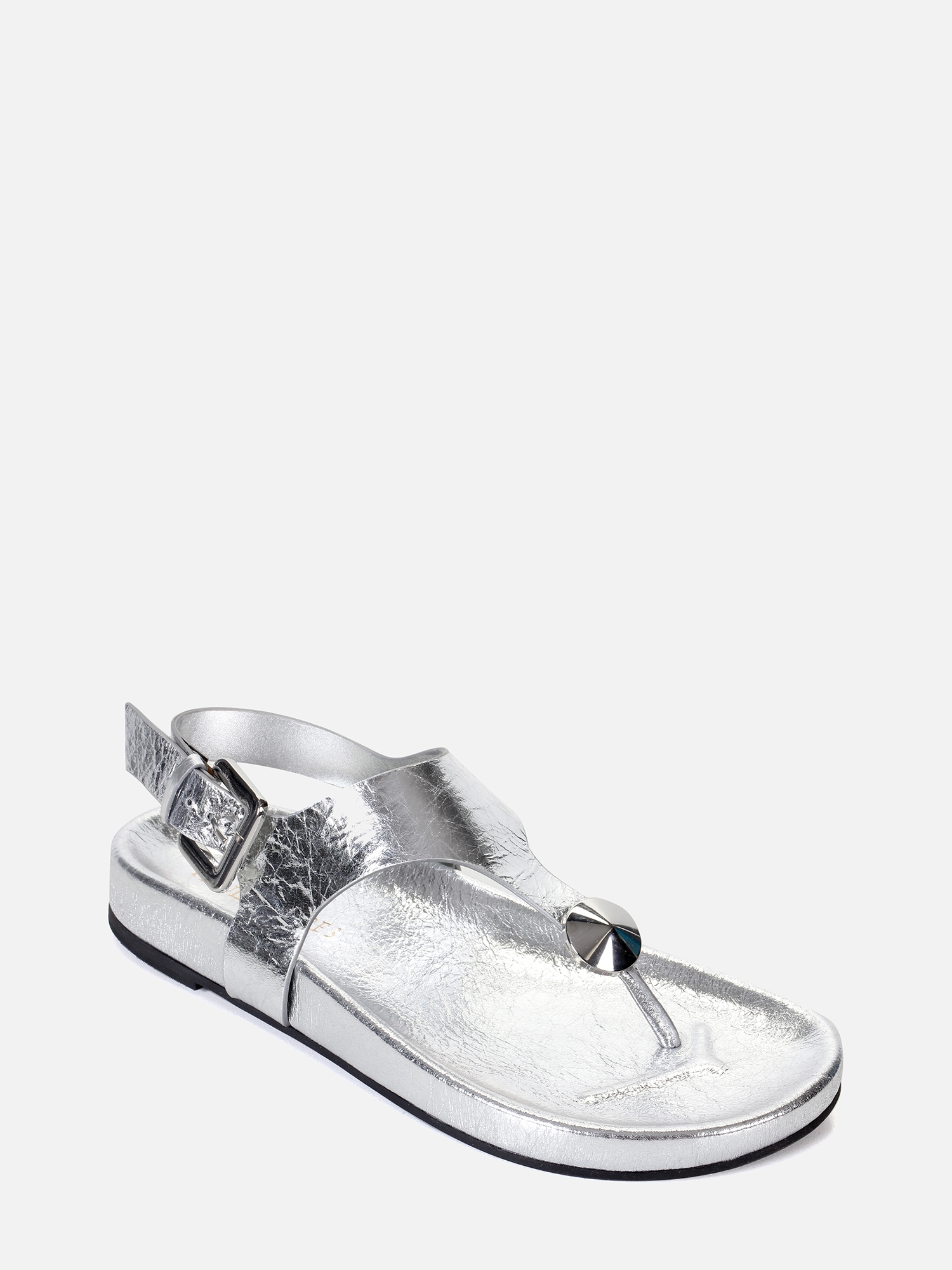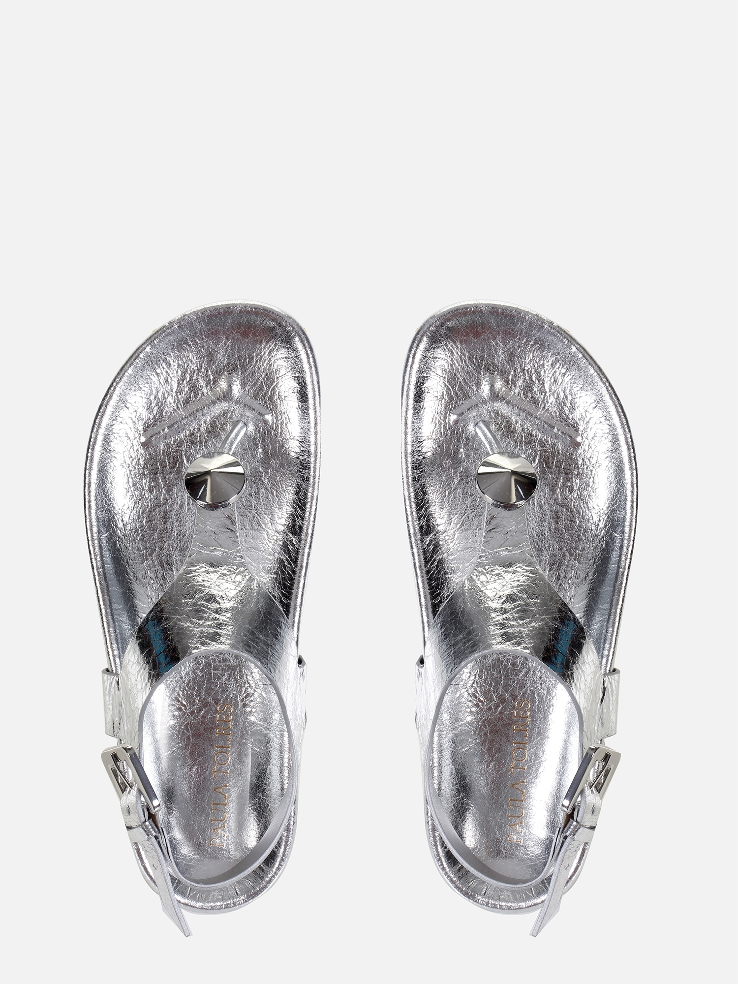 A Rasteira Pipa Prata da Paula Torres combina minimalismo e elegância em um design moderno. Produzida em couro, apresenta tira central com metal exclusivo, que adiciona um toque contemporâneo e sofisticado ao visual.