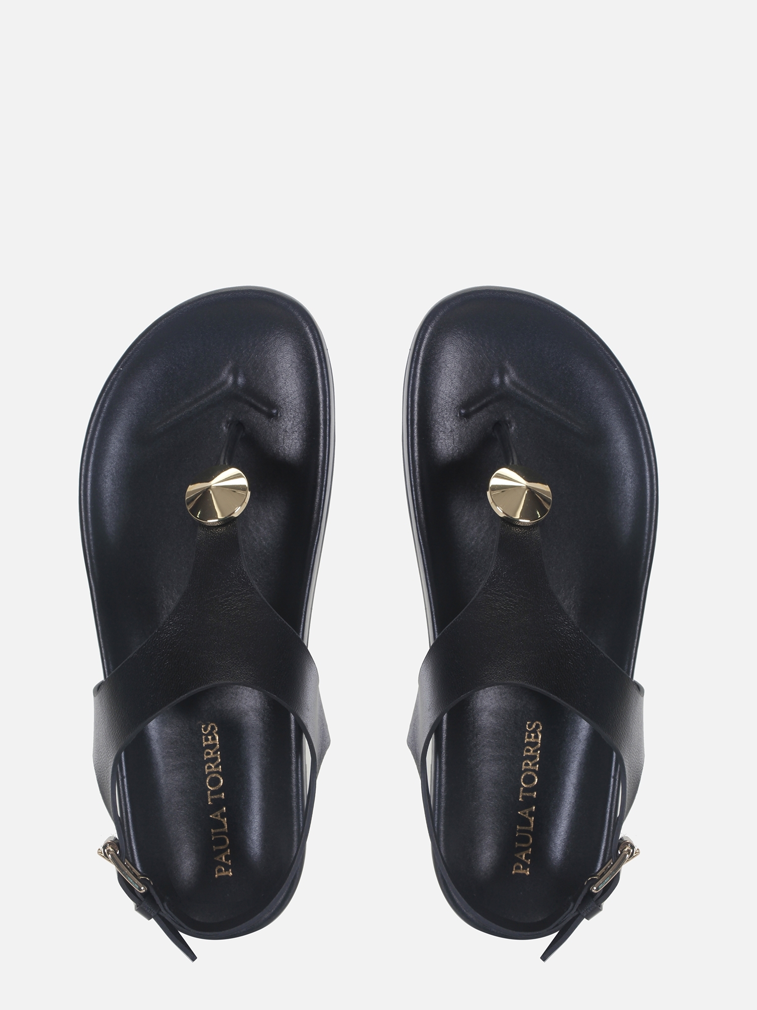 A Rasteira Pipa Preta da Paula Torres combina minimalismo e elegância em um design moderno. Produzida em couro, apresenta tira central com metal exclusivo, que adiciona um toque contemporâneo e sofisticado ao visual.