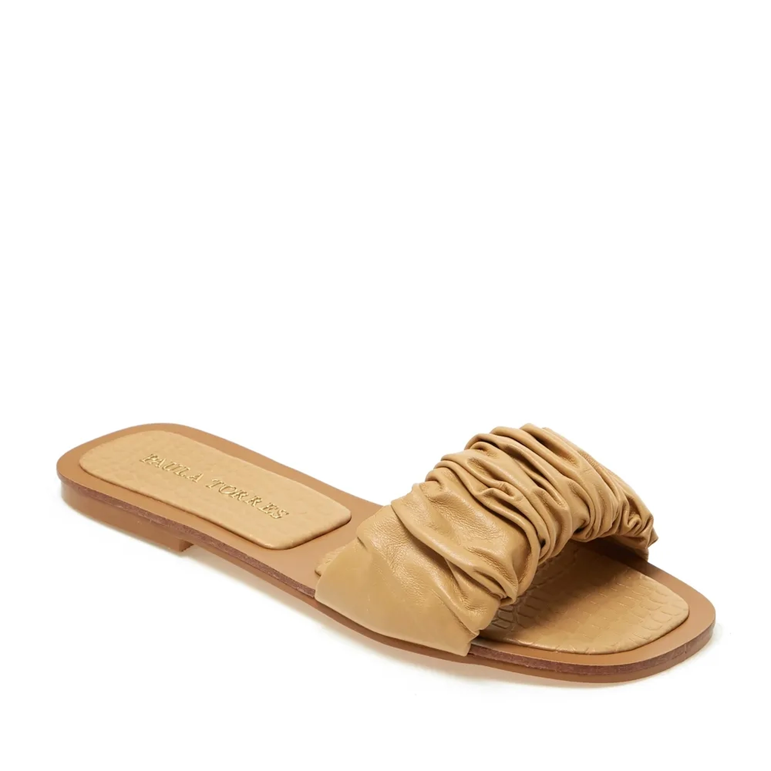 A rasteira Milão é produzida em couro metalizado. Sua construção em tiras com destaque para aplicação de rebites que trás informação de moda a peça. O modelo é arrematado com bico redondo e o seu fechamento por fivela em tira dupla na altura do tornozelo garante todo conforto presente no DNA Paula Torres.