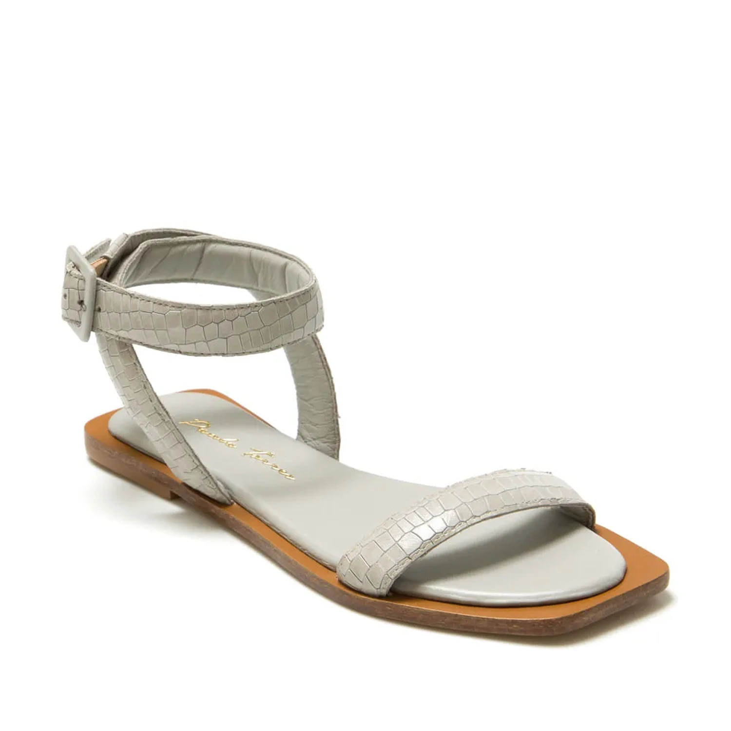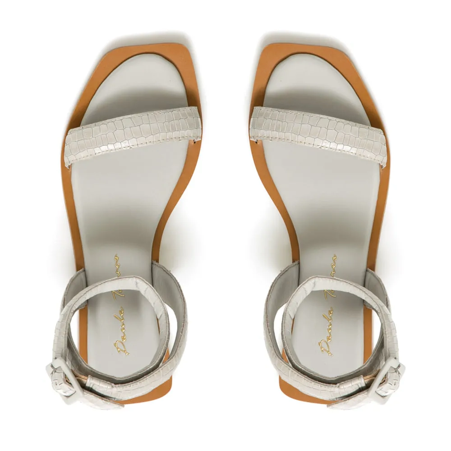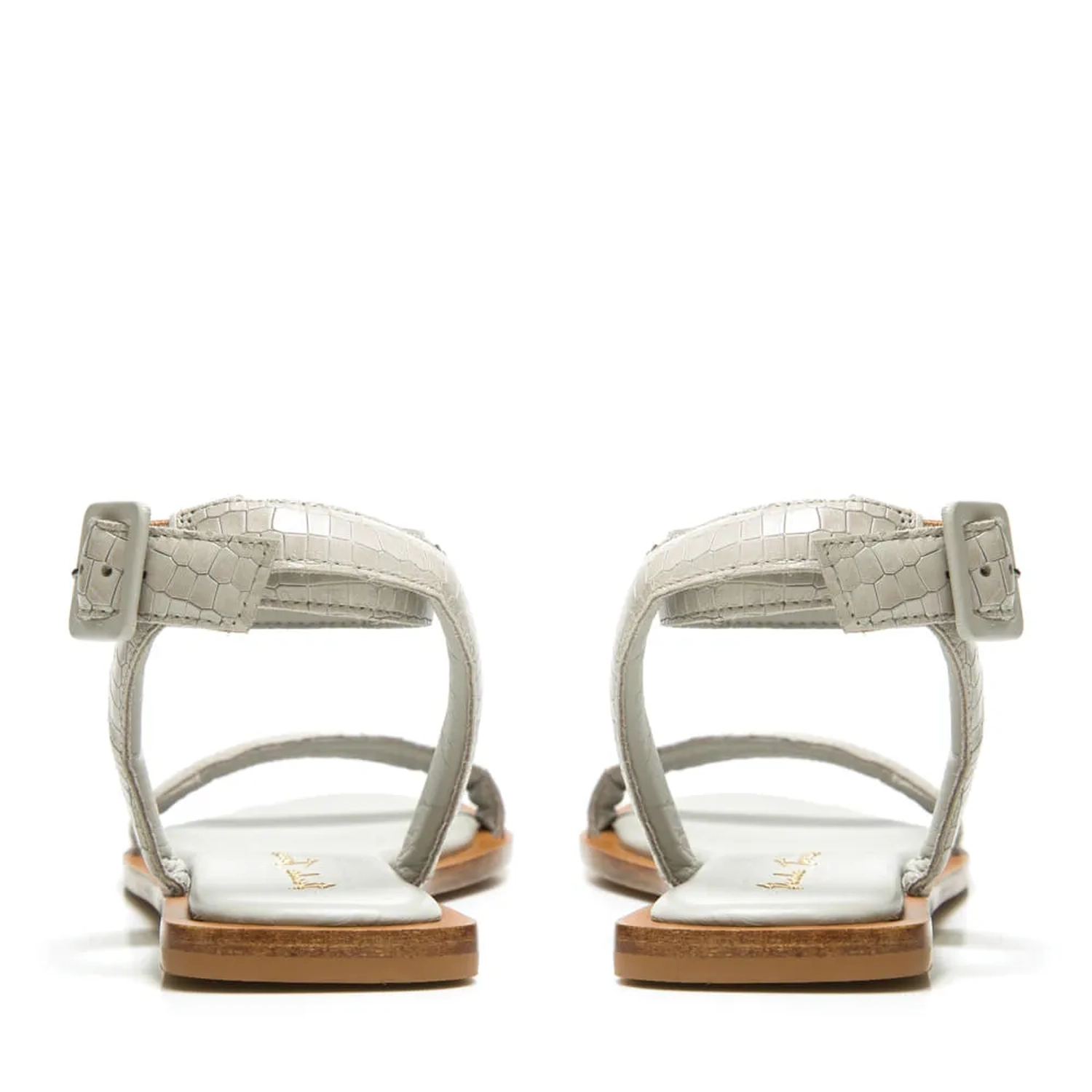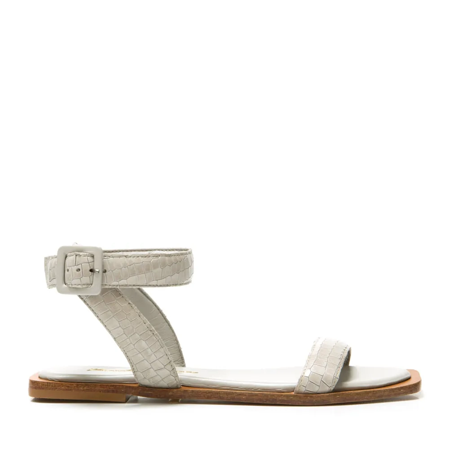 A Rasteira Savana é confeccionada em couro. A peça possui bico redondo fazendo contraste com a vira quadrada sobressalente. Tiras largas de couro com estampa mini lezard na parte do cabedal e do tornozelo. Fechamento feito por fivela forrada em couro. A Rasteira Savana torna-se atemporal e unicamente Paula Torres por conta do seu design e estampa.