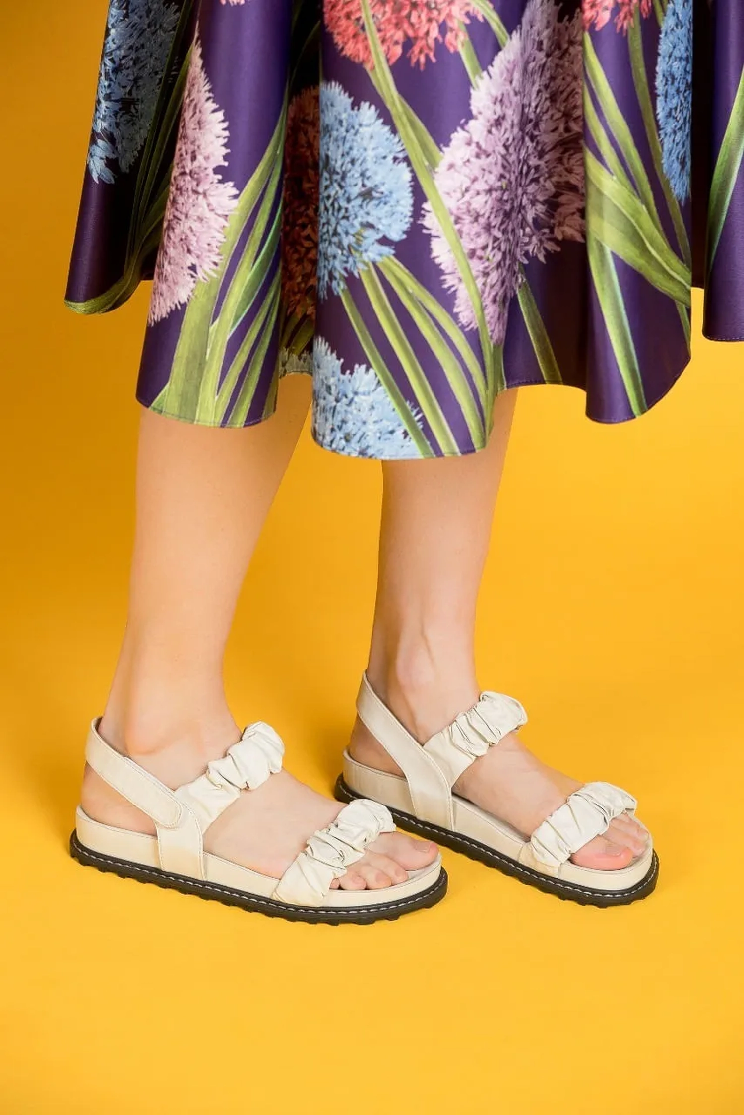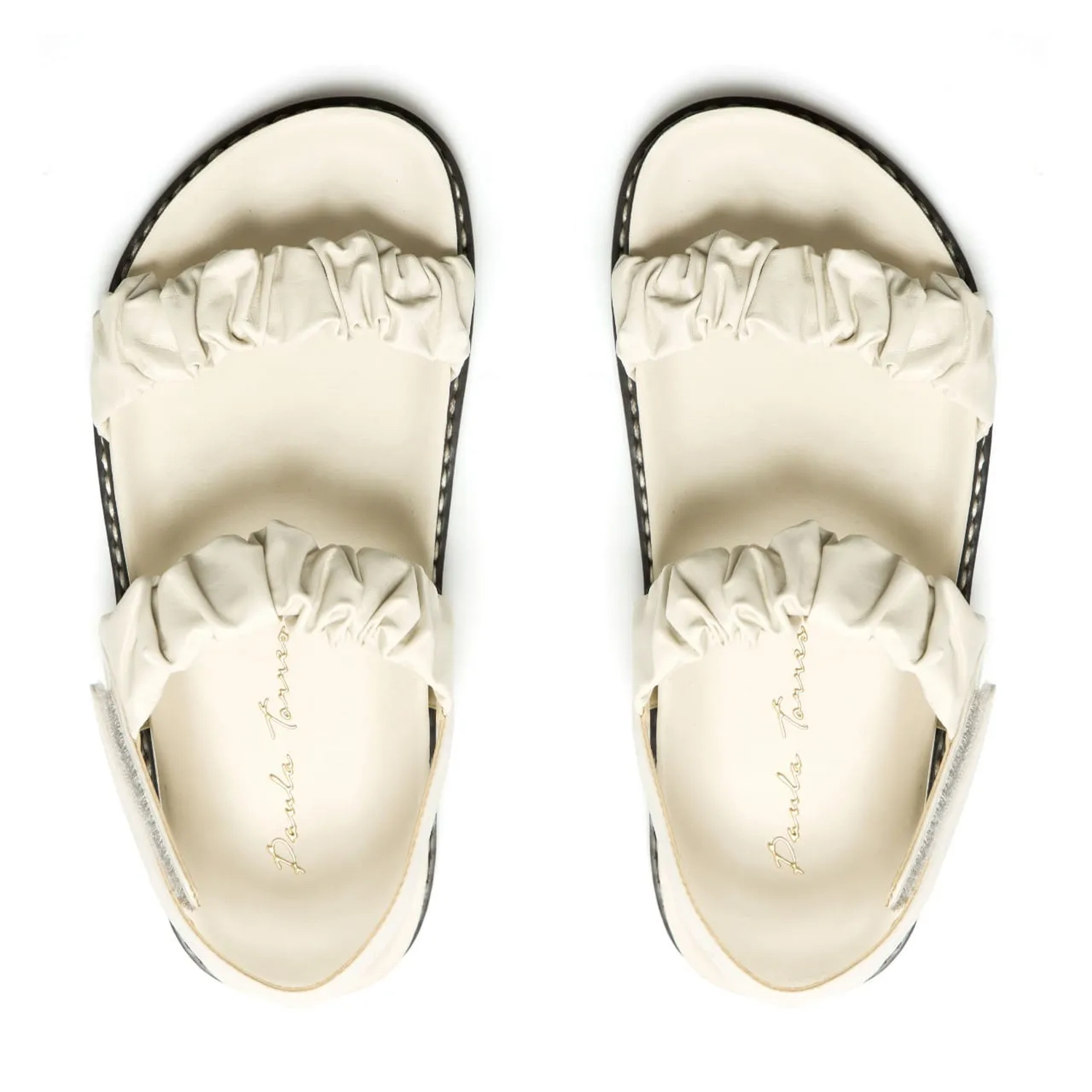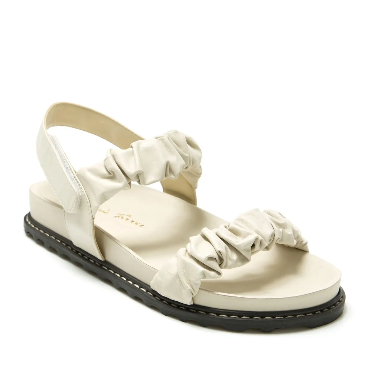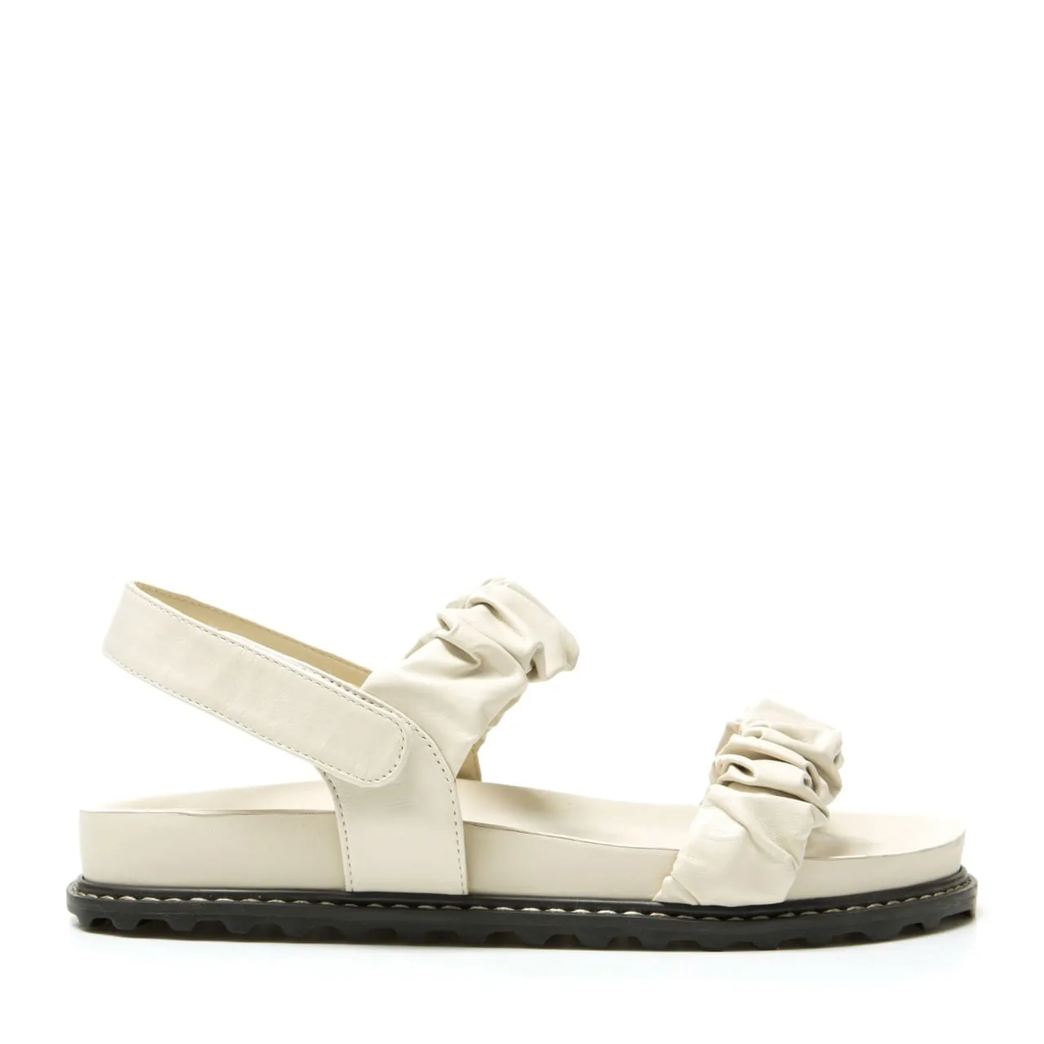 A Rasteira Serena é confeccionada em couro. O modelo estilo papete possui tiras duplas largas com couro franzido e fechamento por velcro no calcanhar. A palmilha ergonômica e solado flat em borracha trazem conforto para o modelo que é tendencia para o verão.
