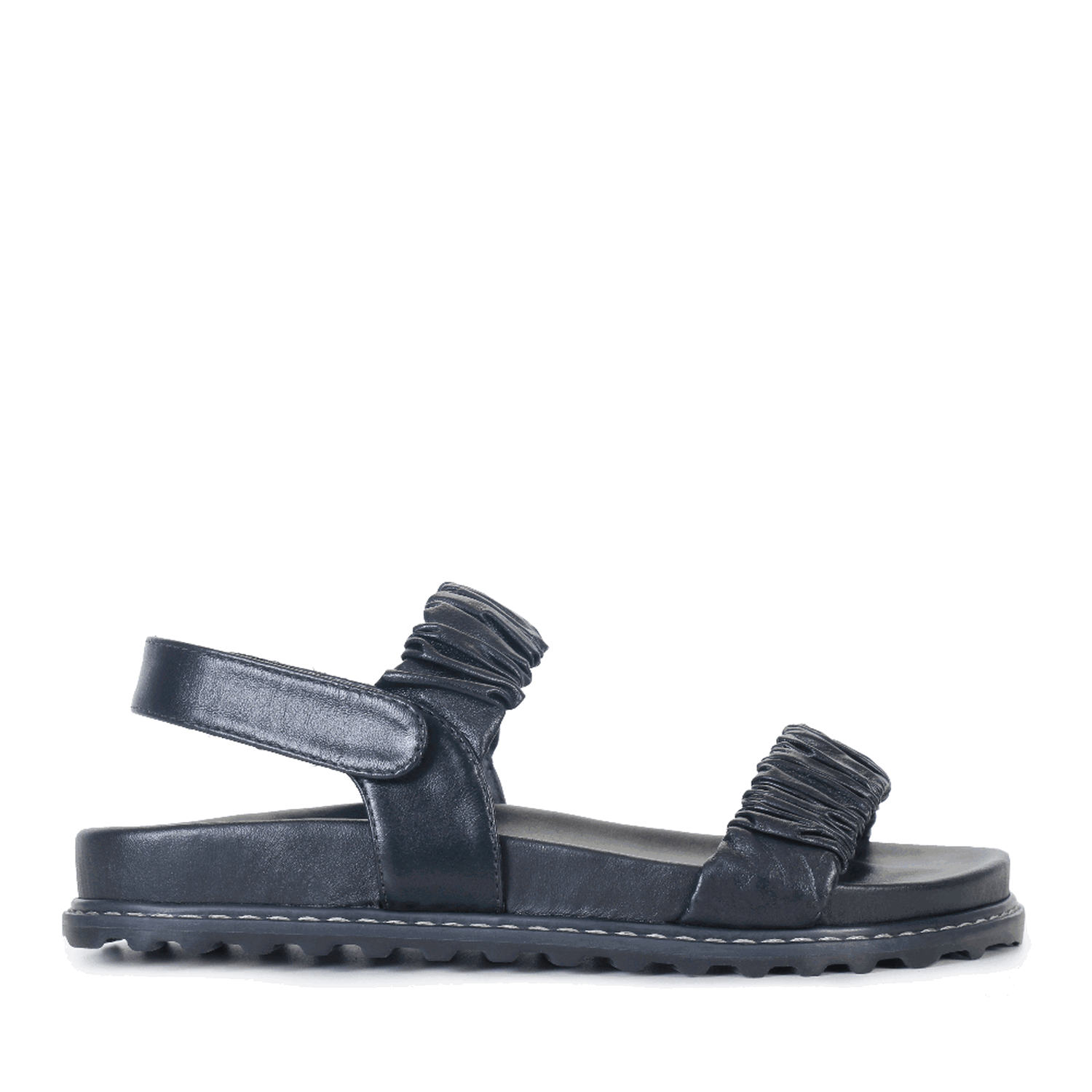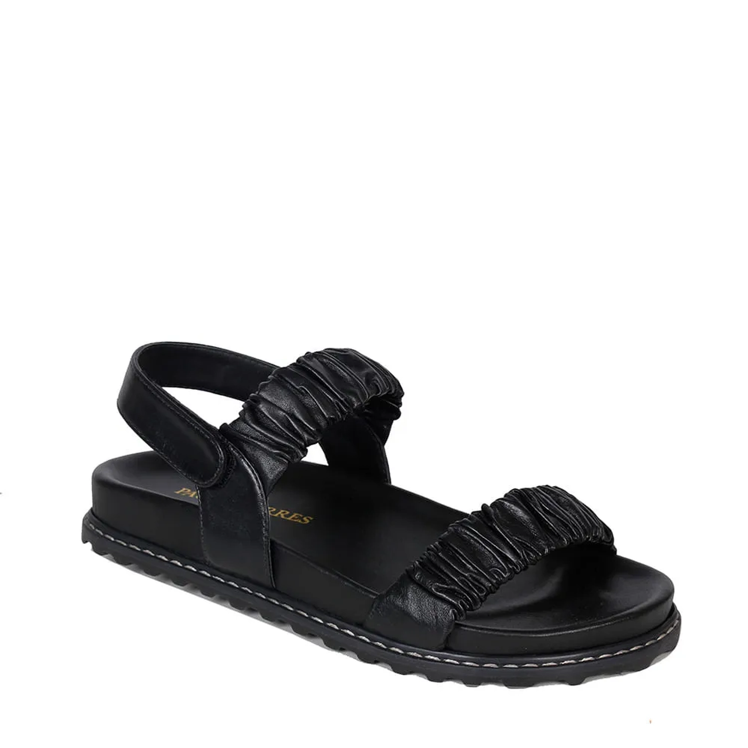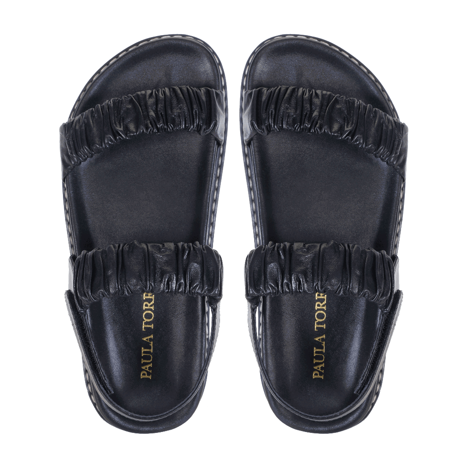O best-seller do verão Paula Torres está de volta. A Rasteira Serena é confeccionada em couro de alta qualidade, garantindo durabilidade e um acabamento impecável. O couro confere sofisticação ao modelo, adicionando um toque luxuoso a qualquer look. O design da Rasteira Serena é inspirado no estilo papete, que está em alta. O modelo possui tiras duplas largas com couro franzido, criando um efeito visual elegante e moderno. Além de conferir um visual único, as tiras largas também proporcionam um ajuste seguro e confortável. Para facilitar o calce, a Rasteira Serena conta com fechamento por velcro no calcanhar. Essa opção de fechamento é prática e versátil, permitindo um ajuste perfeito. A palmilha ergonômica foi cuidadosamente projetada para proporcionar suporte e conforto. O solado flat em borracha é flexível e leve, oferecendo estabilidade ao caminhar.