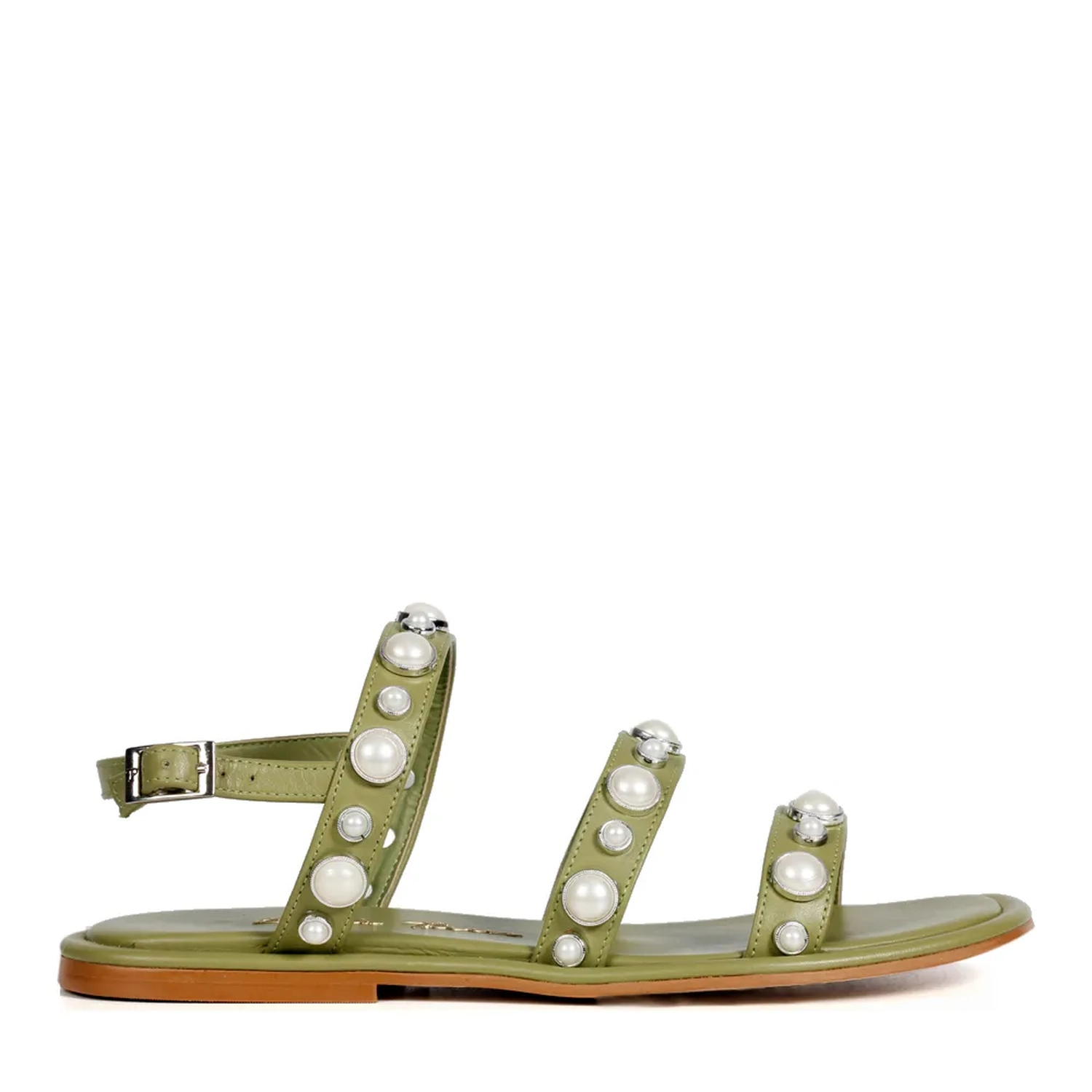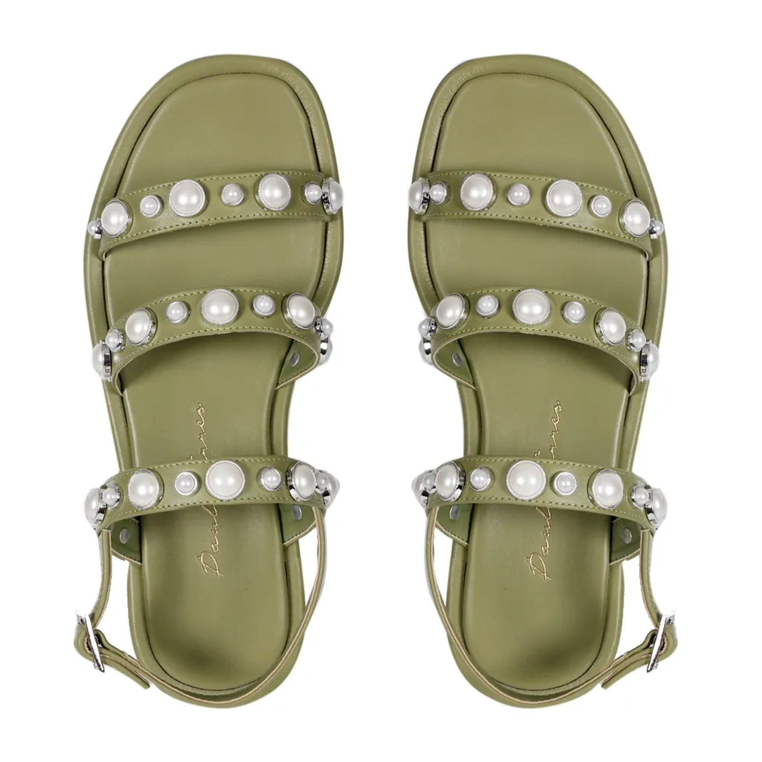 A Rasteira Zoe é confeccionada em couro. Modelagem em bico quadrado, destaque para o cabedal formado por três tiras com aplicações de pérolas grandes e pequenas intercaladas. Fechamento lateral ajustável por fivela. Aposte nesse modelo para o verão! Peça-chave que combina com tudo, e que sempre complementará o seu look à Paula Torres.