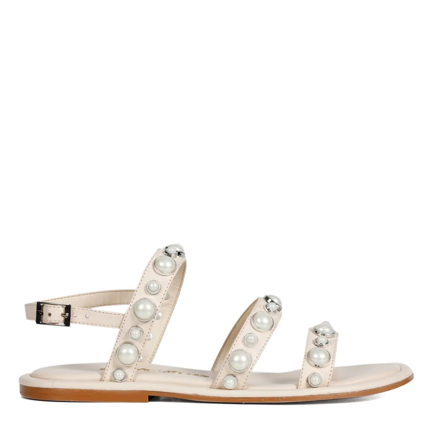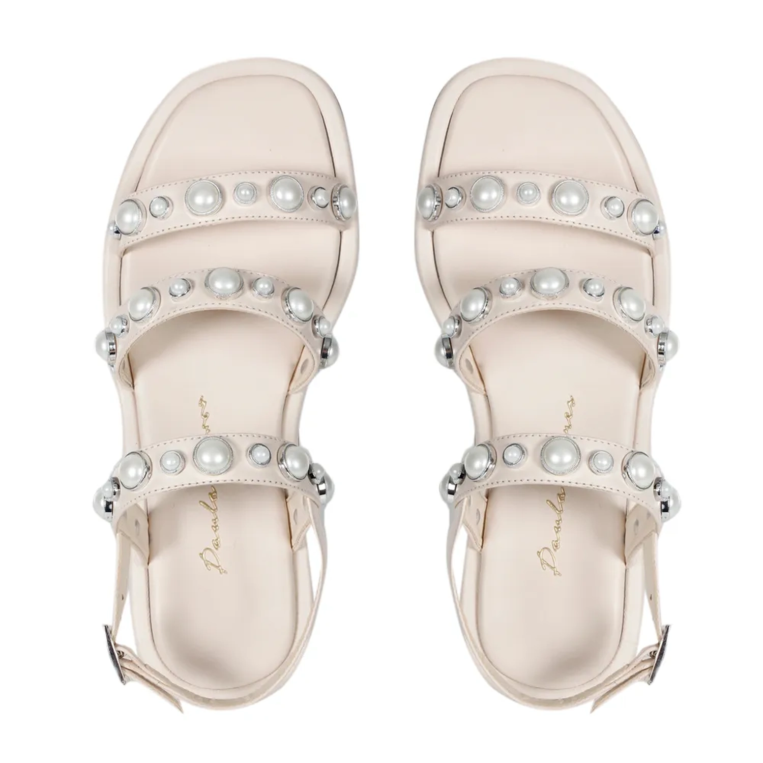 A Rasteira Zoe é confeccionada em couro. Modelagem em bico quadrado, destaque para o cabedal formado por três tiras com aplicações de pérolas grandes e pequenas intercaladas. Fechamento lateral ajustável por fivela. Aposte nesse modelo para o verão! Peça-chave que combina com tudo, e que sempre complementará o seu look à Paula Torres.