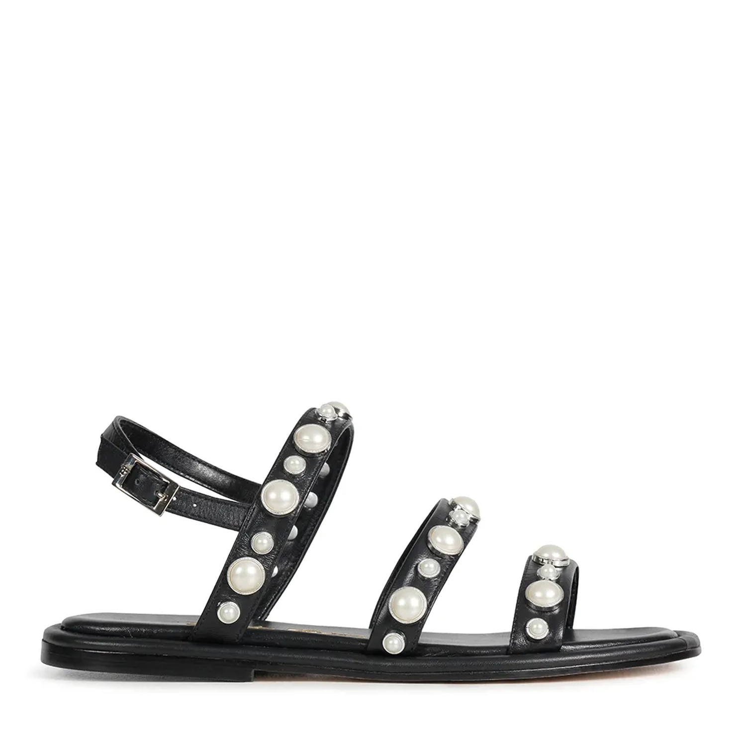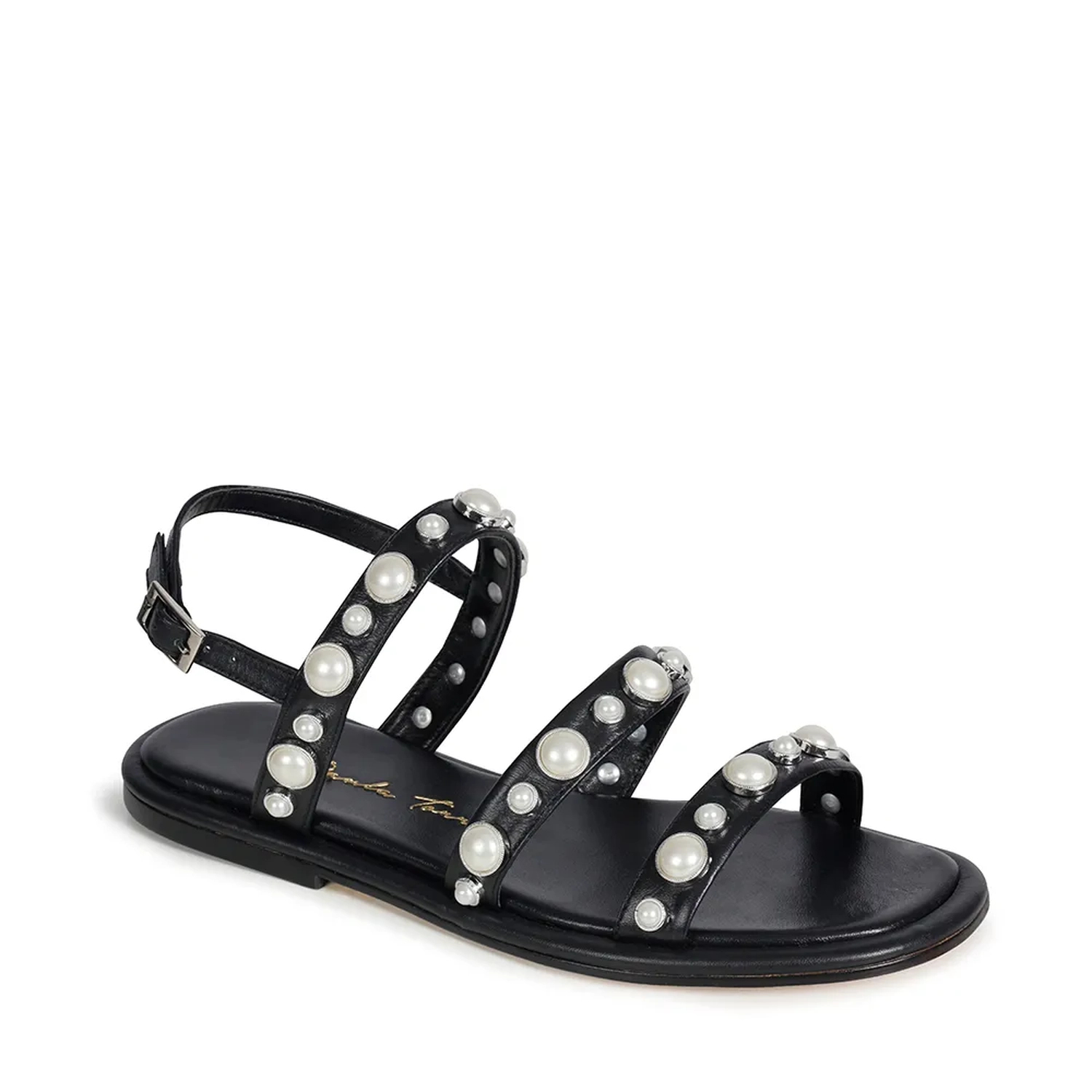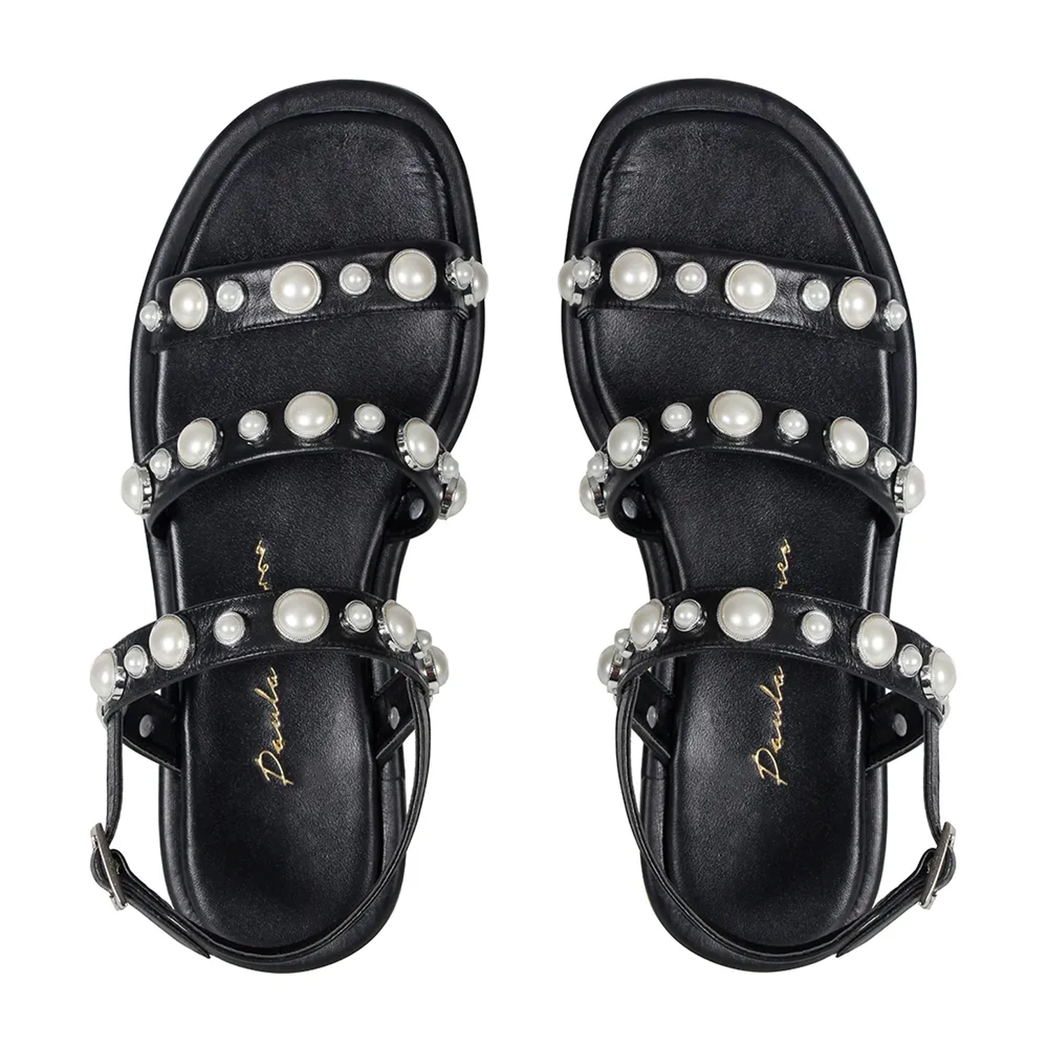 A Rasteira Zoe é confeccionada em couro. Modelagem em bico quadrado, destaque para o cabedal formado por três tiras com aplicações de pérolas grandes e pequenas intercaladas. Fechamento lateral ajustável por fivela. Aposte nesse modelo para o verão! Peça-chave que combina com tudo, e que sempre complementará o seu look à Paula Torres.