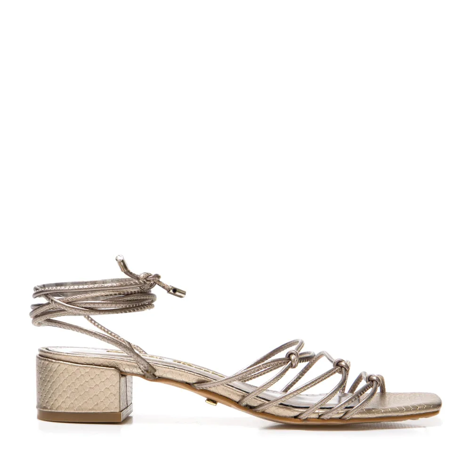 A Sandália Ágatha é produzida em couro. Para atualizar o modelo apostamos em tiras finas com amarrações, com pequenos nós na parte superior. Ponteiras em metal com detalhe da logo. O bico quadrado e salto grosso baixo são perfeitos para looks modernos. Aposte!!!