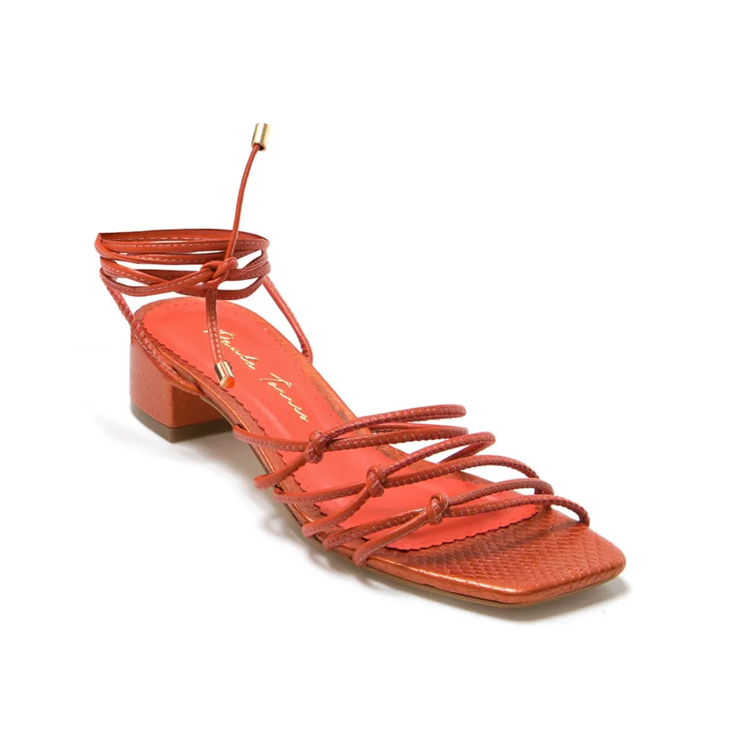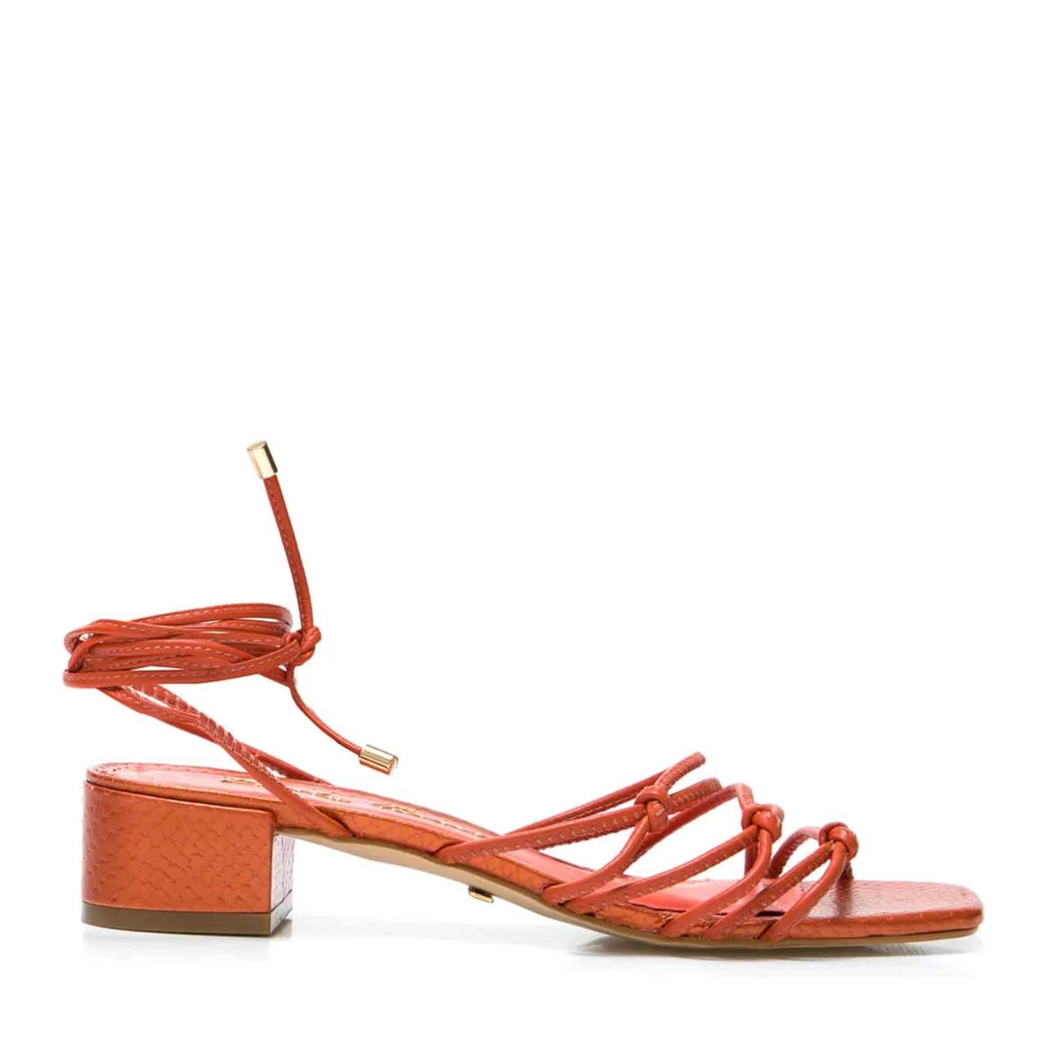 A Sandália Ágatha é produzida em couro. Para atualizar o modelo apostamos em tiras finas com amarrações, com pequenos nós na parte superior. Ponteiras em metal com detalhe da logo. O bico quadrado e salto grosso baixo são perfeitos para looks modernos. Aposte!!!