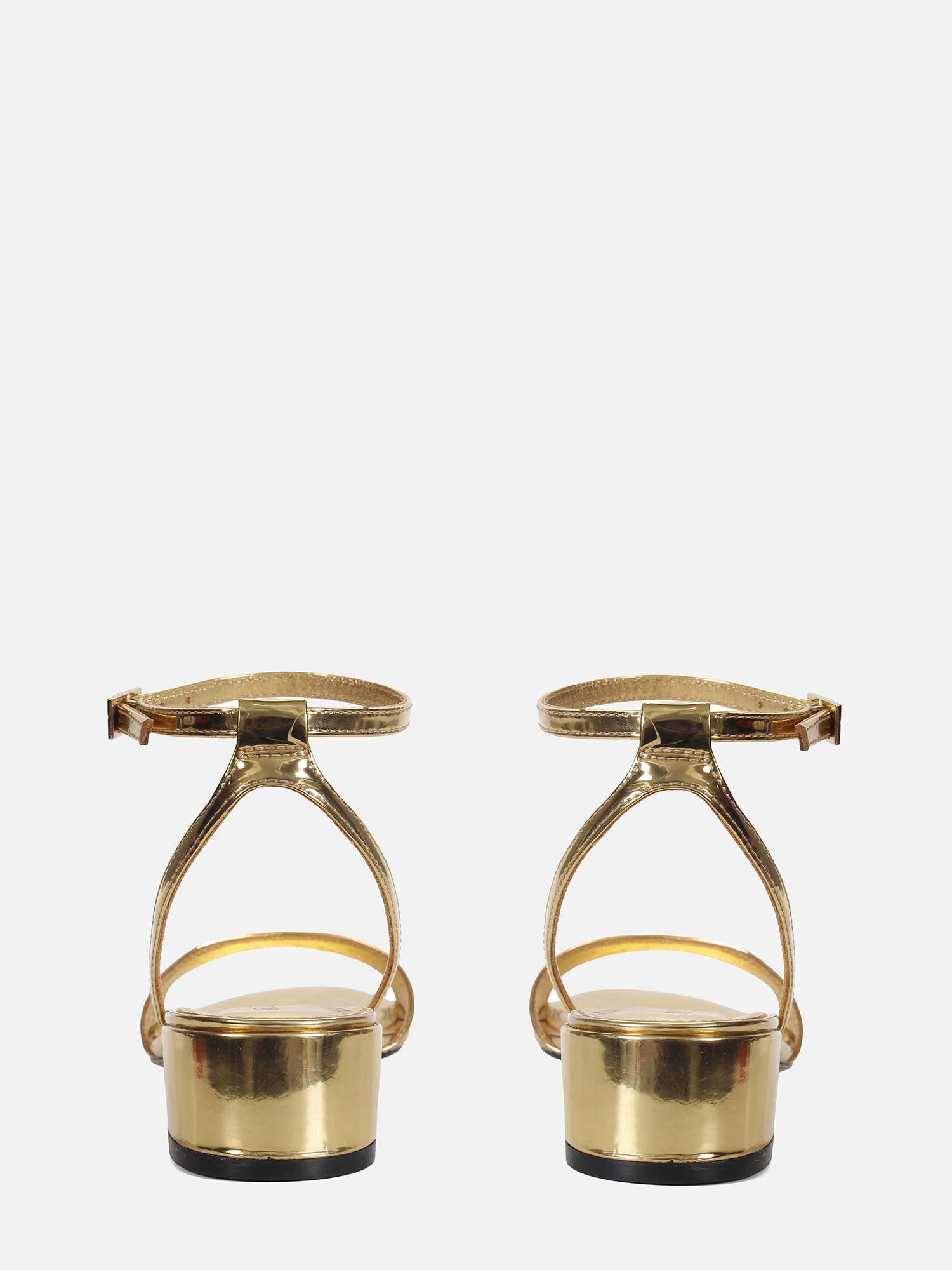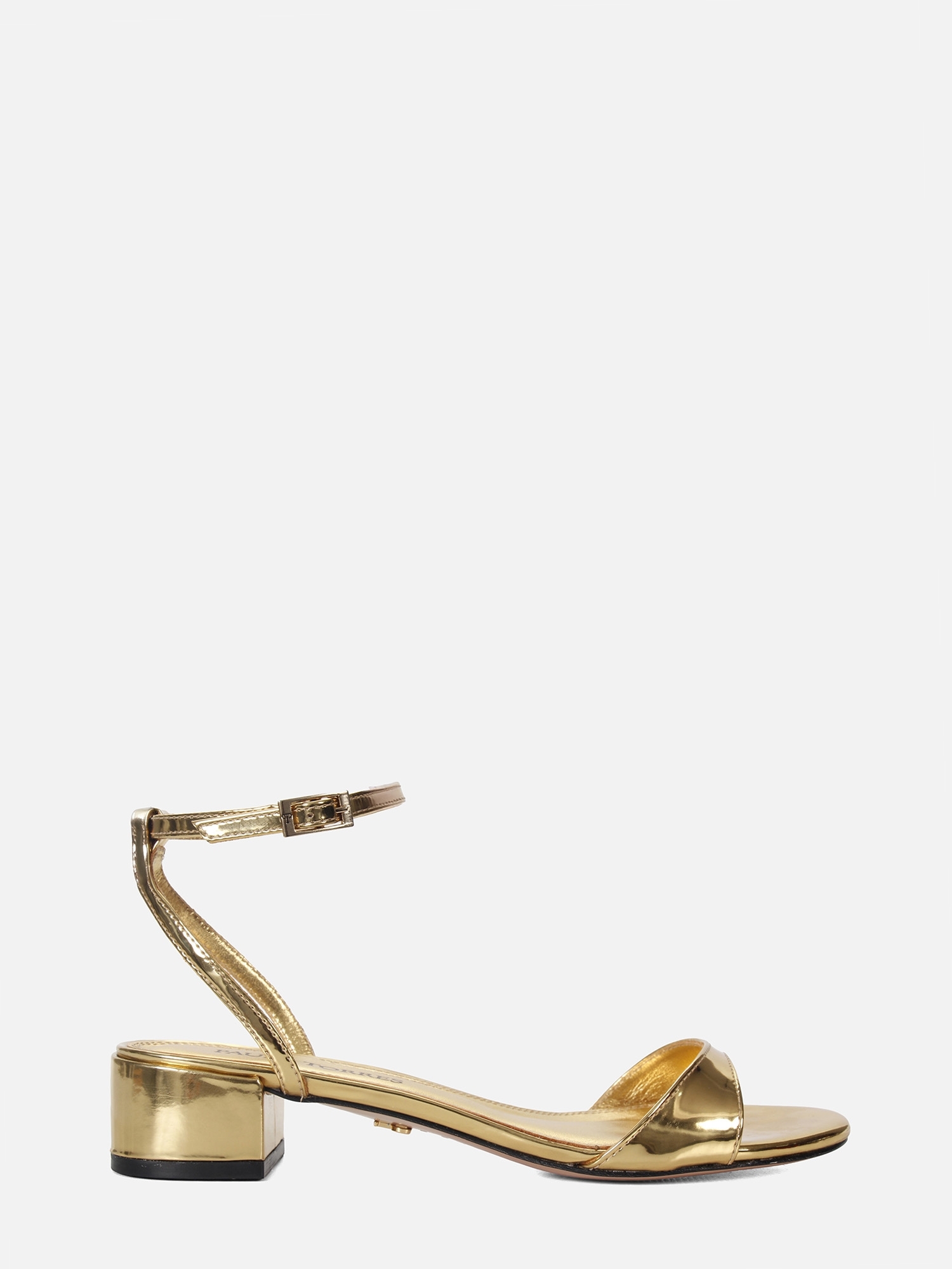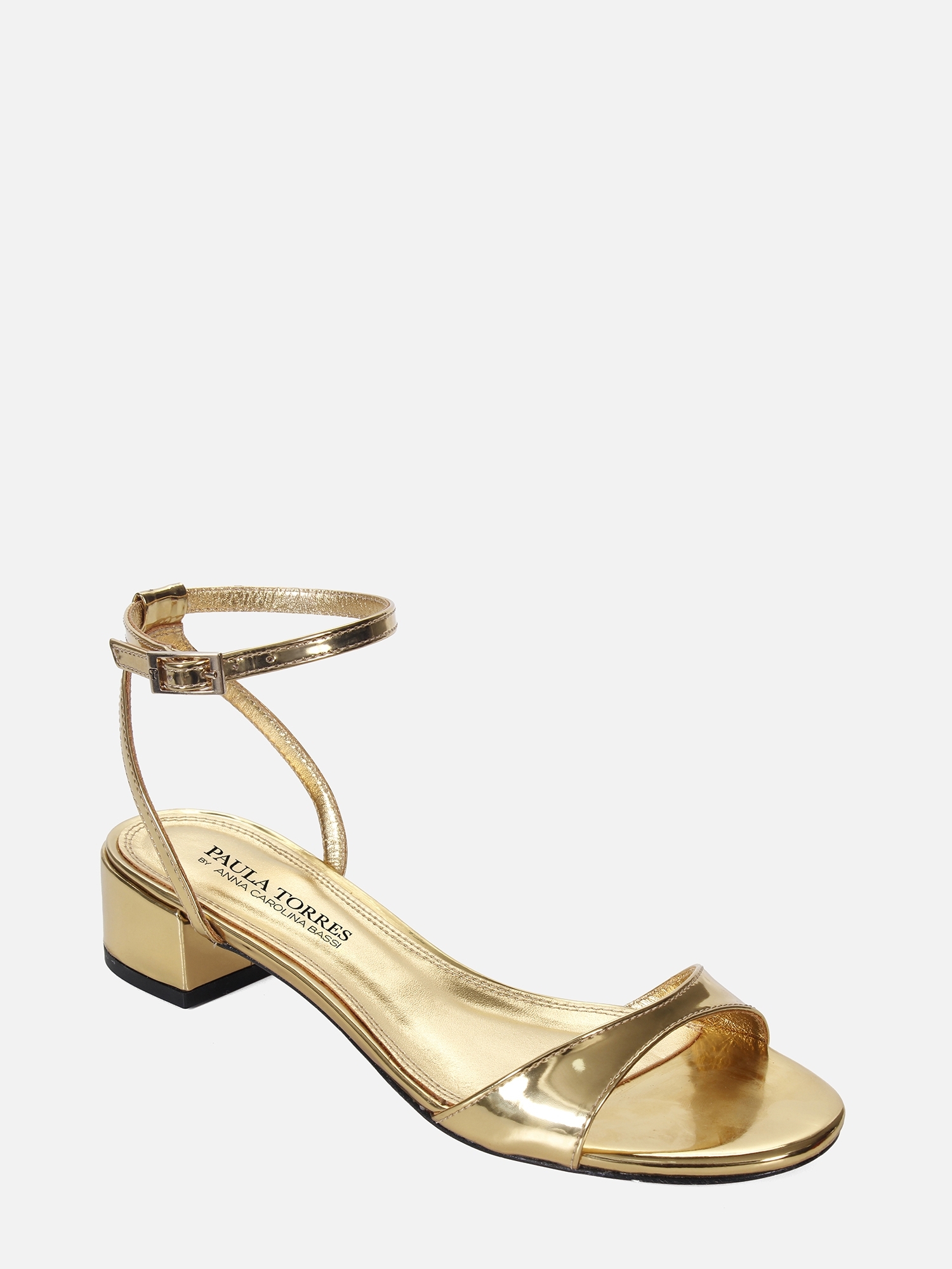 Essa sandália dourada de salto baixo se destaca pela palmilha que reforça a unidade estética da peça, e pelo solado em couro, que acrescenta sofisticação e durabilidade.
