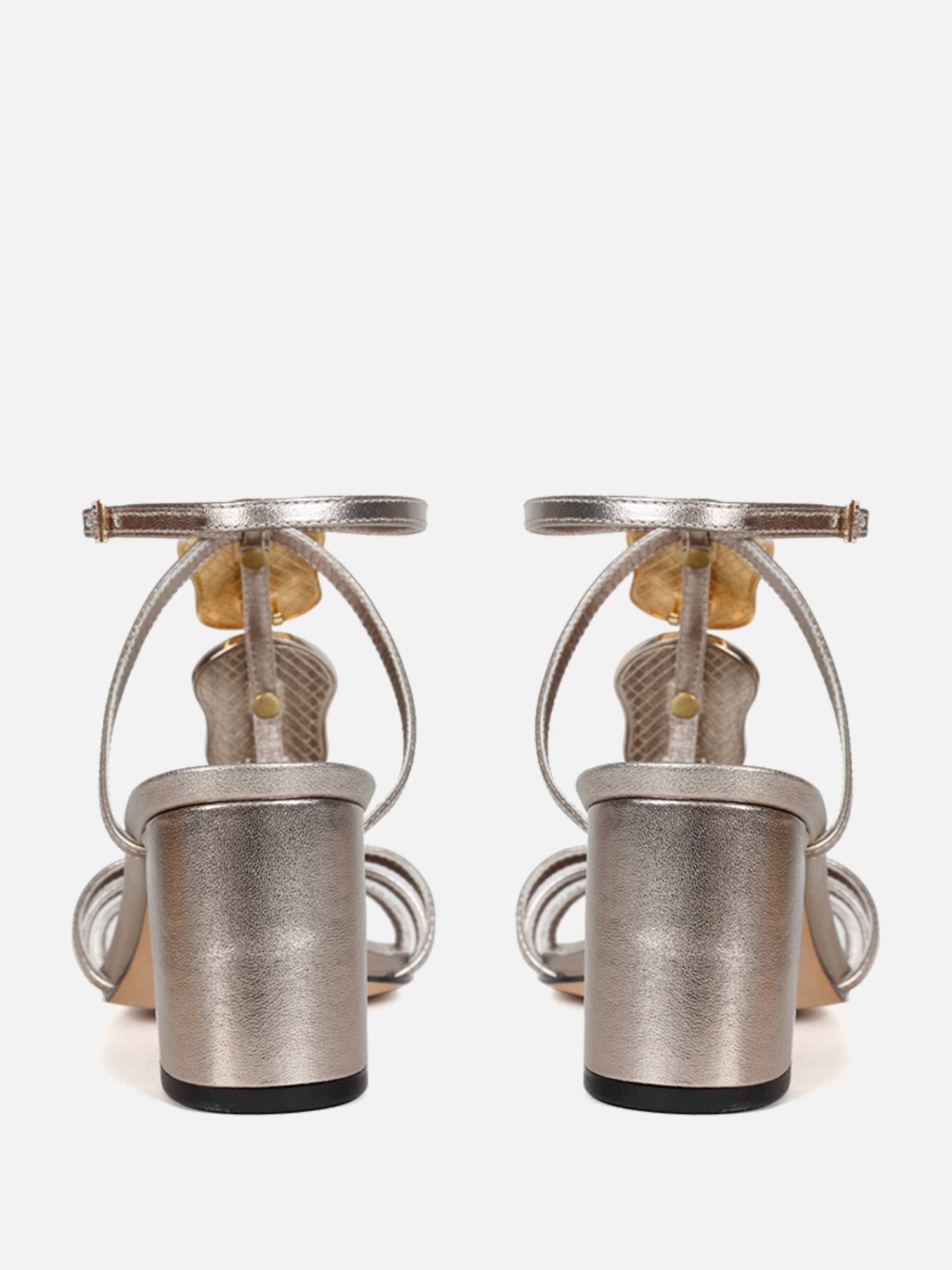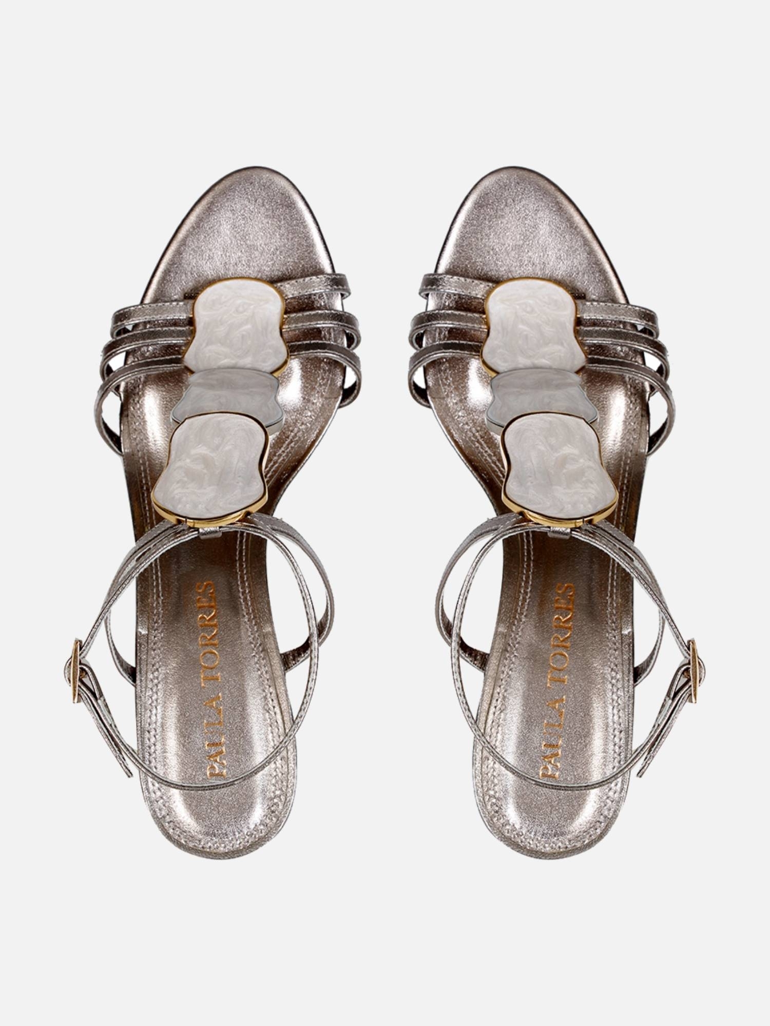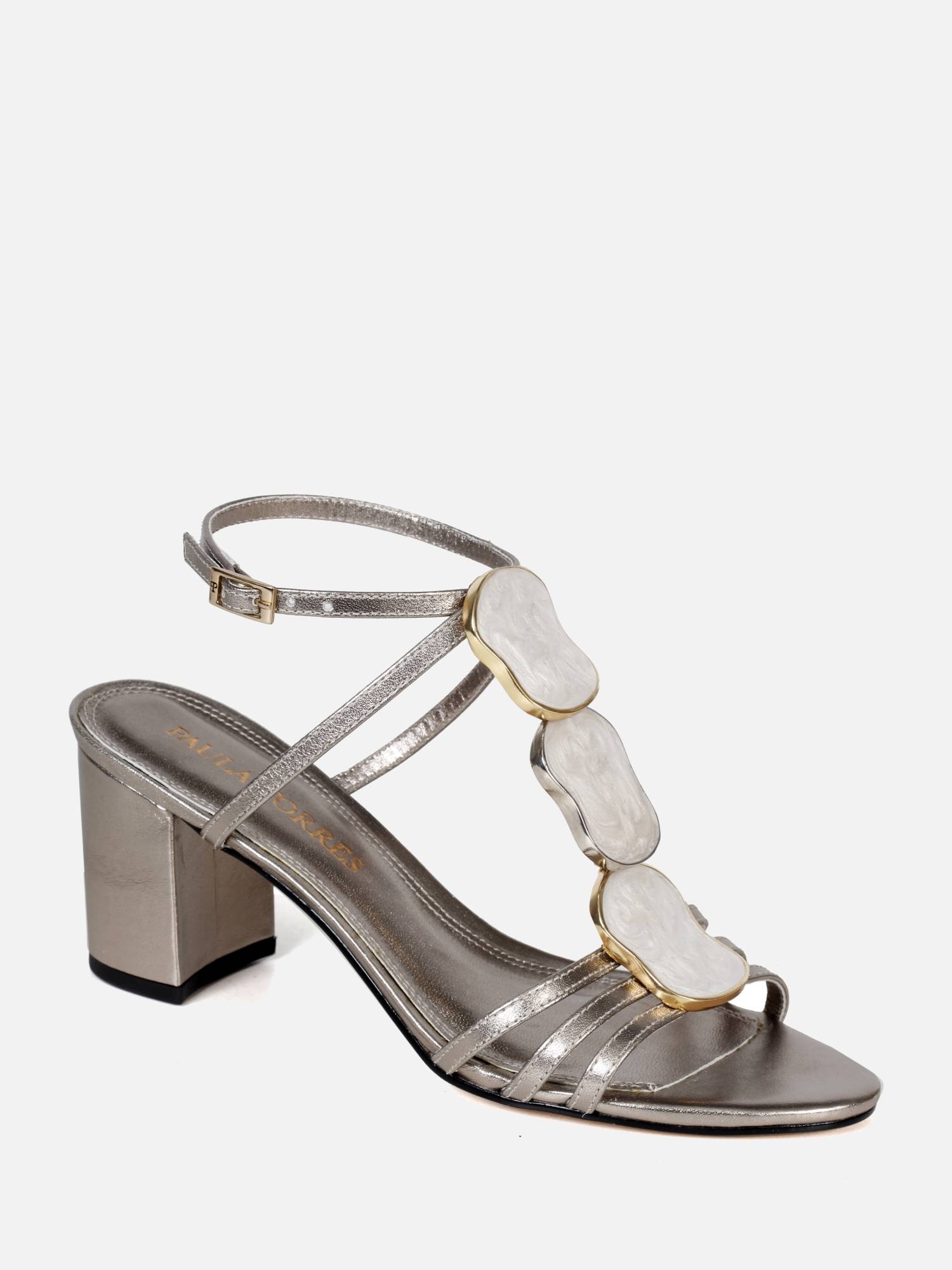 A Sandália Alissa é uma verdadeira obra-prima de elegância e estilo, confeccionada em napa de alta qualidade que proporciona conforto e durabilidade. O bico redondo da sandália oferece um toque clássico e sofisticado, tornando-a uma escolha versátil para uma variedade de ocasiões. O bloco de salto da Sandália Alissa não proporciona apenas altura e equilíbrio, mas também adiciona um toque de modernidade ao seu design. O cabedal é composto por tiras finas em couro, que conferem delicadeza e elegância ao calçado. O destaque fica por conta da peça metálica central, adornada com três madrepérolas deslumbrantes, que capturam a luz de maneira única e brilham com um brilho sutil.