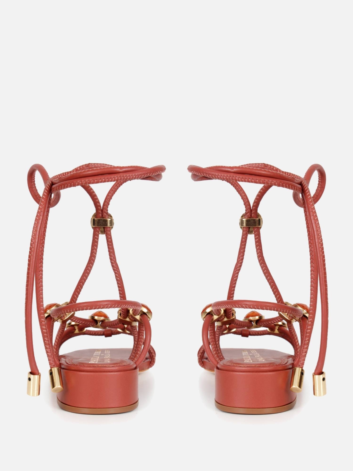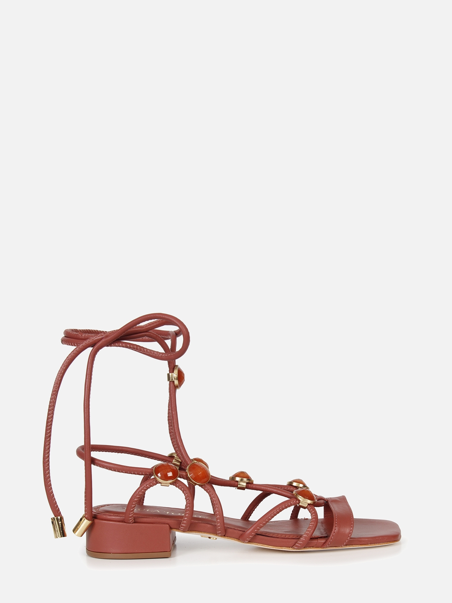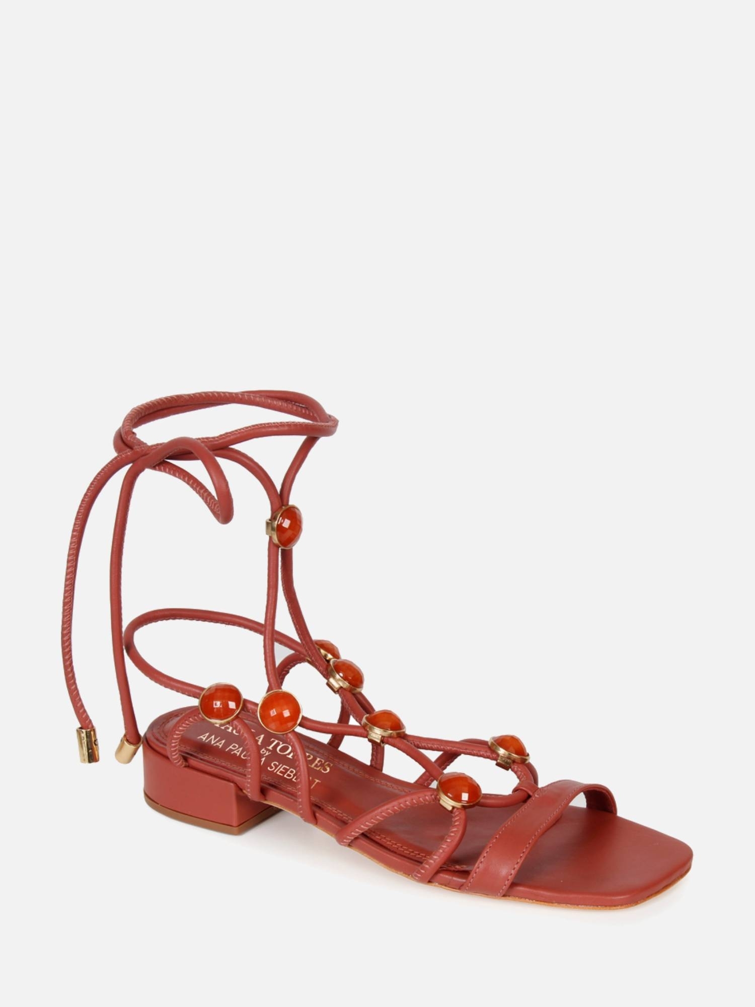 A Sandália Ana é um exemplo de elegância e estilo refinado, confeccionada em couro de alta qualidade. Seu bico quadrado confere uma estética moderna e sofisticada, proporcionando uma base confortável para os dedos dos pés. O cabedal da sandália é formado por tiras forradas em couro que se entrelaçam pelos passantes, criando uma construção visualmente atraente. Um destaque notável é a aplicação de uma pedra natural em resina, que adiciona um toque de elegância e cor à sandália. Os passantes ajustáveis ??não apenas adicionam funcionalidade, permitindo que você ajuste a sandália para o ajuste perfeito, mas também têm um papel estilístico, seguro para o design único da peça.O salto bloco da Sandália Ana oferece estabilidade e conforto ao caminhar, tornando-a uma escolha ideal para longos períodos de uso. O fechamento por amarração da tira adiciona um toque de charme, com as ponteiras de metal dando um acabamento elegante.