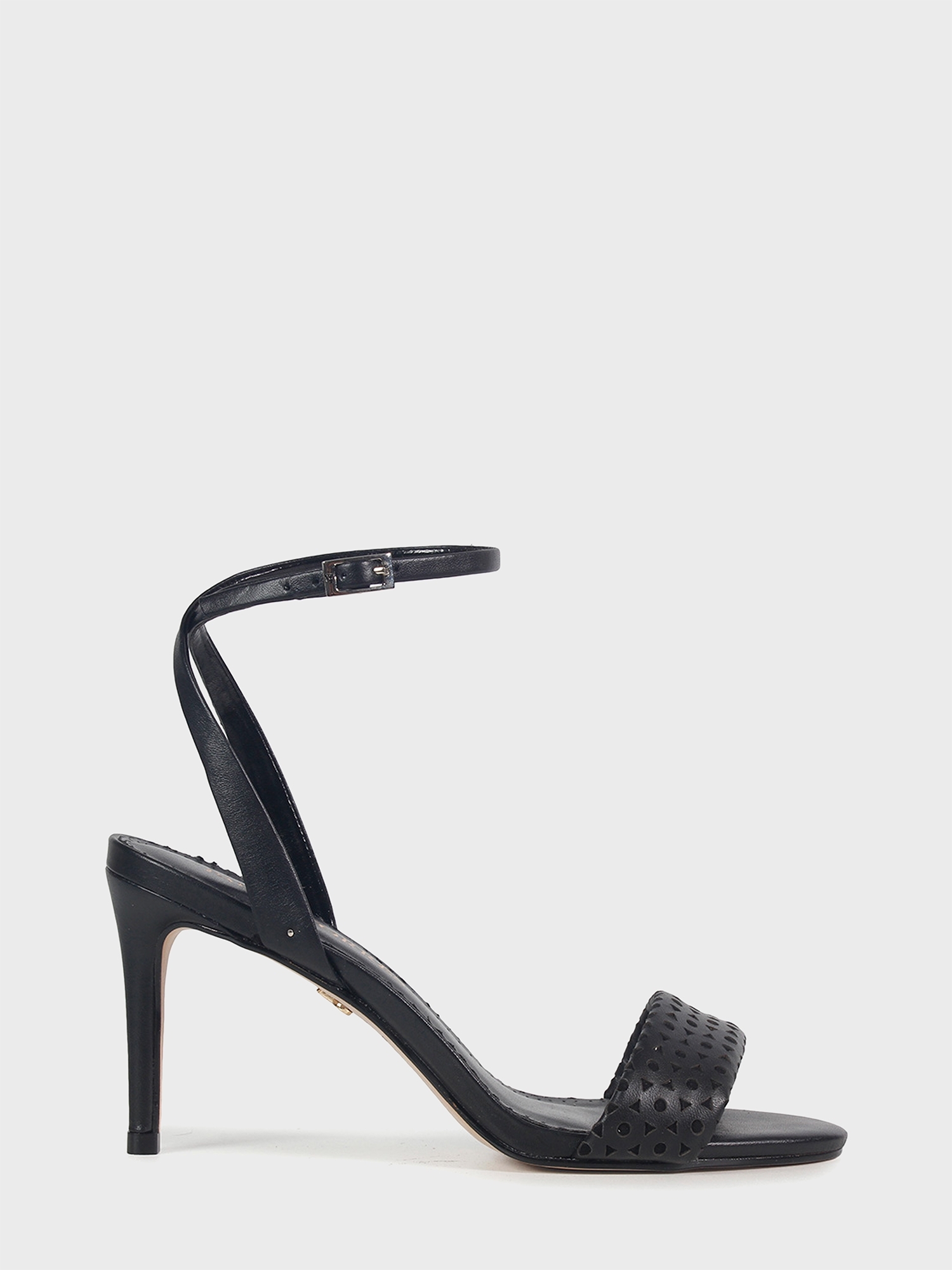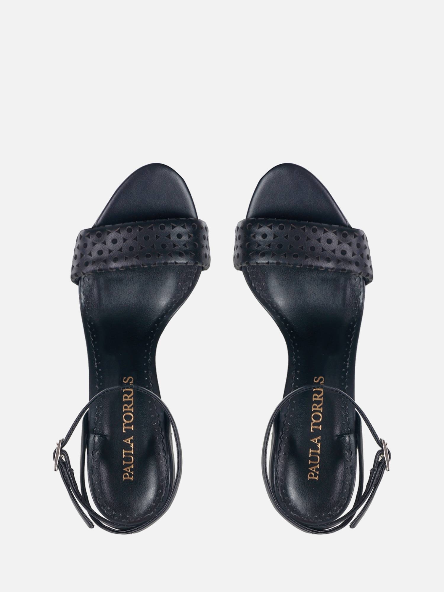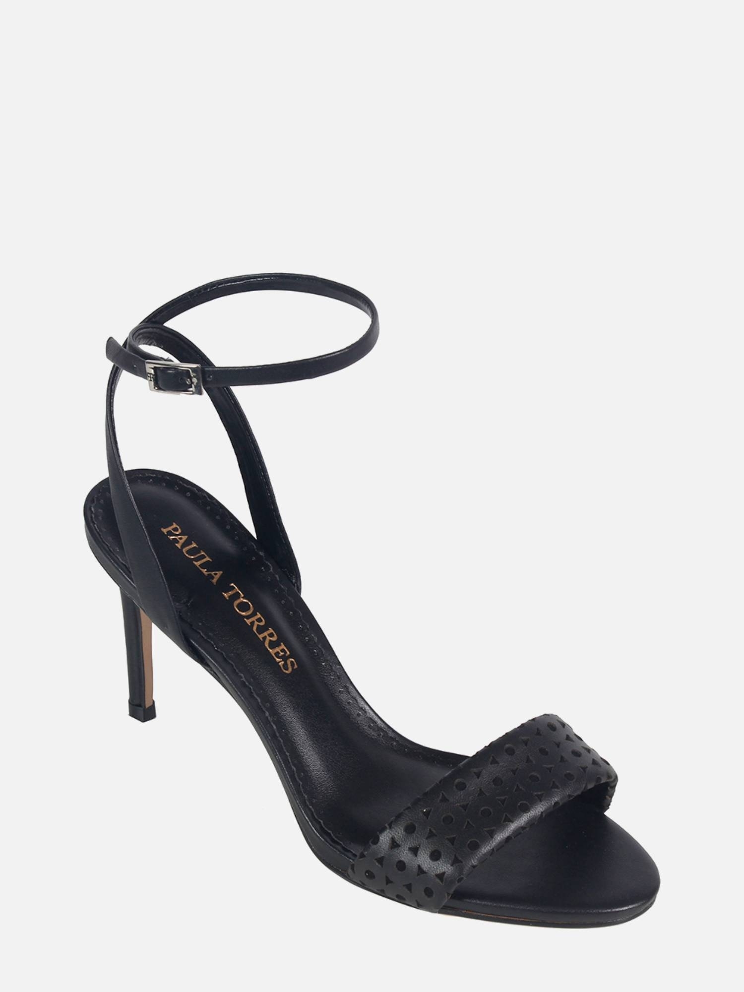 A Sandália Ávila é confeccionada em couro sintético na parte interna, com um salto médio e o bico arredondado. O cabedal em couro com desenho geométrico cortado a laser traz um ar de modernidade ao modelo clássico Paula Torres.