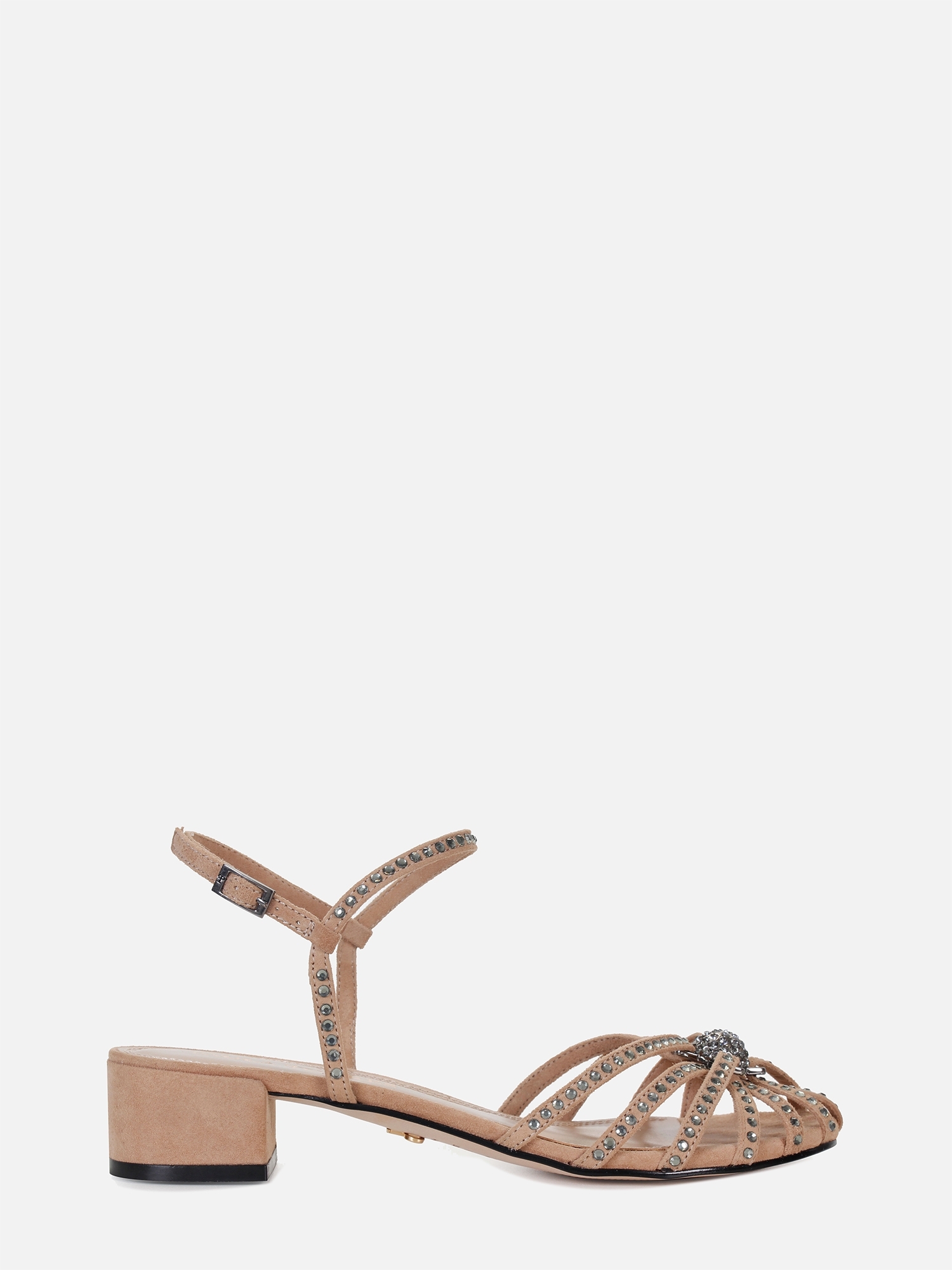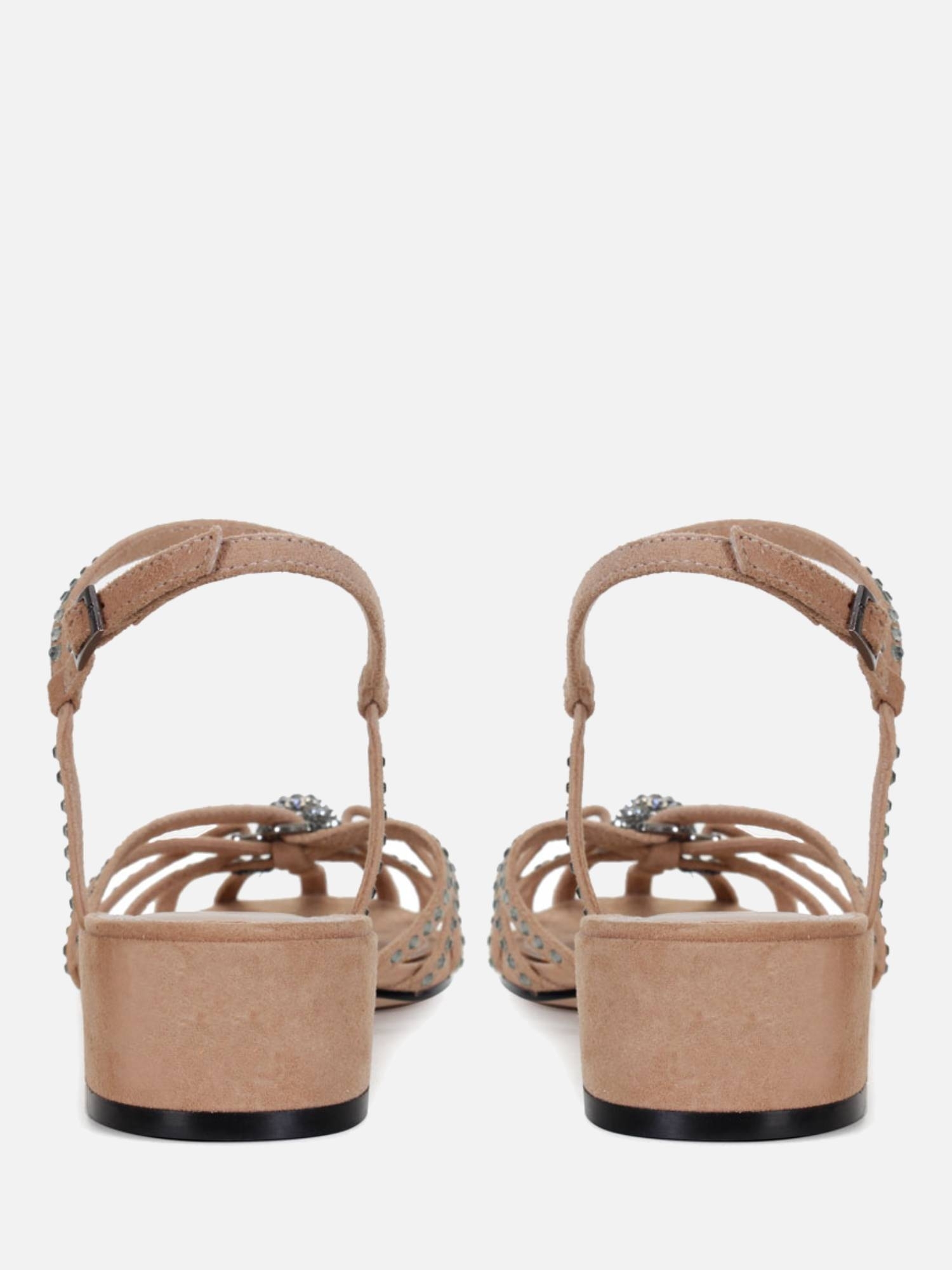 A Sandália Bela Sparkle é um calçado elegante e deslumbrante, confeccionado em camurça de alta qualidade. O cabedal da sandália é composto por tiras finas, que envolvem o pé de forma delicada, e apresenta uma aplicação de cristais black diamond, proporcionando um brilho e um toque de glamour ao calçado. Destacando-se no centro do cabedal, há um detalhe metálico esférico cravejado de cristais, que centraliza a atenção e adiciona um elemento sofisticado ao visual. Com um bico redondo, a Sandália Bela Sparkle possui um design clássico e feminino, proporcionando conforto. A palmilha é forrada em napa, oferecendo maciez e conforto a cada passo. O salto bloco é encapado em camurça, combinando perfeitamente com o restante do calçado, e oferece estabilidade e conforto ao caminhar. O fechamento por fivela lateral em metal permite um ajuste personalizado e seguro.
