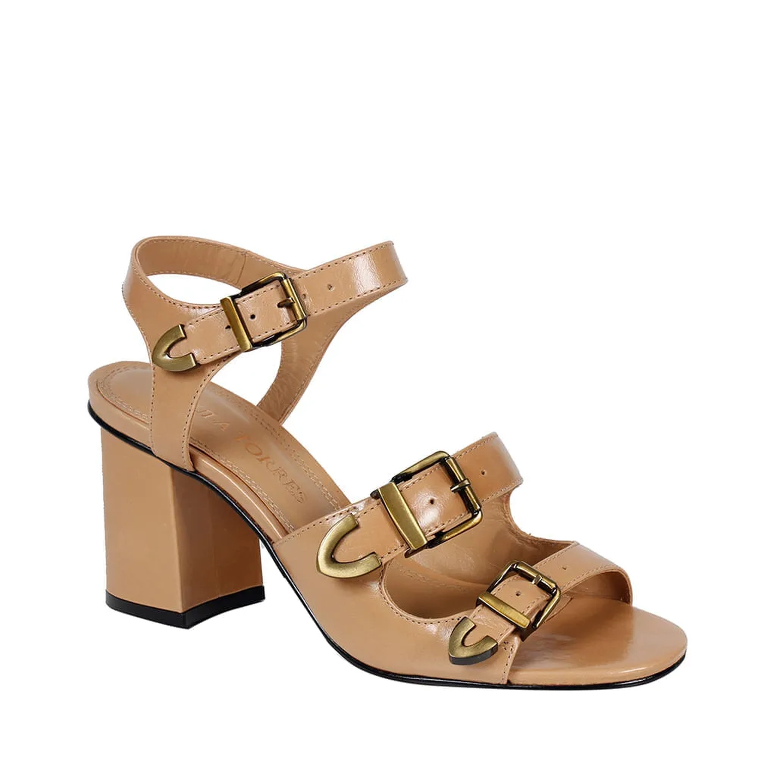 A Sandália Betina é um calçado elegante e versátil, confeccionado em couro com acabamento em caseína. A construção do cabedal da sandália é composto por três tiras médias em couro com aplicação de fivelas em ouro velho escovado com ponteira, permitindo ajuste personalizado para maior conforto ao usar. Ela tem salto bloco de tamanho médio com acabamento em specchio dourado, para dar o ar espelhado, e solado laqueado. Por conta de sua altura, ele proporciona conforto durante o uso prolongado, sem comprometer o estilo. Um modelo sofisticado e feminino.