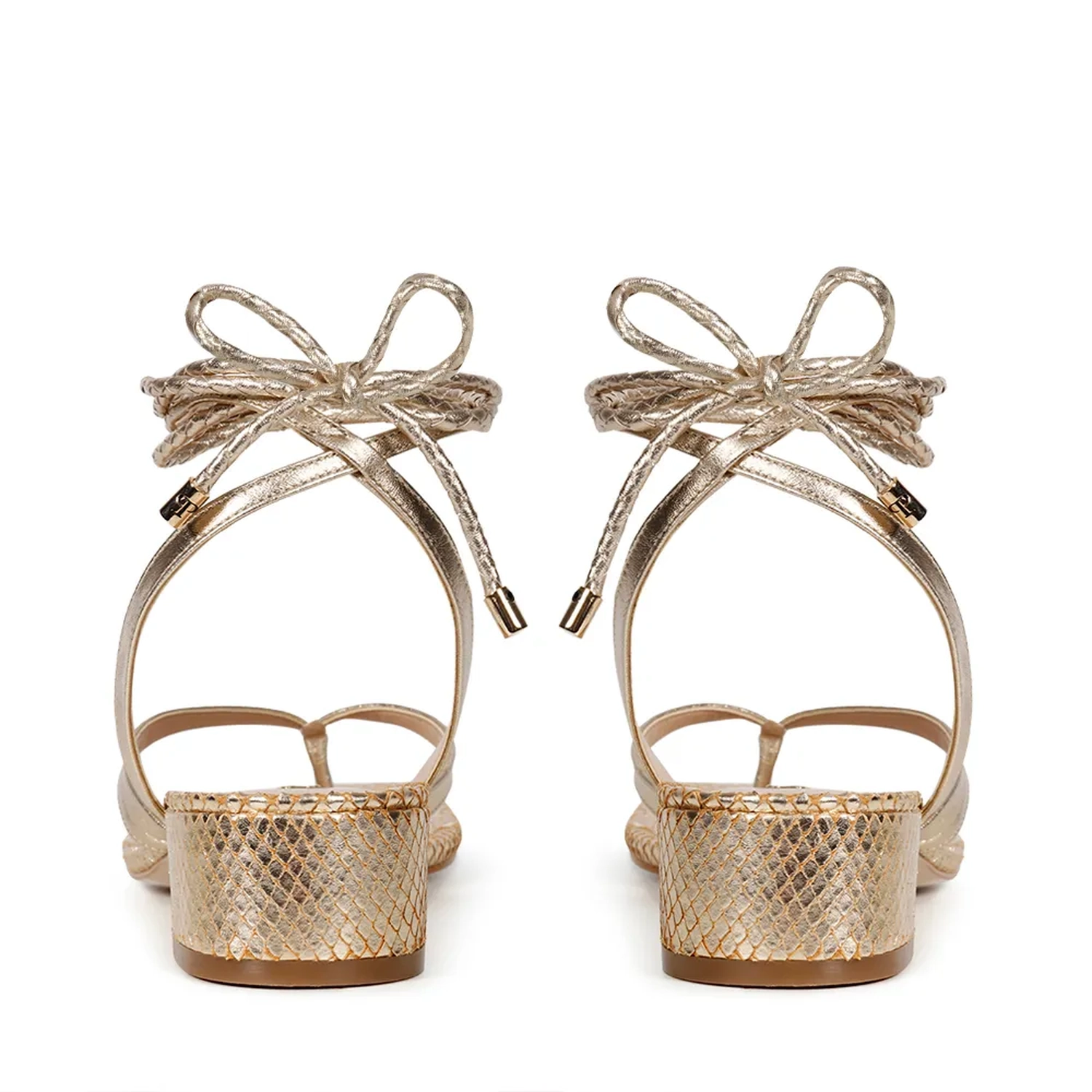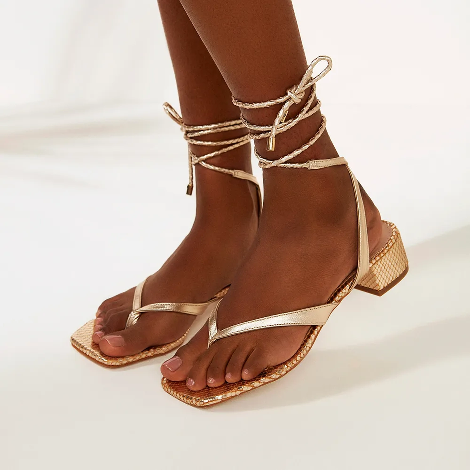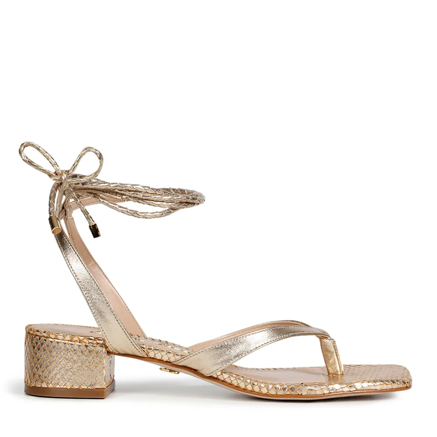 A Sandália Bia é confeccionada em couro. Modelagem em bico quadrado e salto bloco. Base e salto com estampa mini lezard. Cabeda com tiras de finas de couro. Fechamento por amarração. Proposta descontraída com muito estilo para este Verão 22!