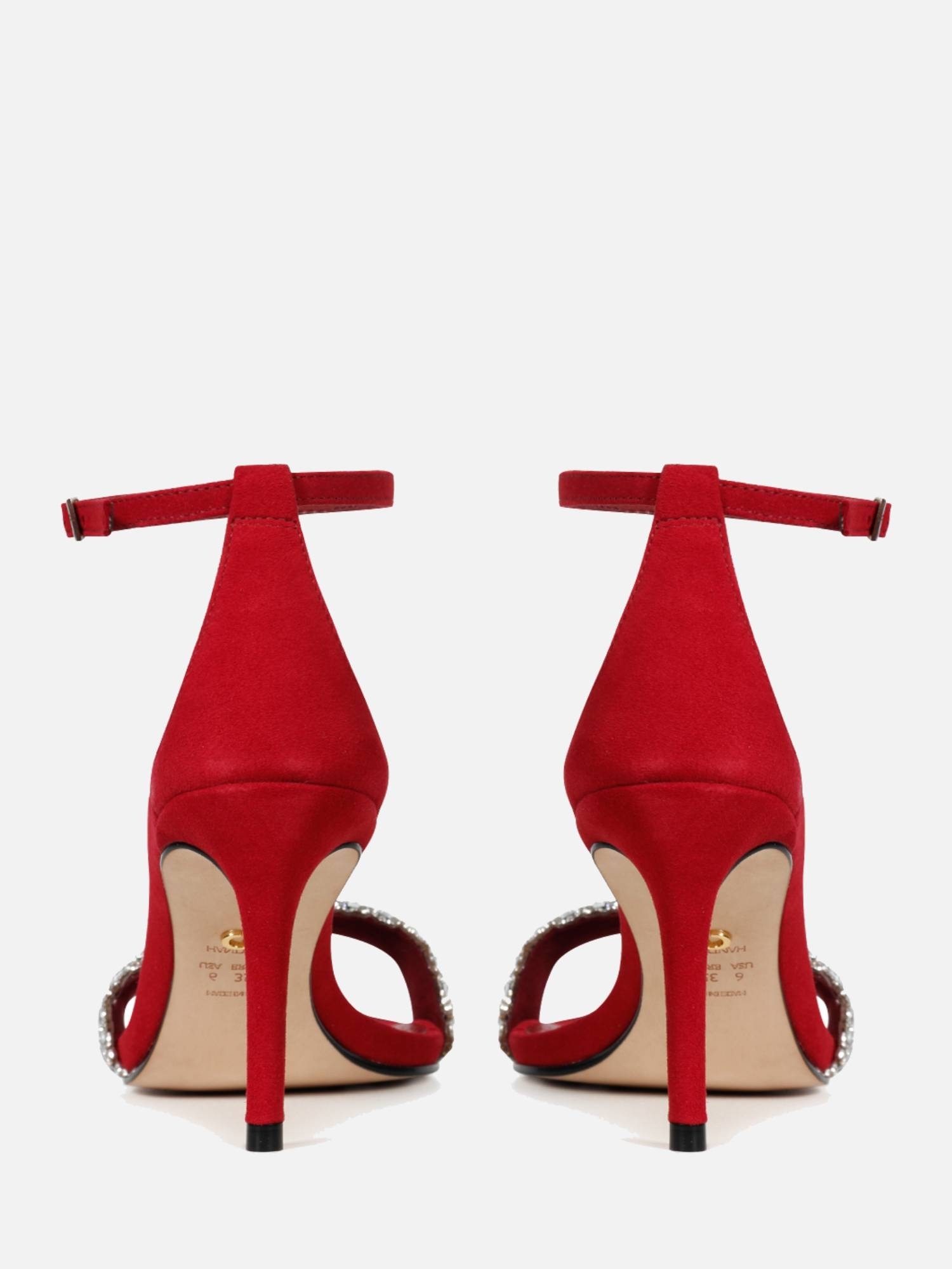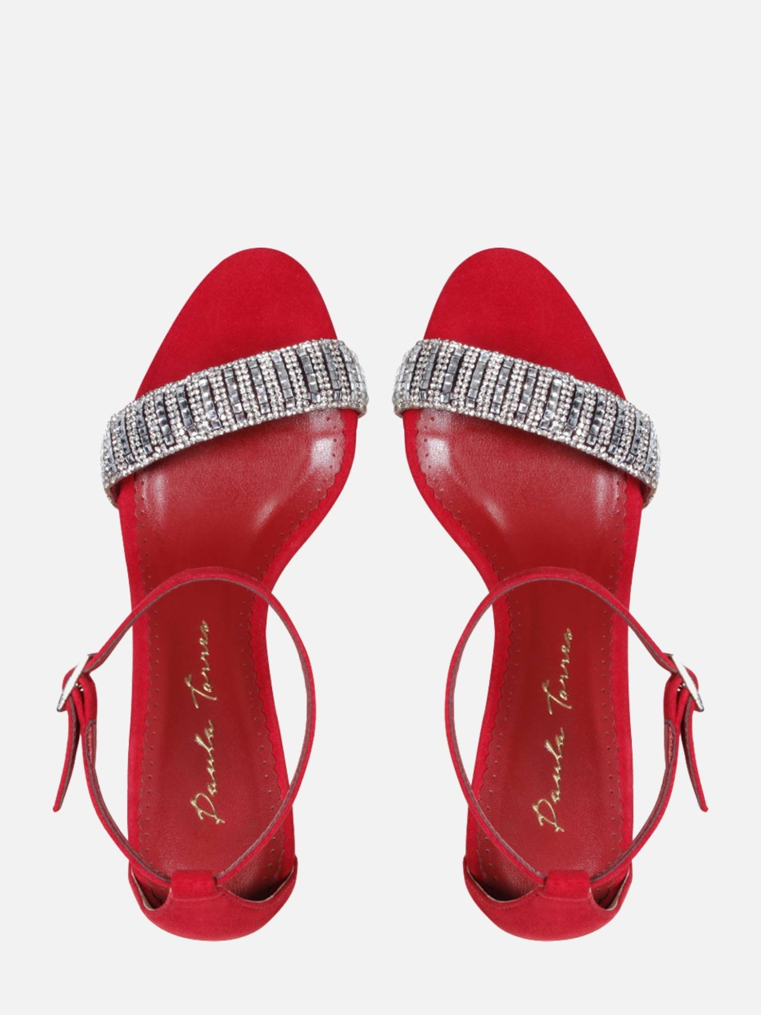 A Sandália Celine é confeccionada em couro. Modelagem clássica, em bico redondo e salto fino, fechamento lateral por fivela no tornozelo. A peça destaca glamour e sofisticação através da combinação da camurça em contraponto a aplicação de malha em pedraria na tira central do cabedal. Elegante e atemporal, carregando o DNA Paula Torres.