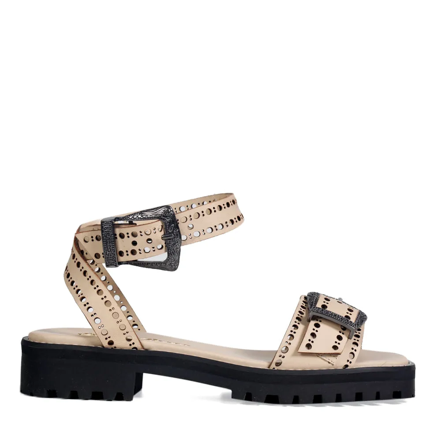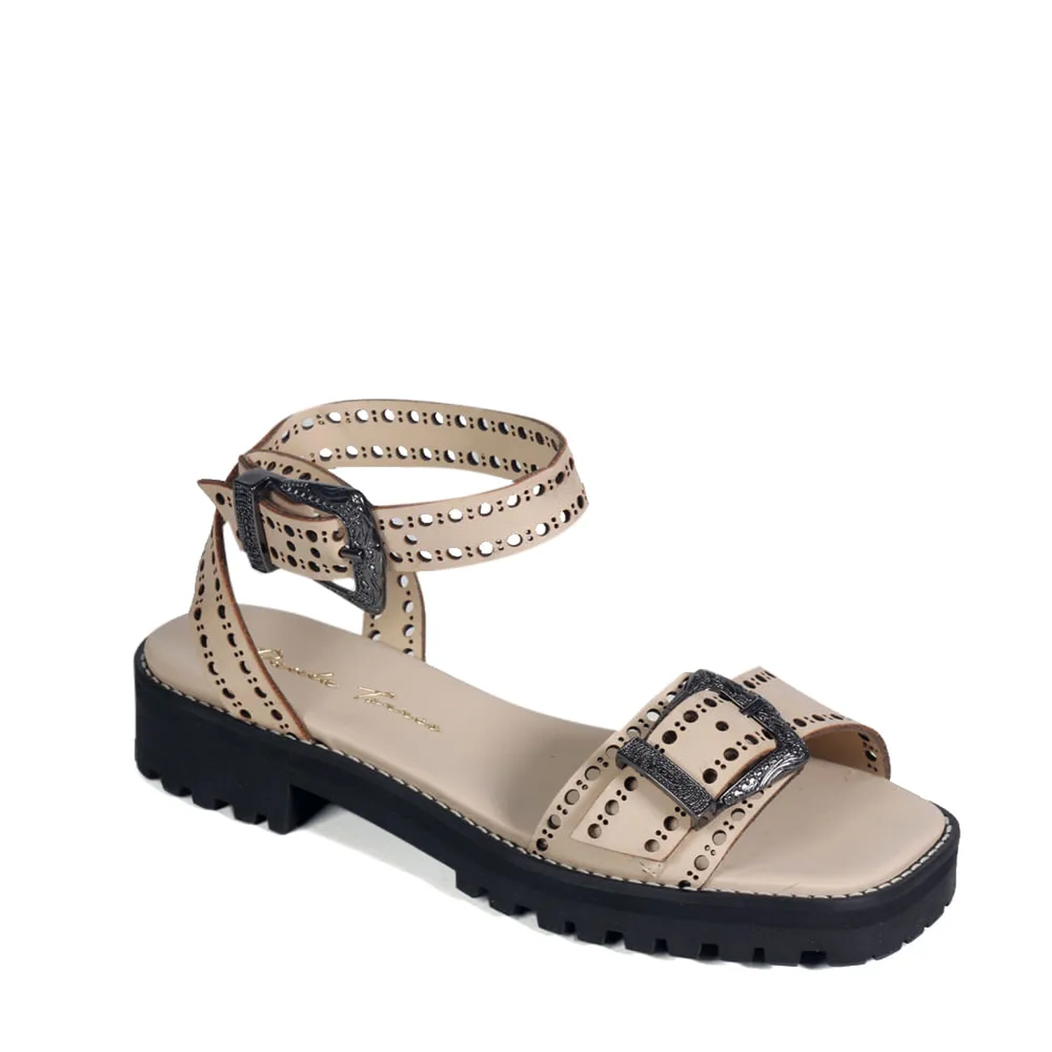 A Sandália Dallas é confeccionada em couro e apresenta uma modelagem moderna em bico quadrado levemente arredondado nas extremidades. O solado tratorado cria uma estética western única, e o salto robusto harmoniza com as tiras largas que compõem o cabedal. O couro e a fivela trabalhada tornam o modelo estiloso e confortável.