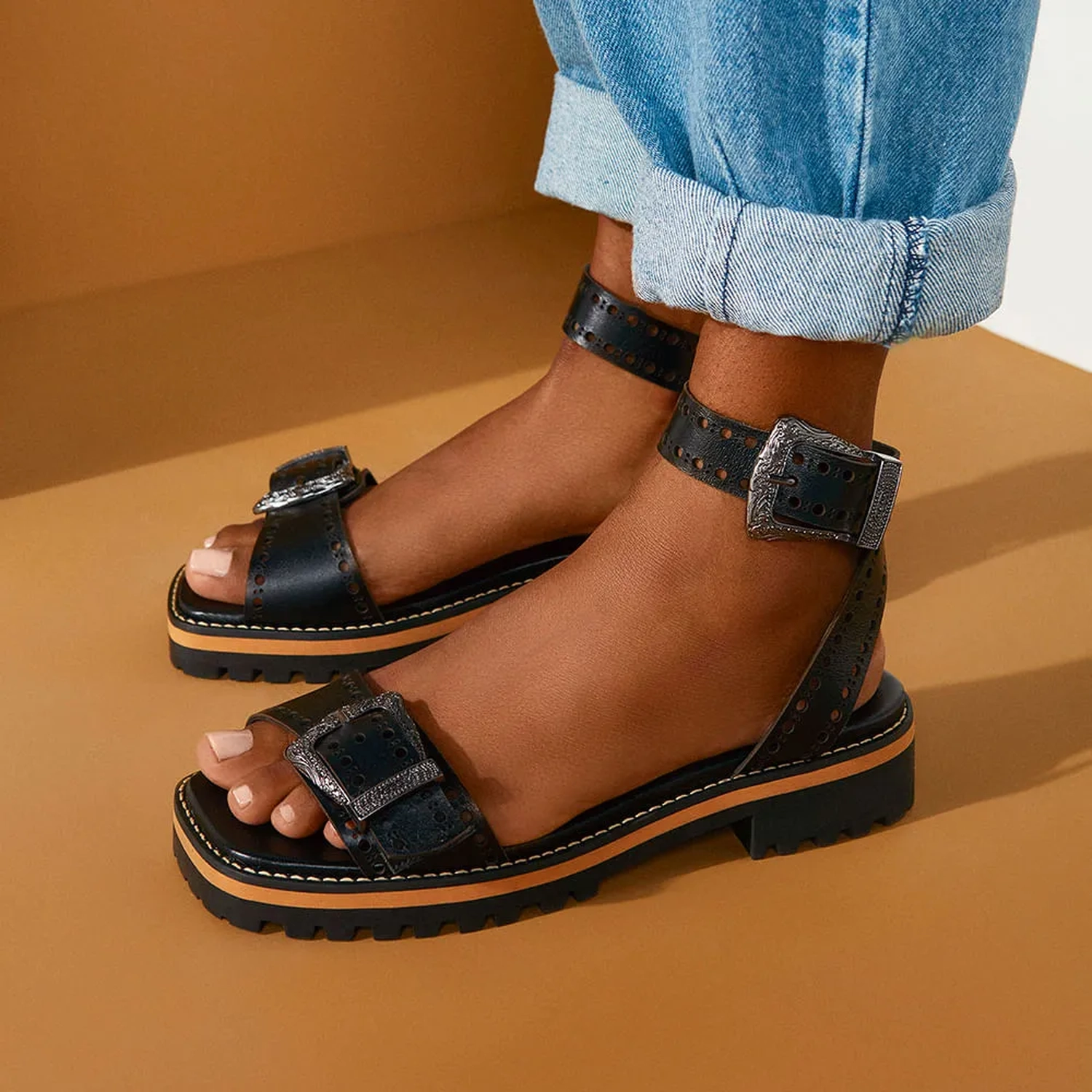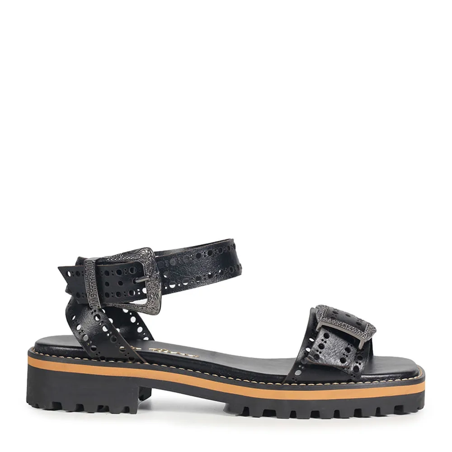 A Sandália Dallas é confeccionada em couro e apresenta uma modelagem moderna em bico quadrado levemente arredondado nas extremidades. O solado tratorado cria uma estética western única, e o salto robusto harmoniza com as tiras largas que compõem o cabedal. O couro e a fivela trabalhada tornam o modelo estiloso e confortável.
