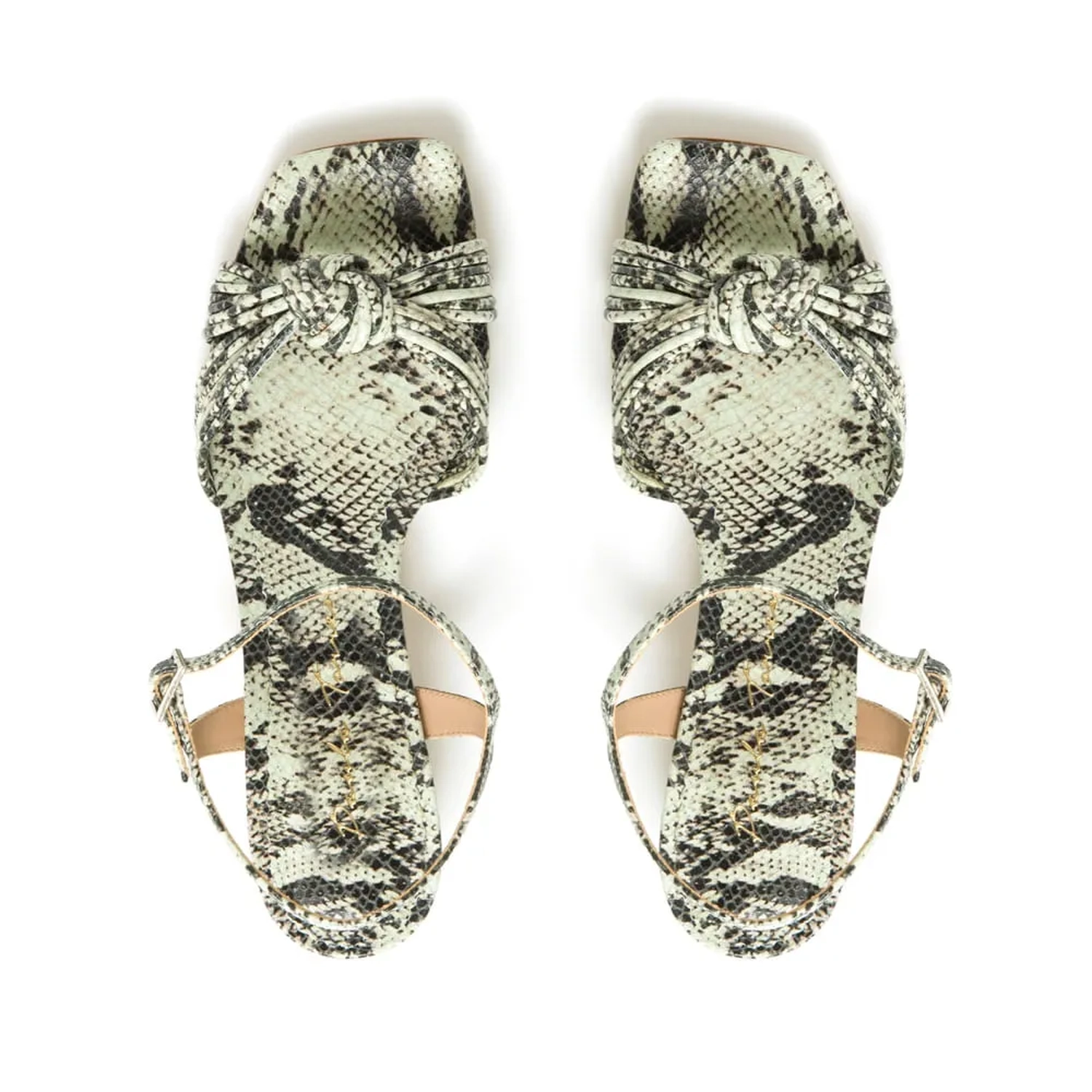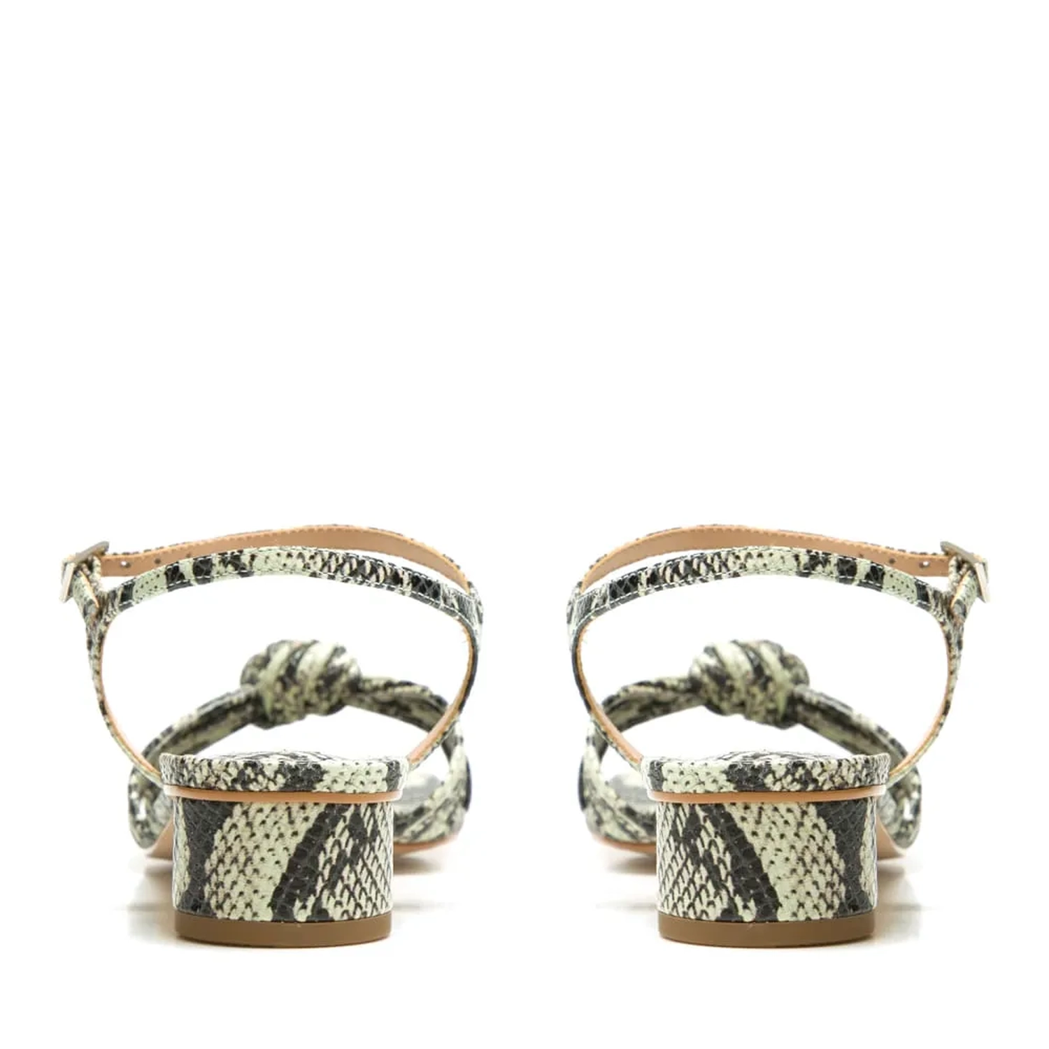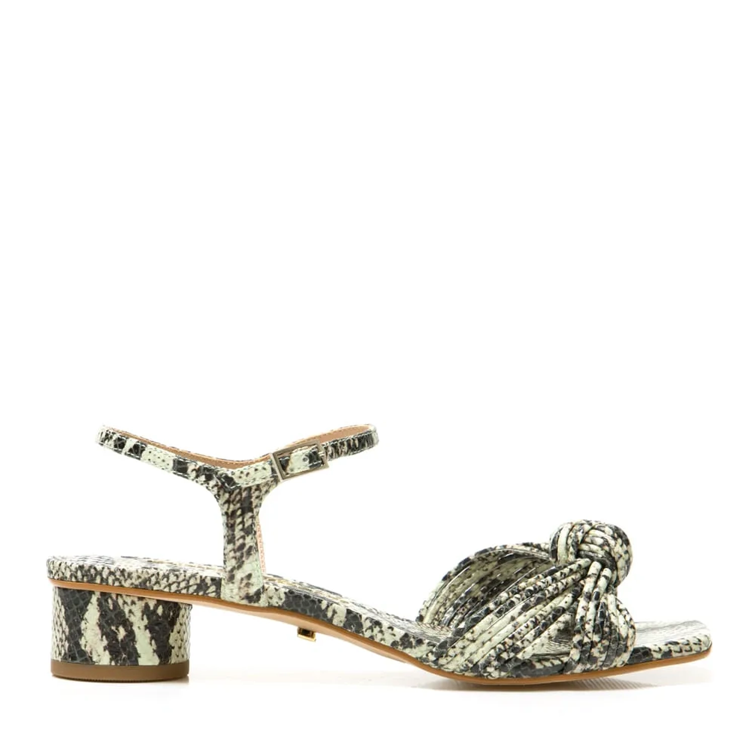 A Sandália Dara é confecionada em couro com print de cobra. A peça de modelagem clássica ganha personalidade com um cabedal em múltiplas tiras com detalhe em nó superior, salto bloco em formato redondo e fechamento por fivela lateral. Aposte!!!