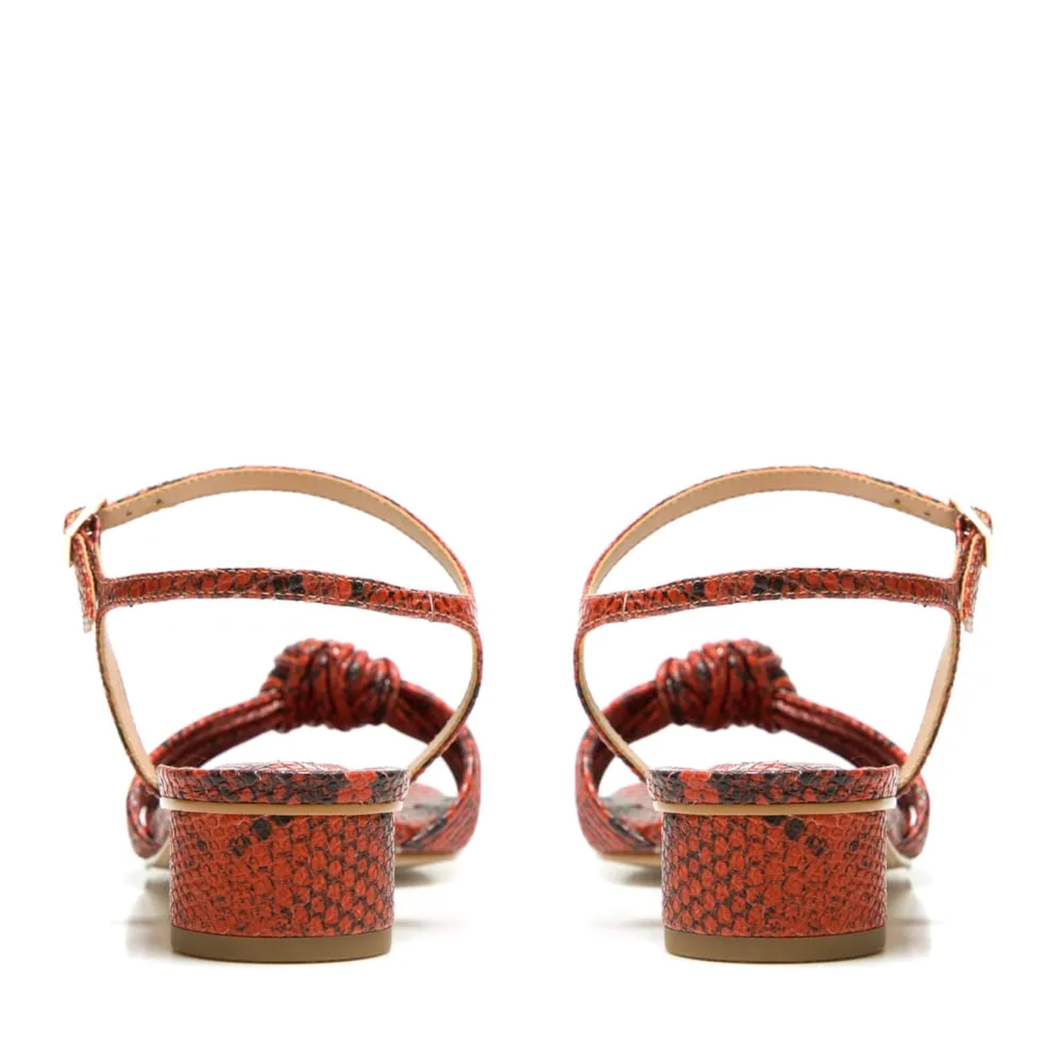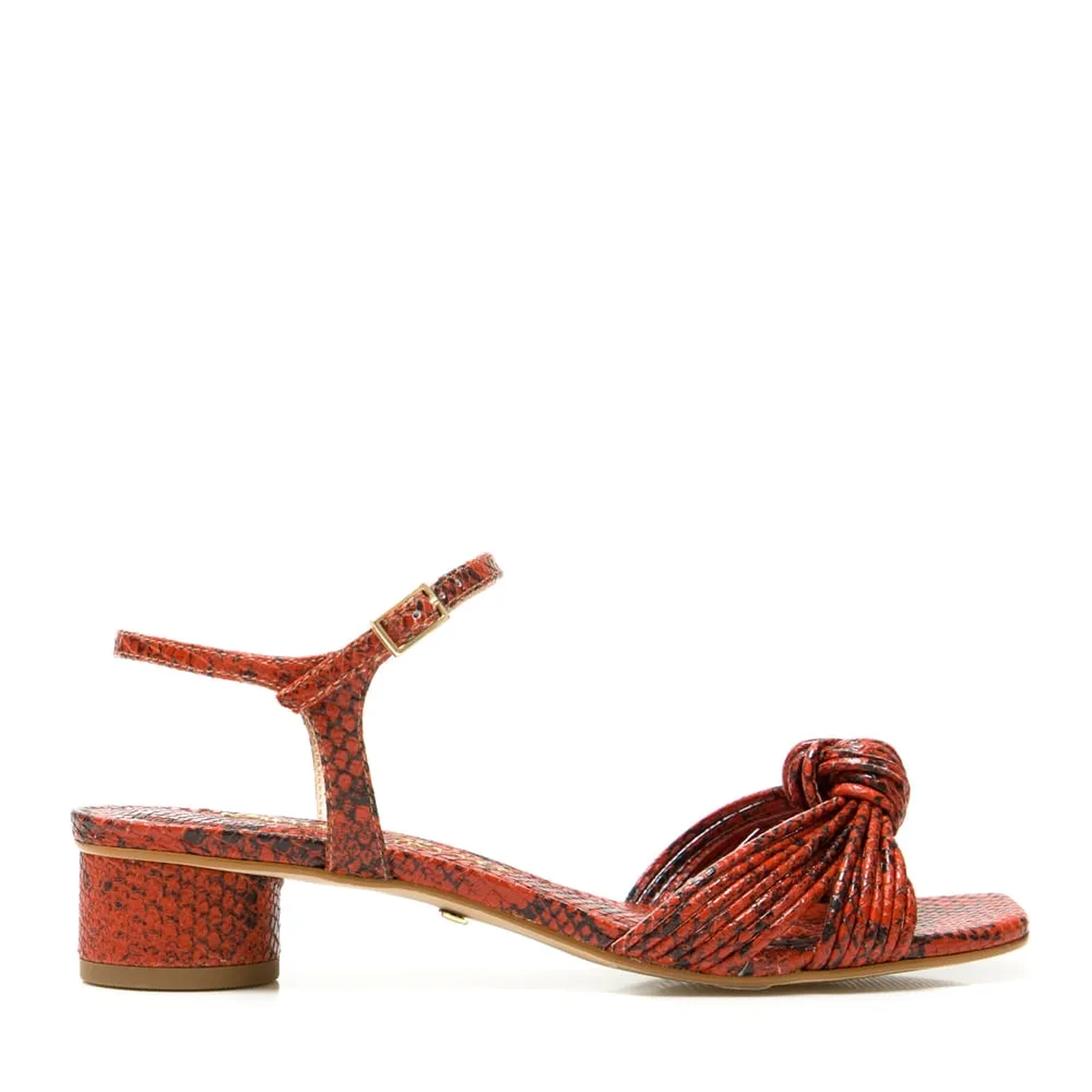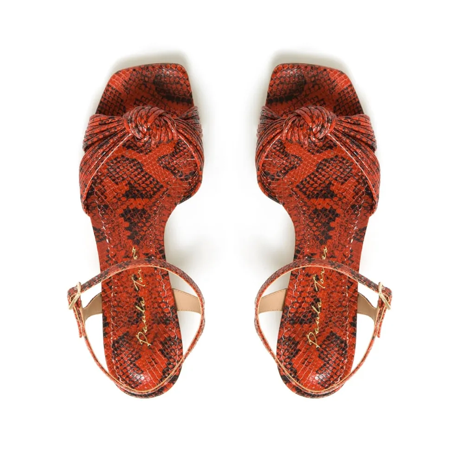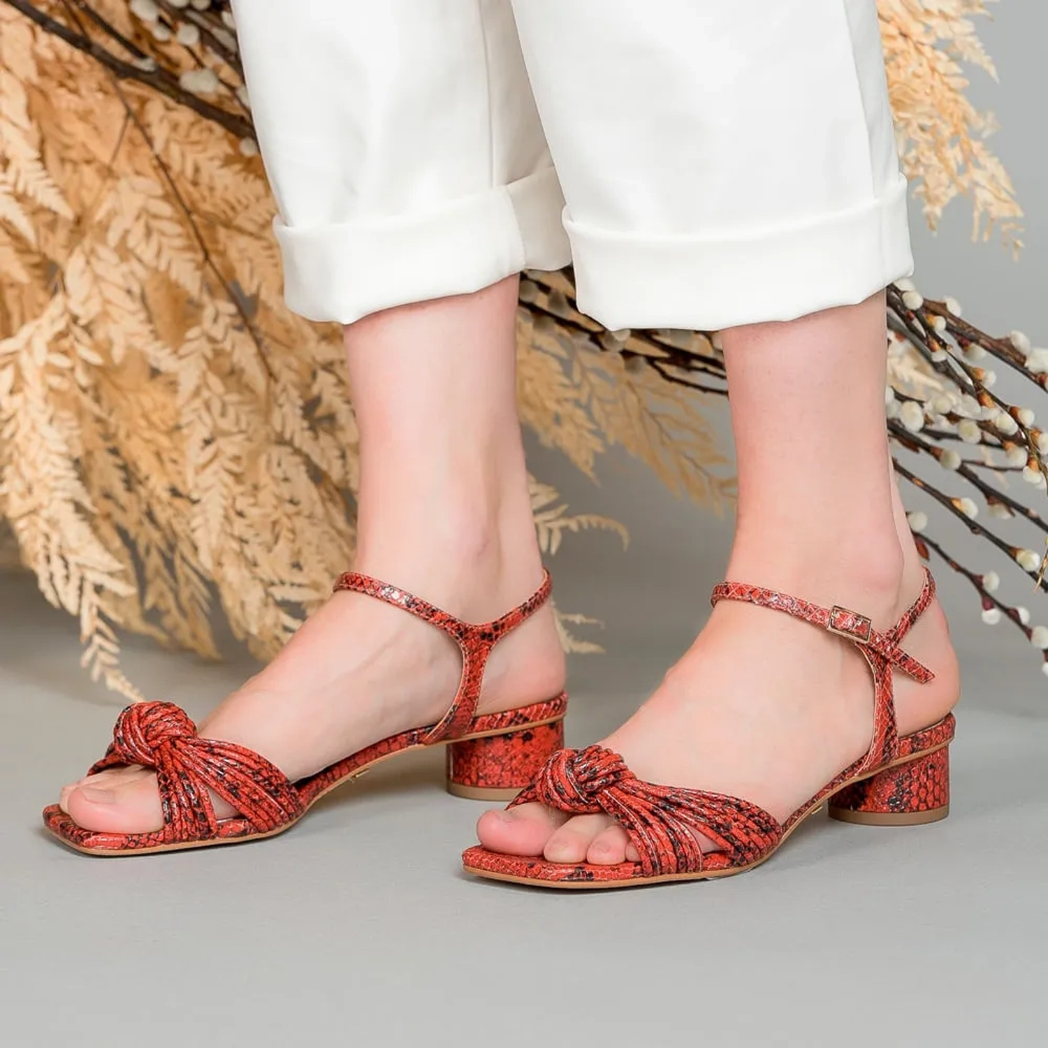 A Sandália Dara é confecionada em couro com print de cobra. A peça de modelagem clássica ganha personalidade com um cabedal em múltiplas tiras com detalhe em nó superior, salto bloco em formato redondo e fechamento por fivela lateral. Aposte!!!