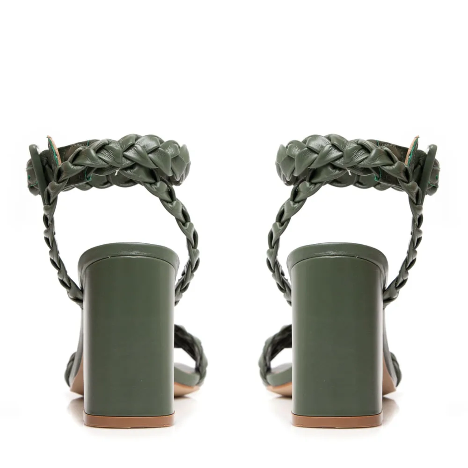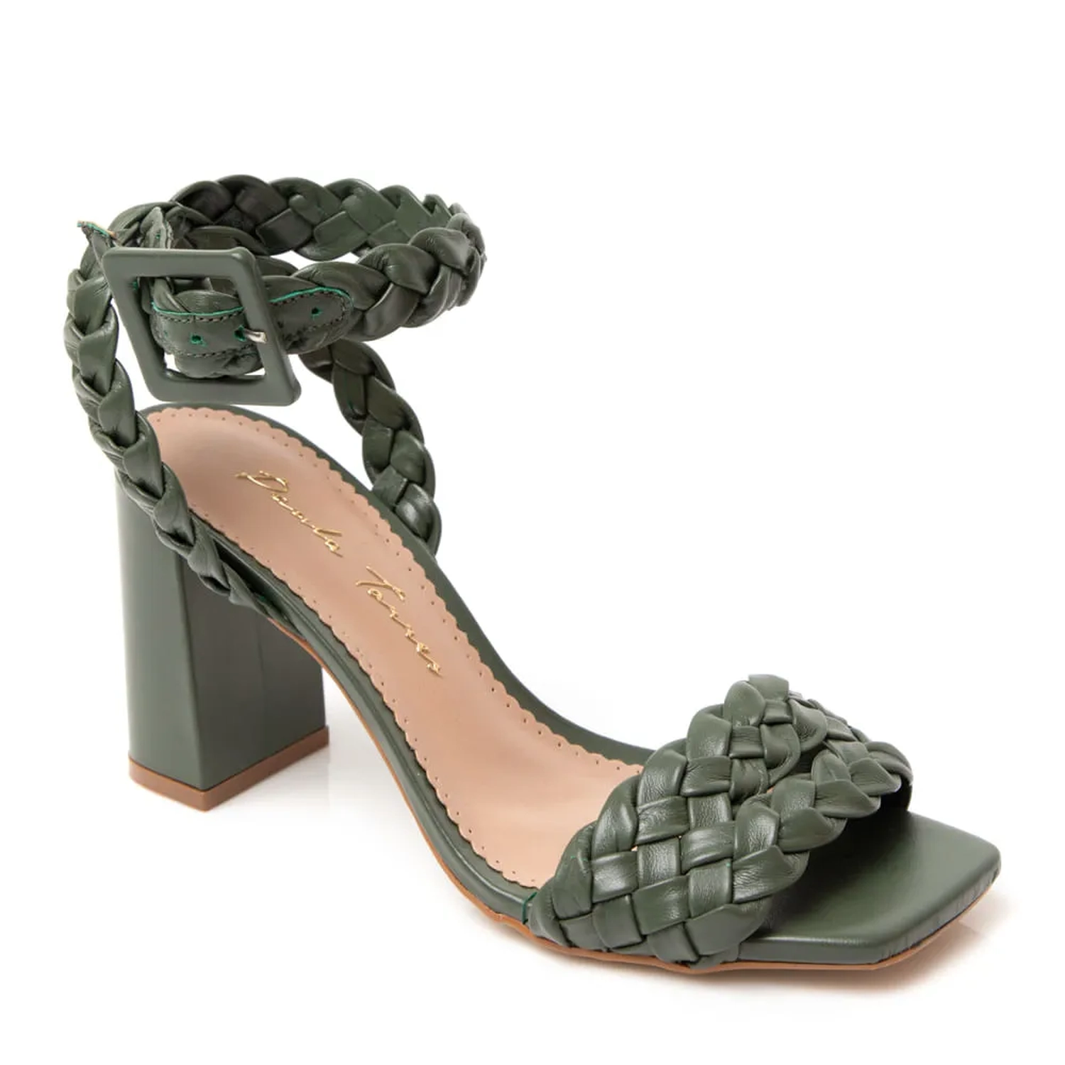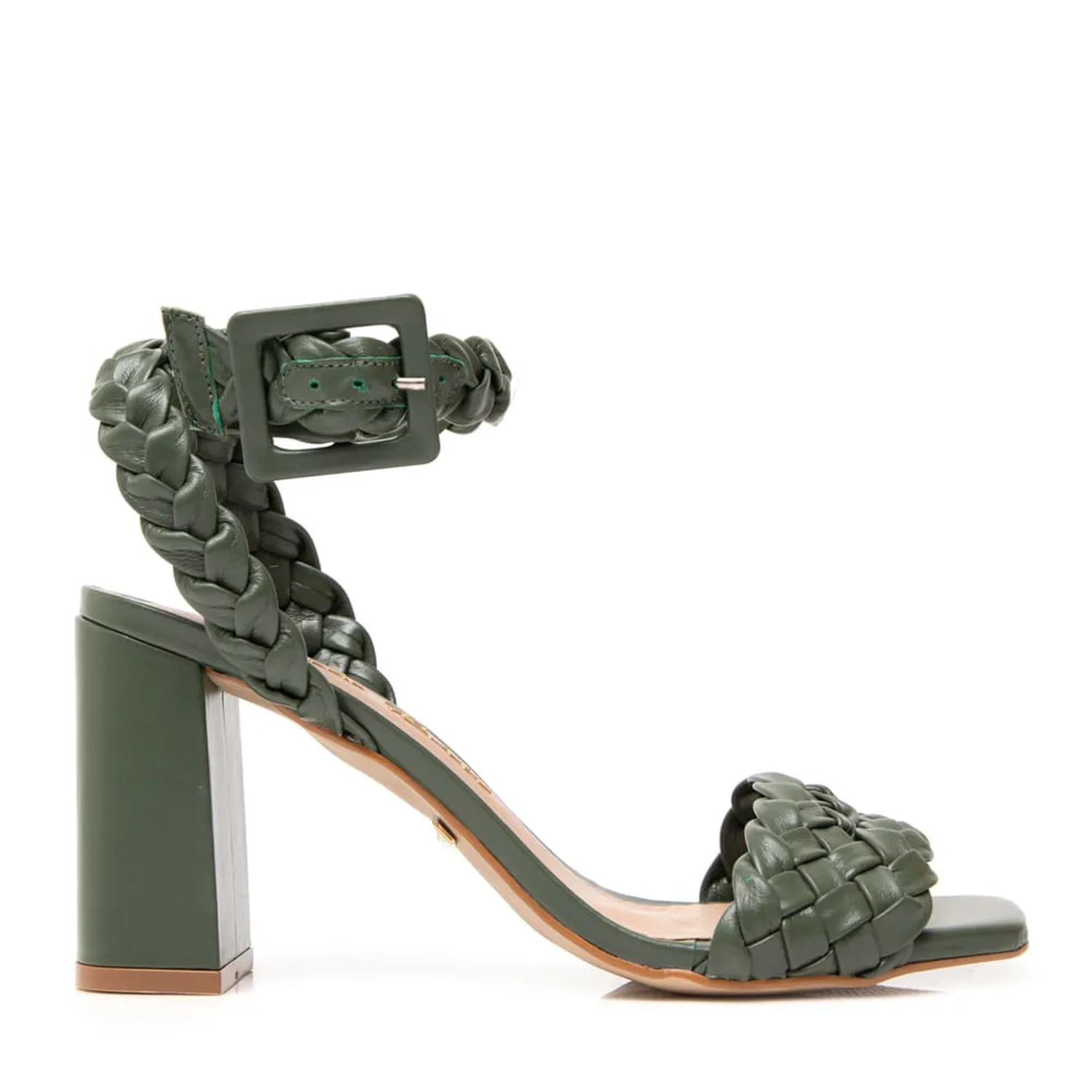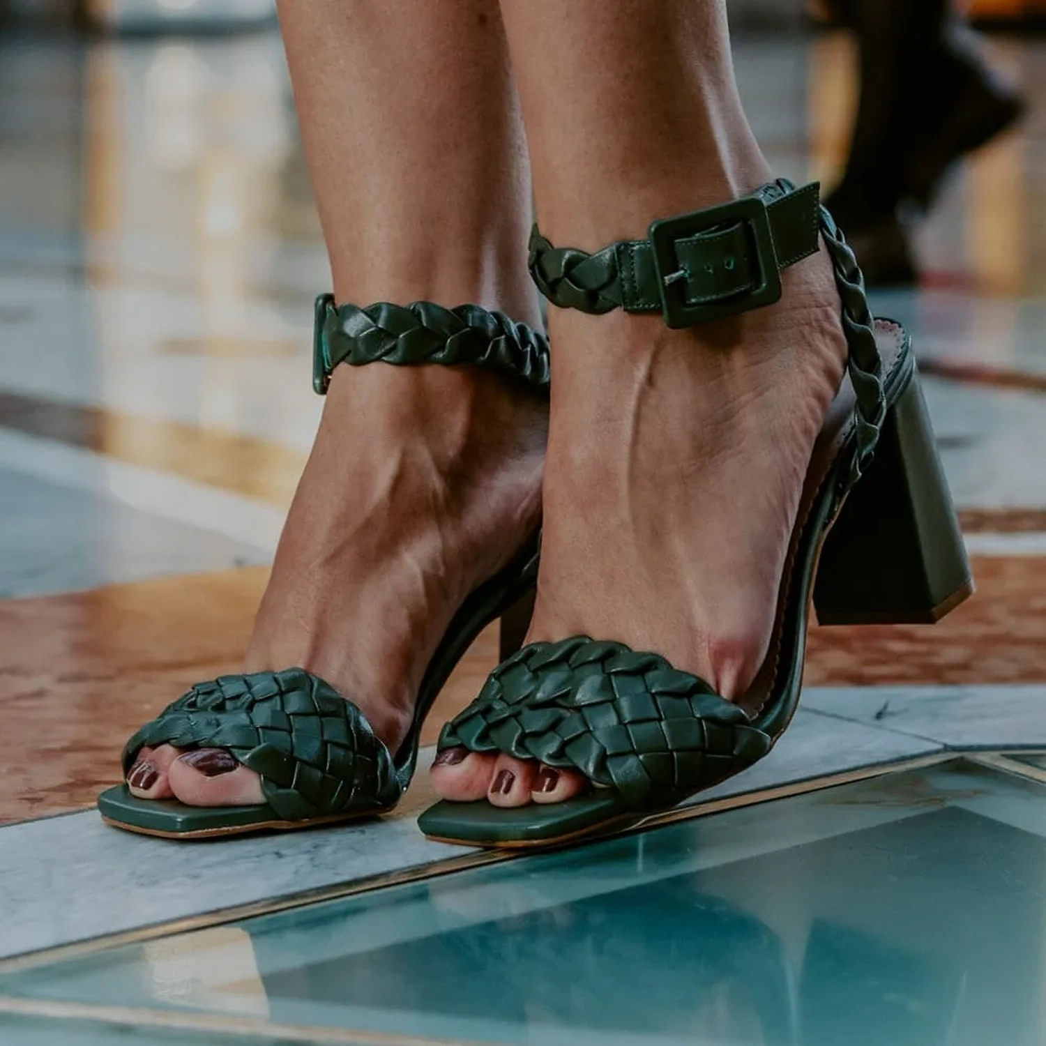 Aquele modelo de sandália que amamos! Salto alto e bloco, extremamente confortável. Pra completar, tiras largas trançadas com a fivela para fechar, o que dá todo o charme e diferencial para a sandália. Perfeita para usar no dia-a-dia, no trabalho e em ocasiões especiais. ;) Cor: Verde Salto: 9.0 CM