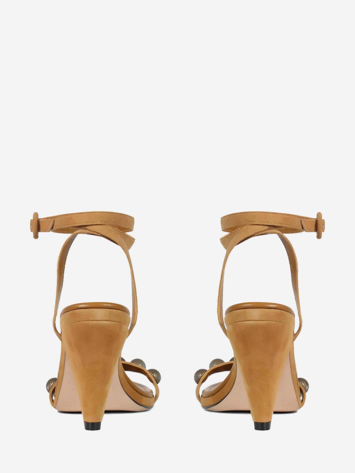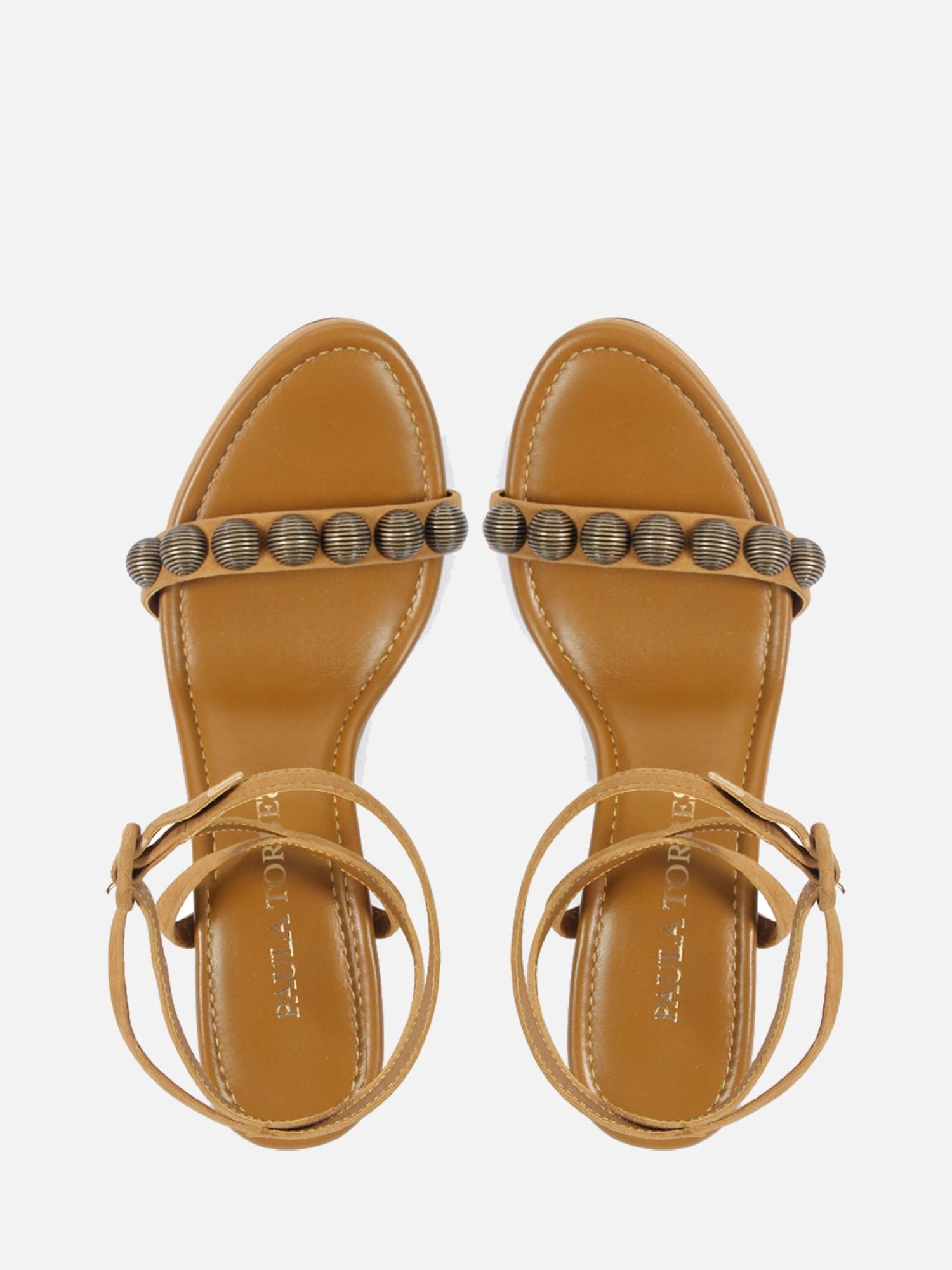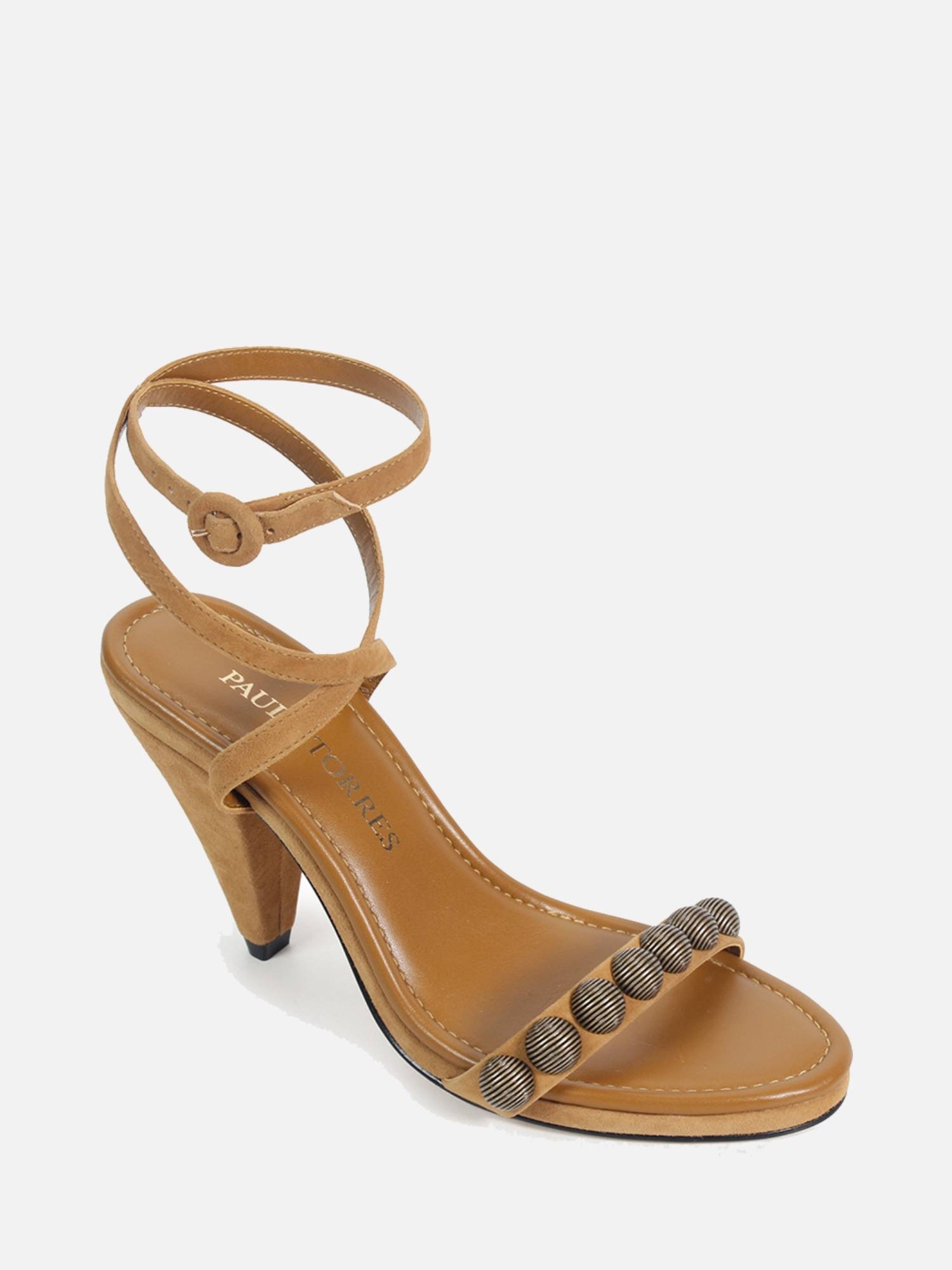 A Sandália Espanha é um calçado feminino sofisticado, confeccionado em camurça. Seu bico arredondado oferece conforto e elegância, e o salto médio cone é ideal para o dia a dia. A tira em camurça com metais esféricos rajados adiciona um toque de estilo ao calçado, e a palmilha pespontada oferece ainda mais conforto. O detalhe de tira de fechamento envolta do calcanhar e tornozelo confere segurança e estabilidade à sandália.