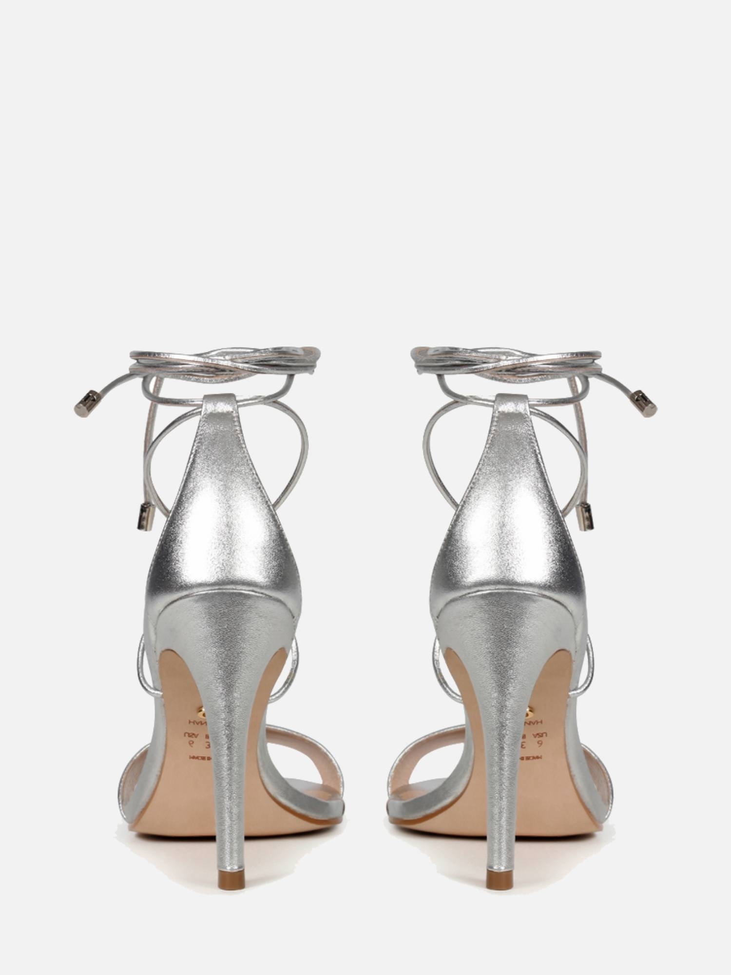 A Sandália Filipa é confeccionada em couro. Modelagem clássica, em bico redondo e salto fino, com fechamento por amarração no tornozelo. A peça destaca glamour e sofisticação através do metalizado e as delicadas tiras que formam o cabedal. Elegante e atemporal, carregando o DNA Paula Torres.