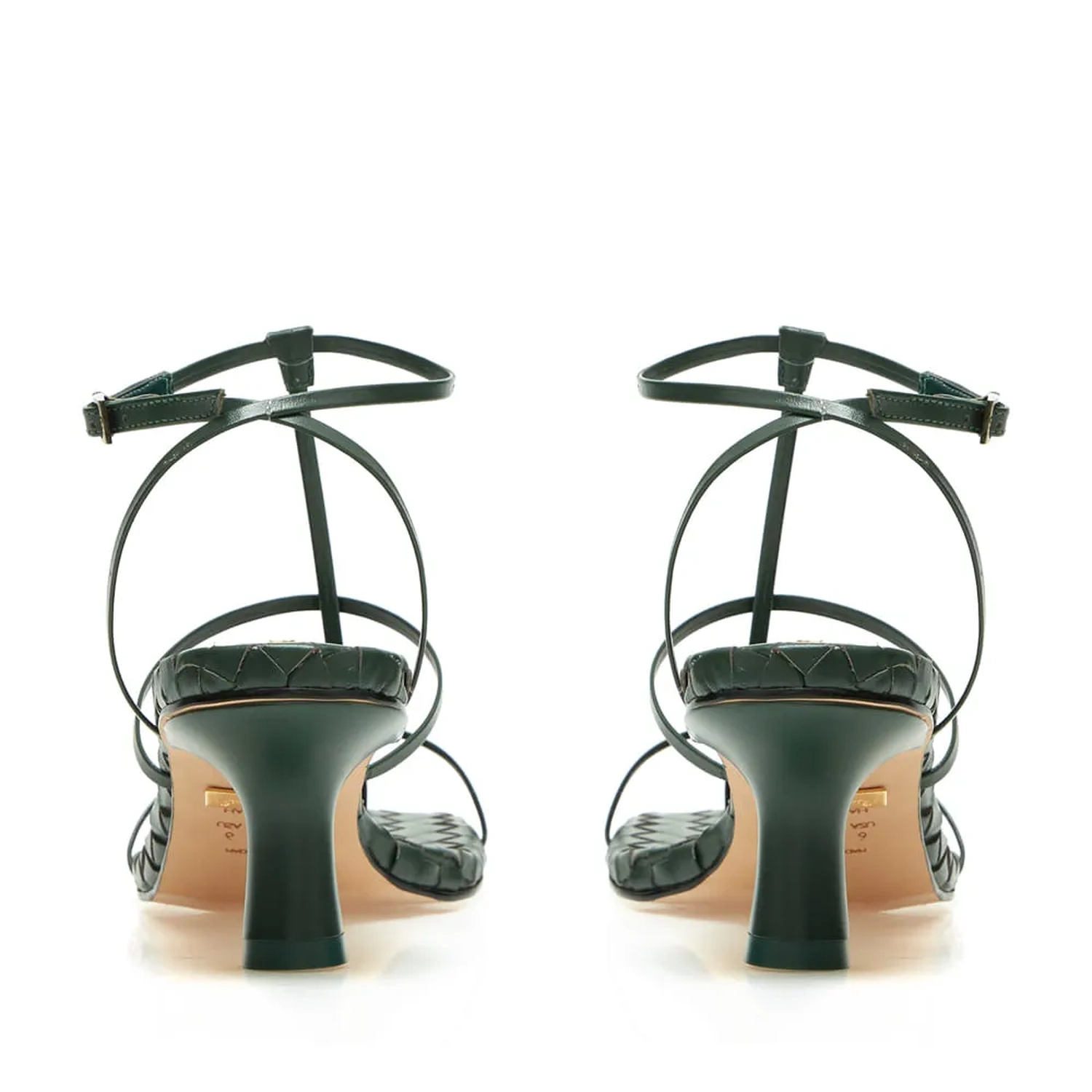 A Sandália Florença traz forte a identidade da Paula Torres com o tresse manual em toda sua palmilha. O modelo é produzido em couro, na parte superior, tiras finas e fivela para fechamento lateral. Salto médio e fino que acompanha a cor do couro. O bico quadrado deixa qualquer produção elegante e sofisticada.