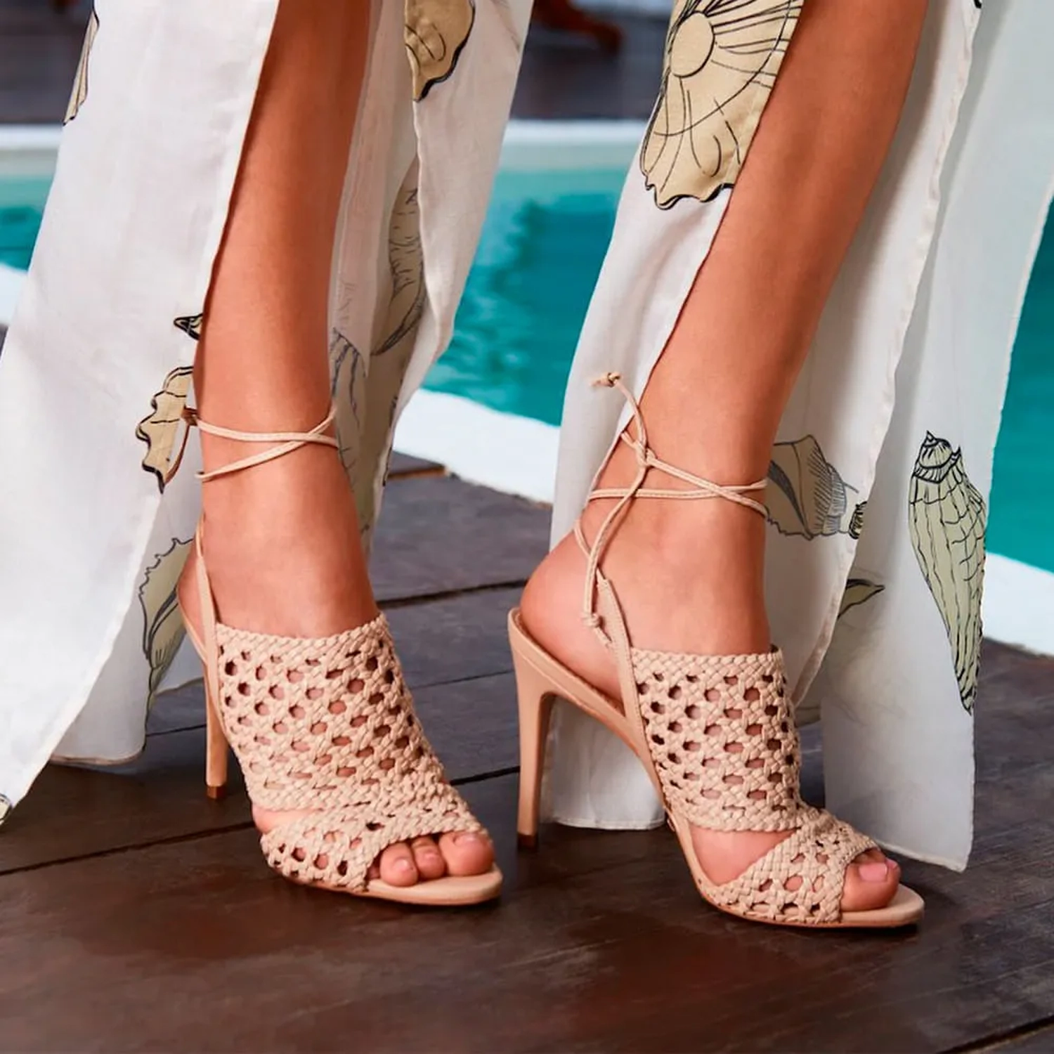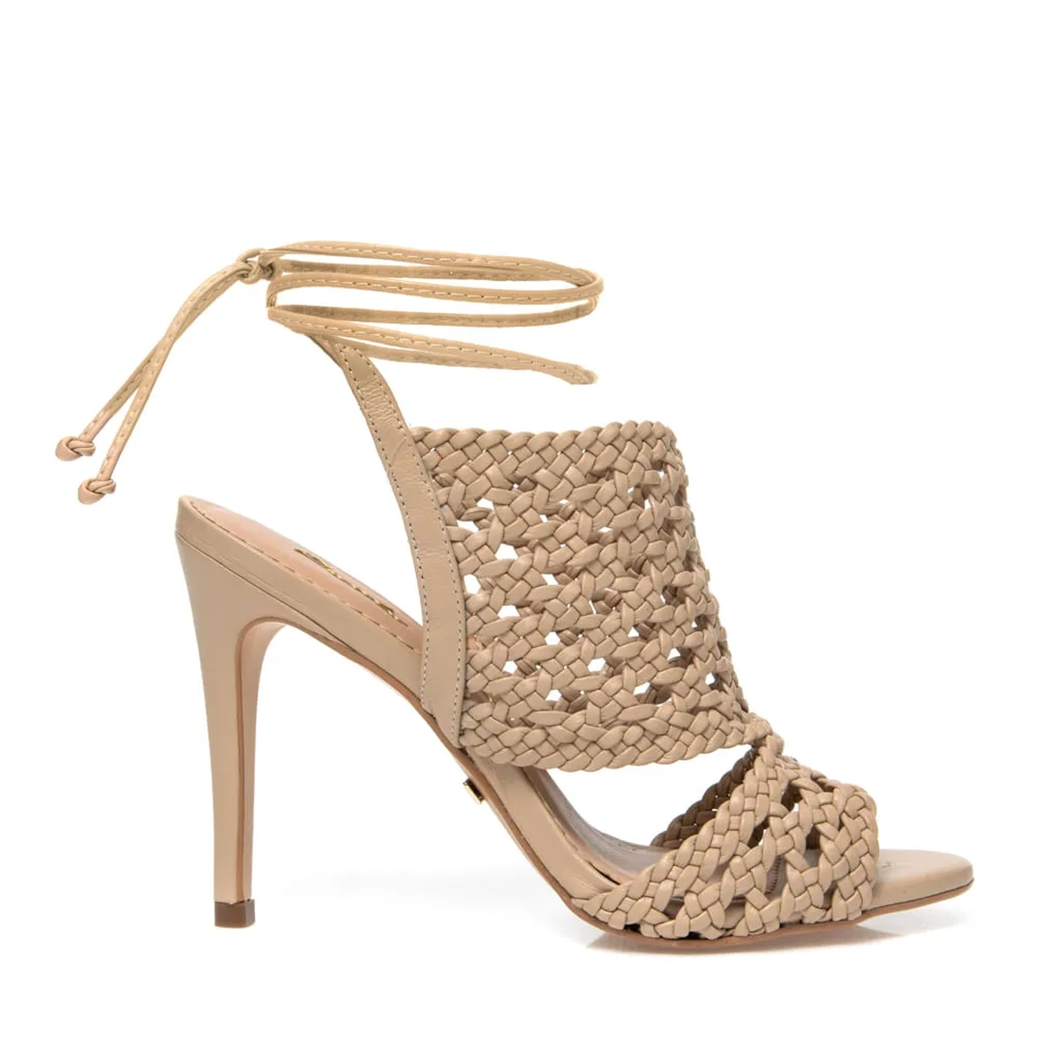 Sandália de couro toda feita com tressê e tira de amarração - um charme a parte! para quem não dispensa um belo par de salto alto, invista na sandália francy para compor seus looks neste verão - fresquinha e super elegante!
