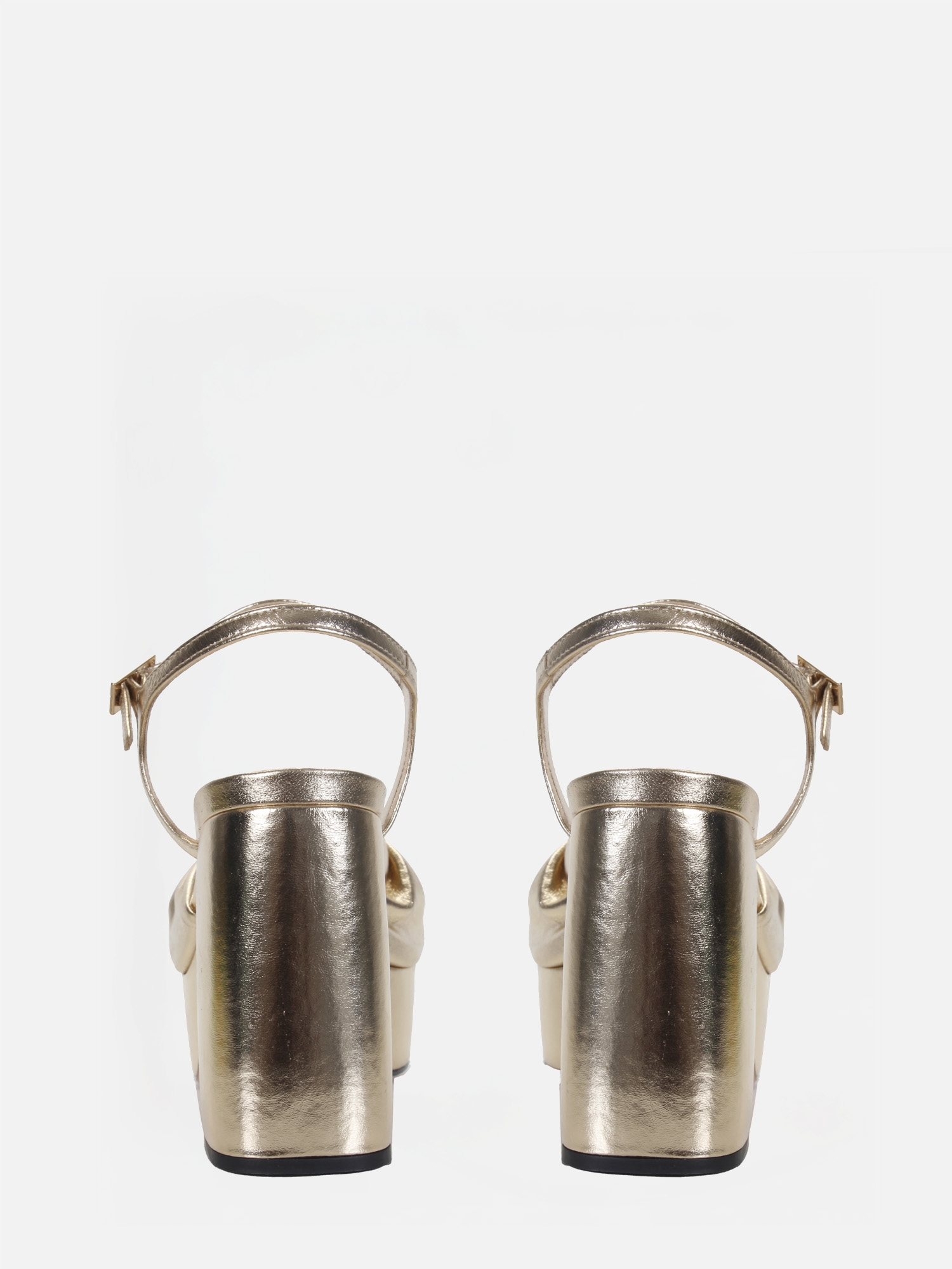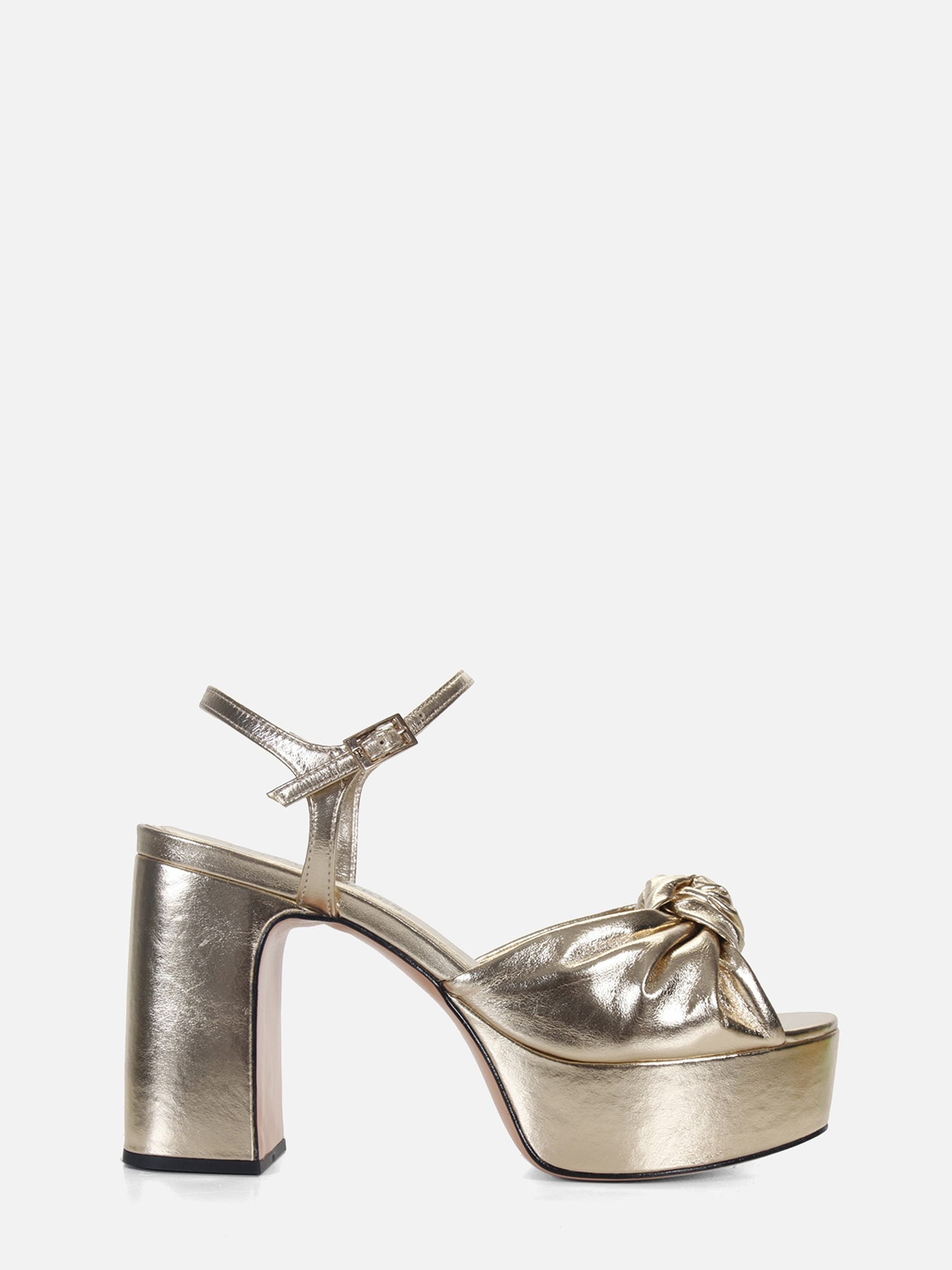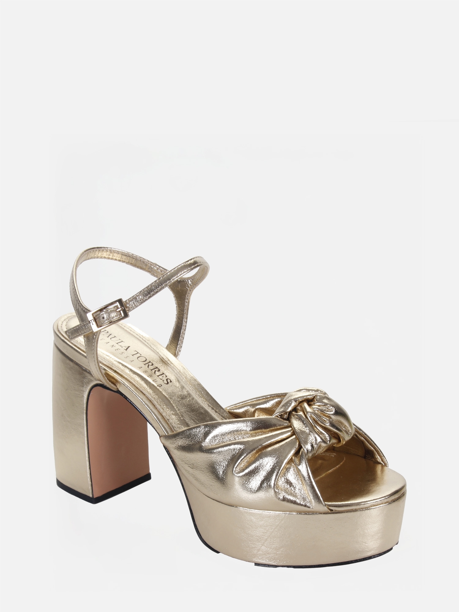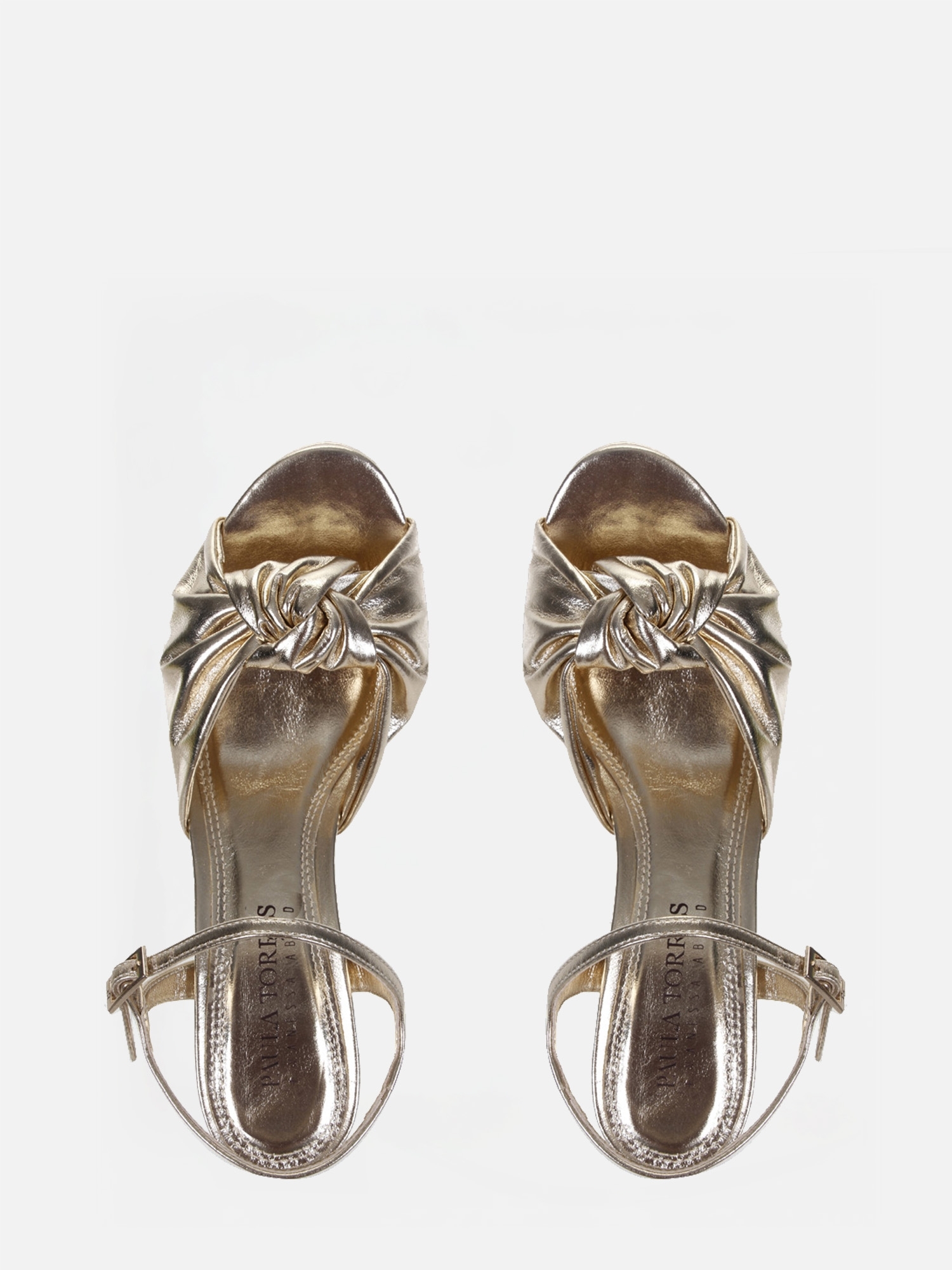 A Sandália Frida é confeccionada em couro metalizado de alta qualidade. O modelo com salto grosso e meia pata foi desenvolvido com menor curvatura, oferecendo mais estabilidade e bem-estar — ideal até para quem não está habituada a usar saltos altos. Sobre os dedos, uma tira larga em couro com um delicado nó central proporciona charme e maior conforto. O fechamento é feito por fivela ajustável no tornozelo, e o solado em couro garante sofisticação e durabilidade à peça.