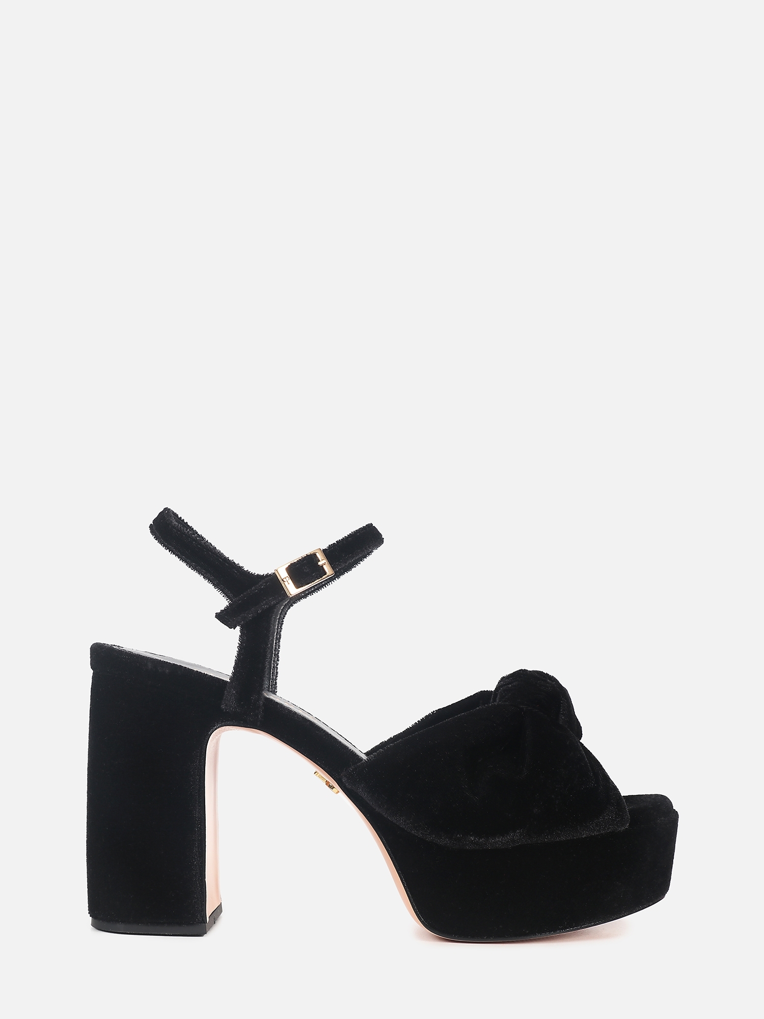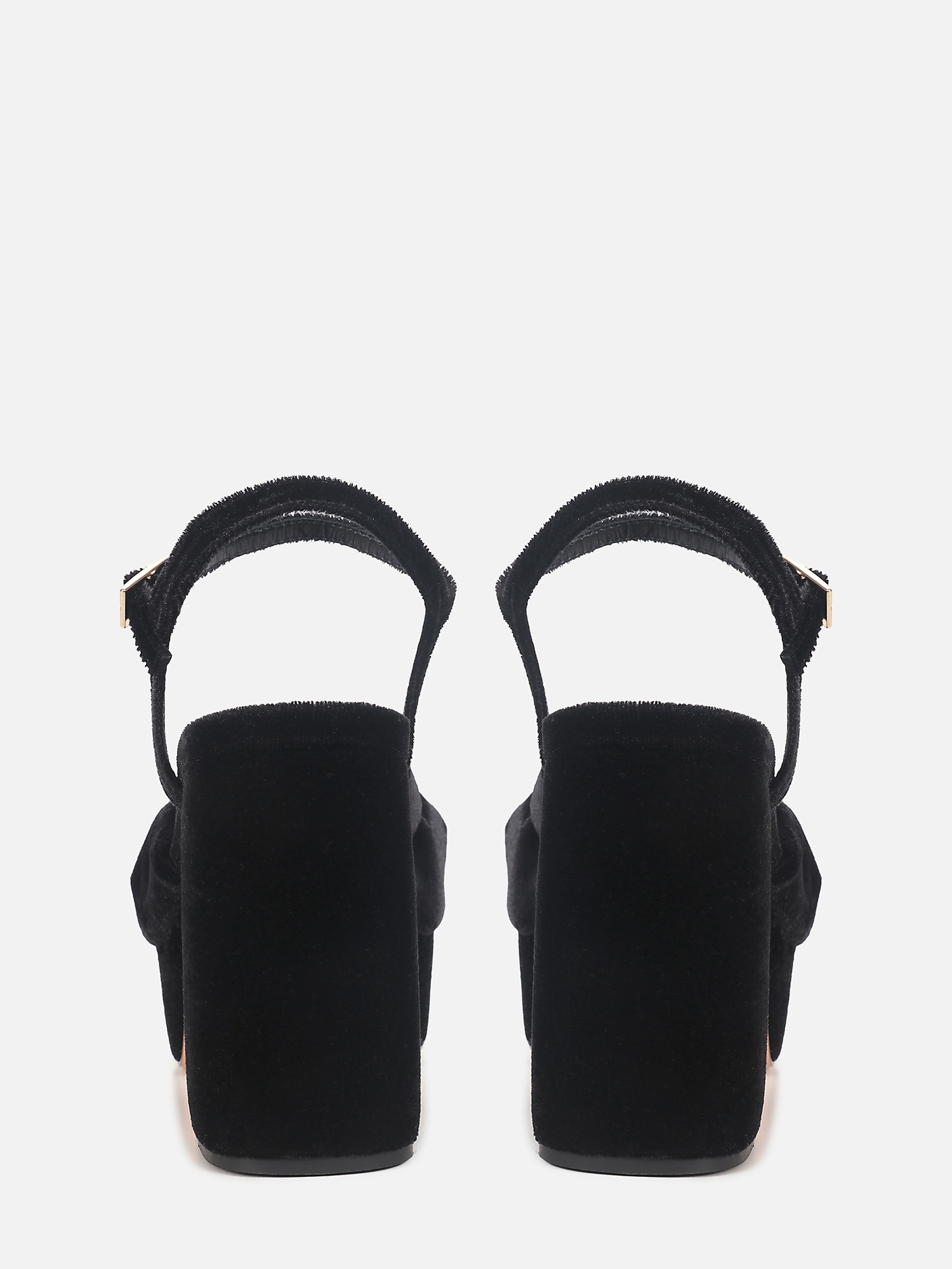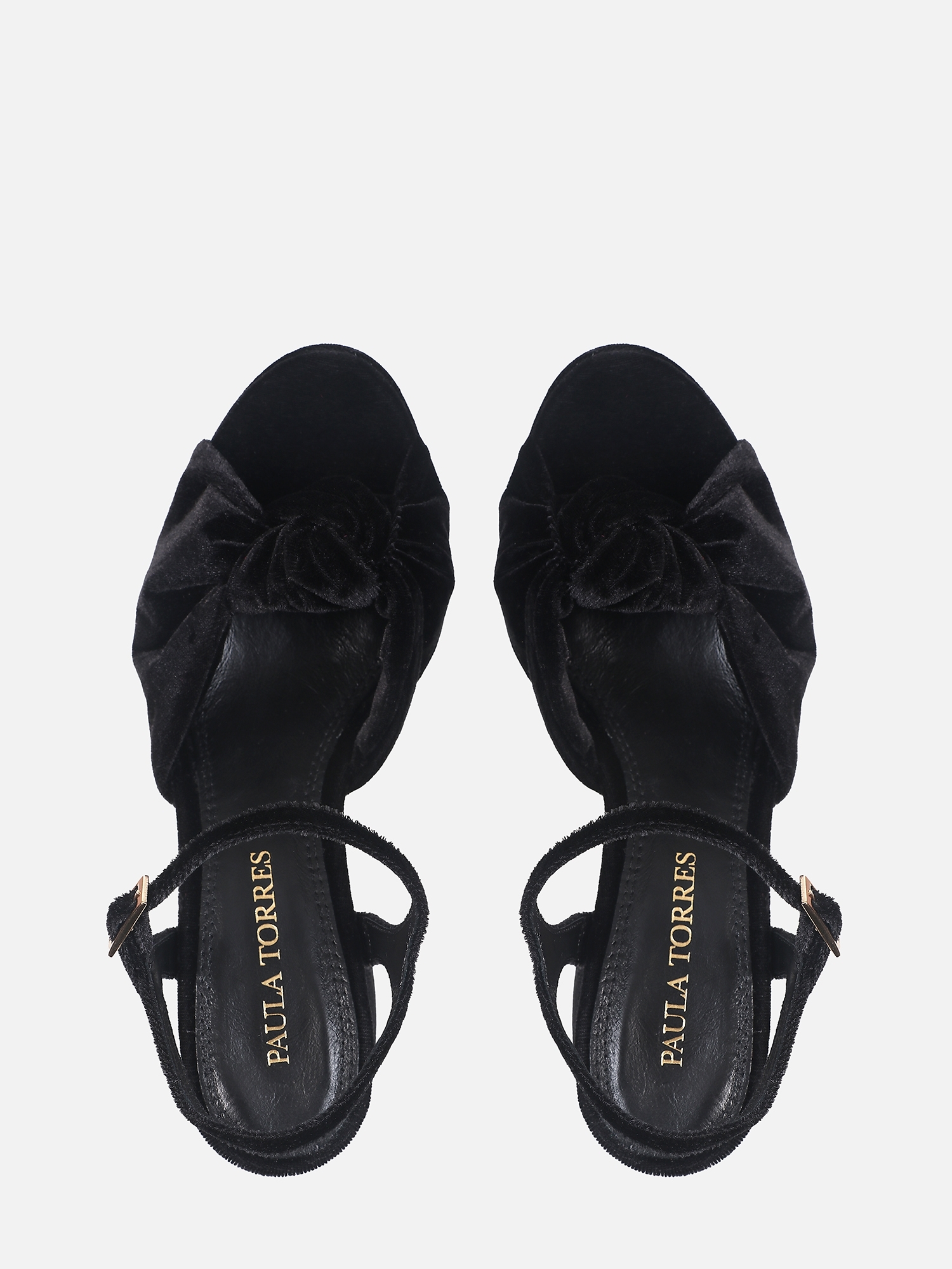 A tira larga em veludo com nó central dessa sandália em veludo preto contribui tanto para o ajuste quanto para o visual, enquanto o fechamento por fivela ajustável no tornozelo garante segurança e melhor adaptação ao pé.