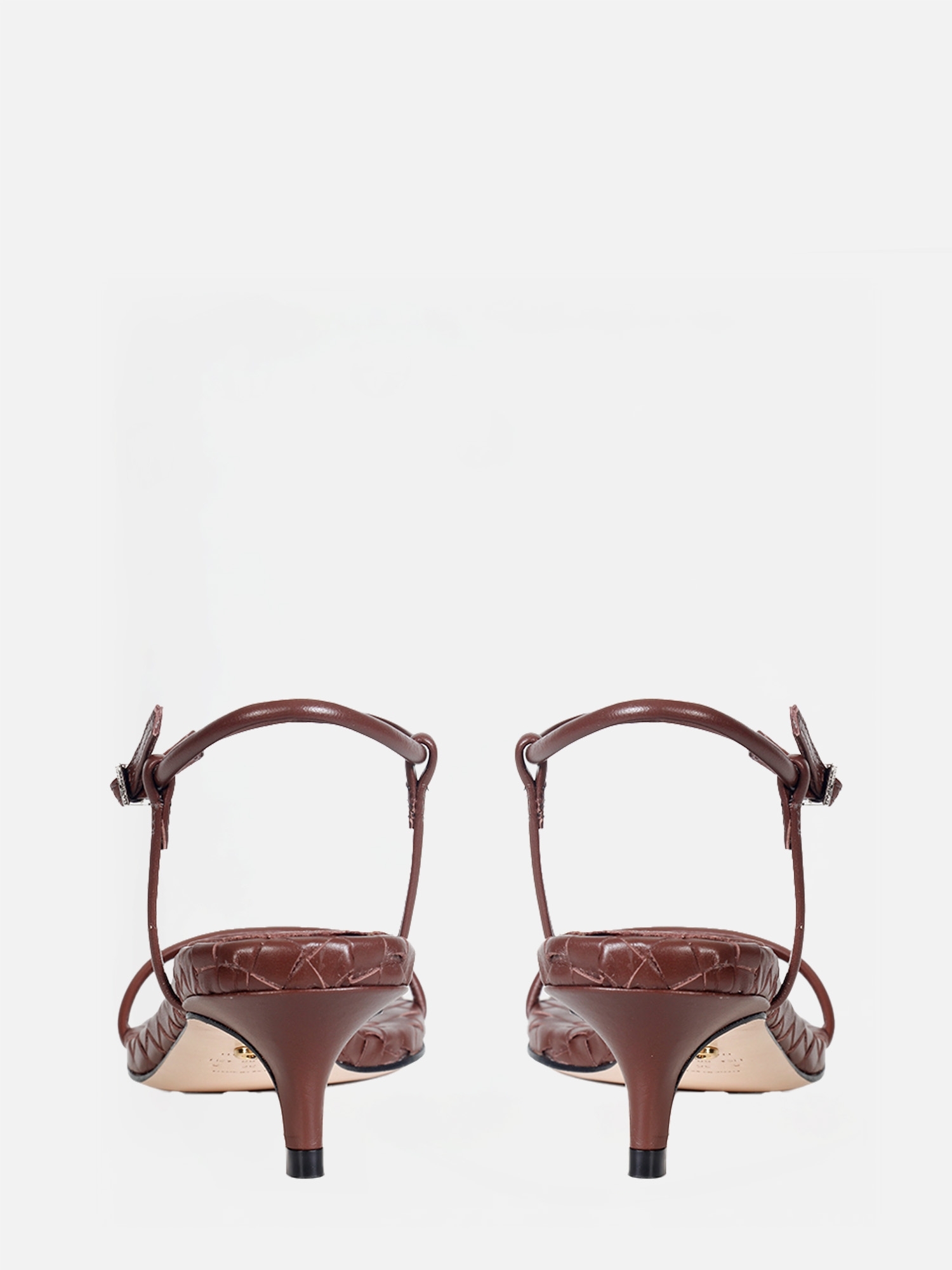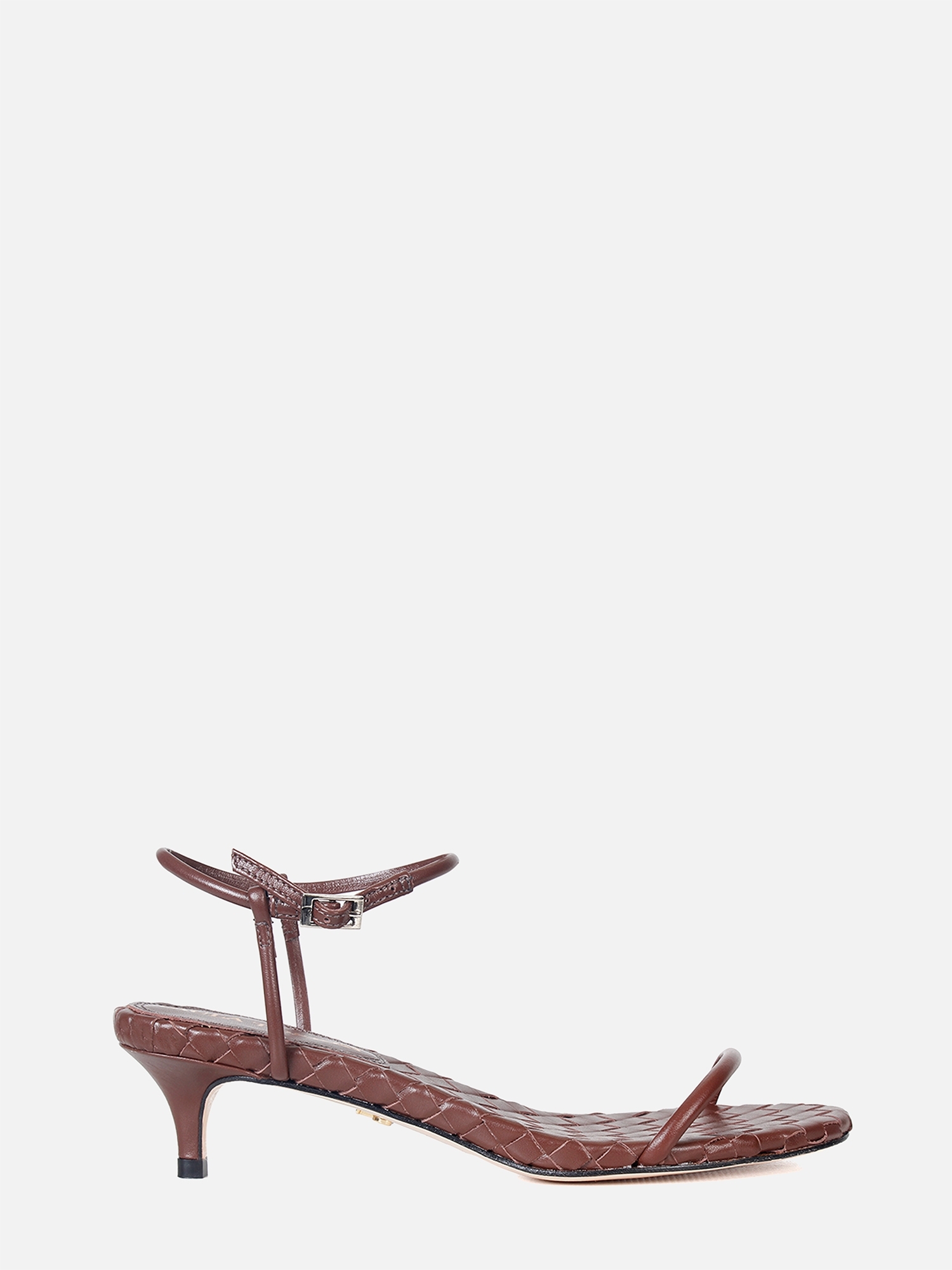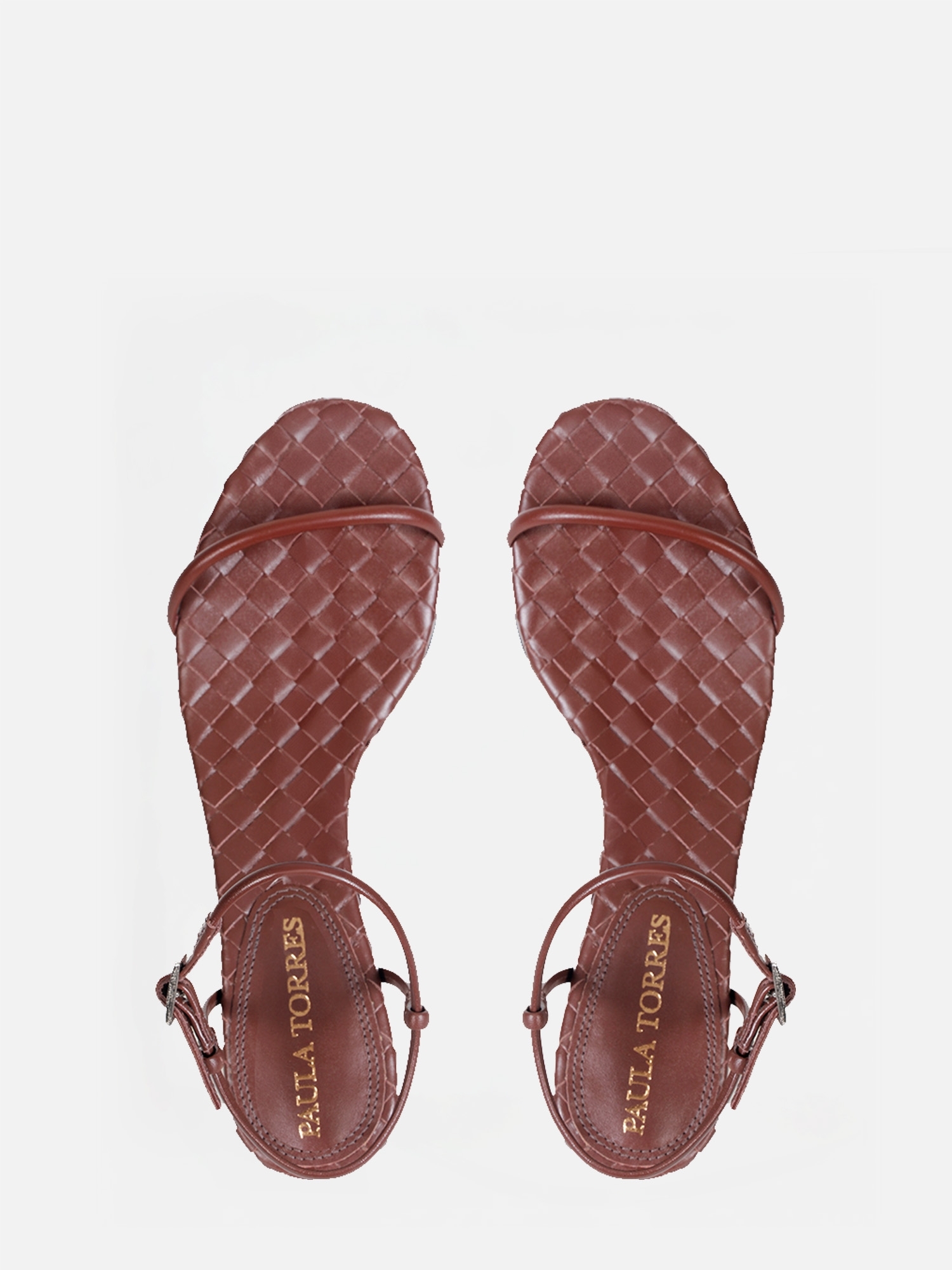A Sandália Gaya é produzida em couro. A peça possui tira fina na parte superior e tira no tornozelo com fechamento por fivela lateral. O destaque desse modelo é a palmilha revestida em couro, que apresentam um trançado manual, adicionando um toque artesanal e exclusivo ao calçado Salto fino e baixo e o solado também é feito em couro, completando a peça com qualidade e durabilidade.